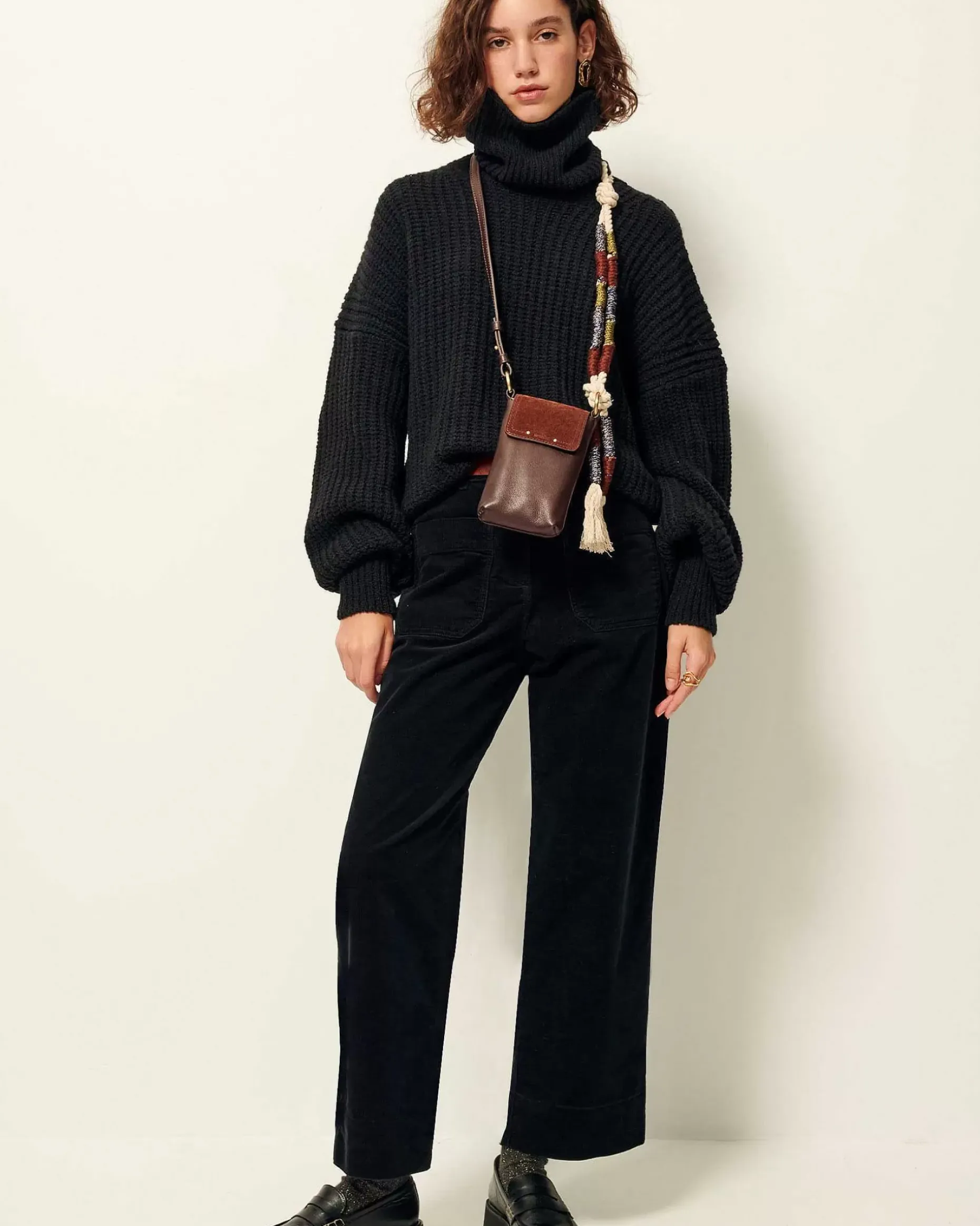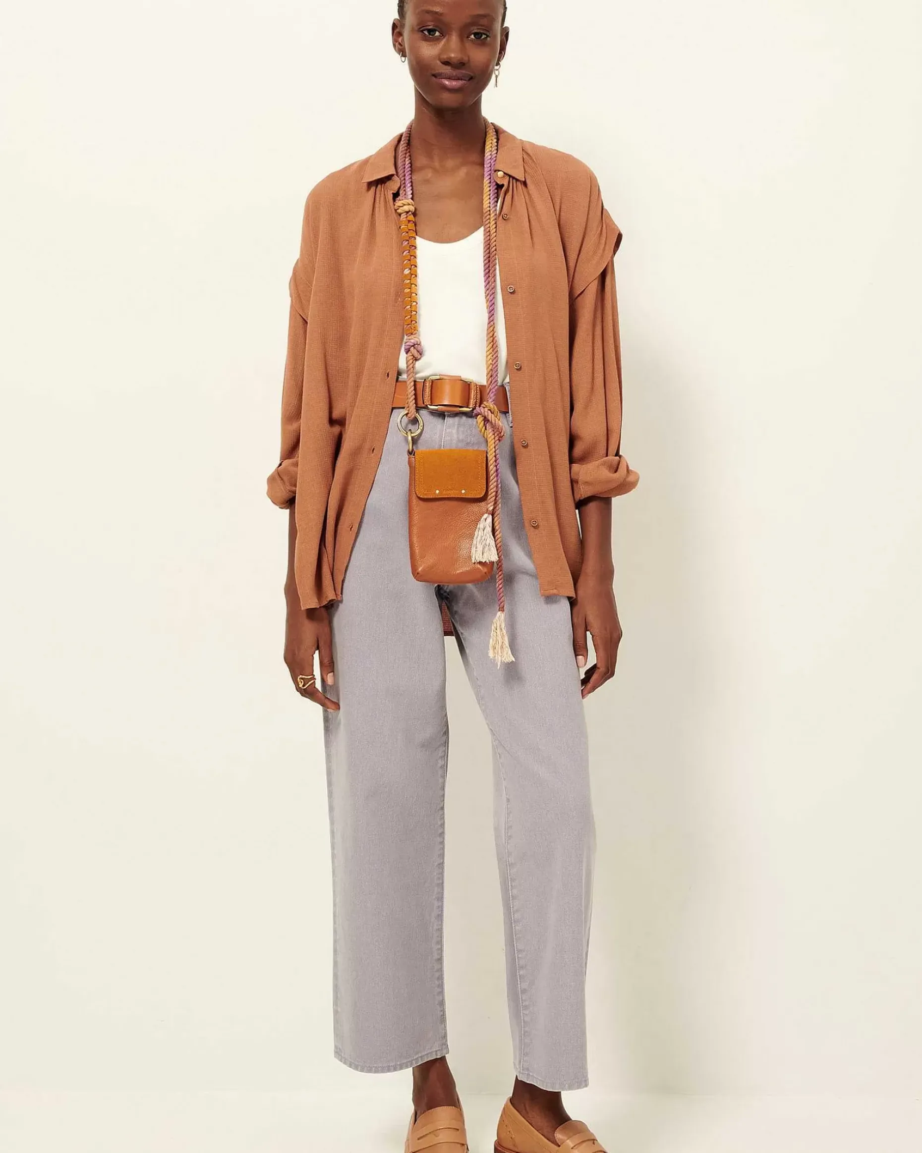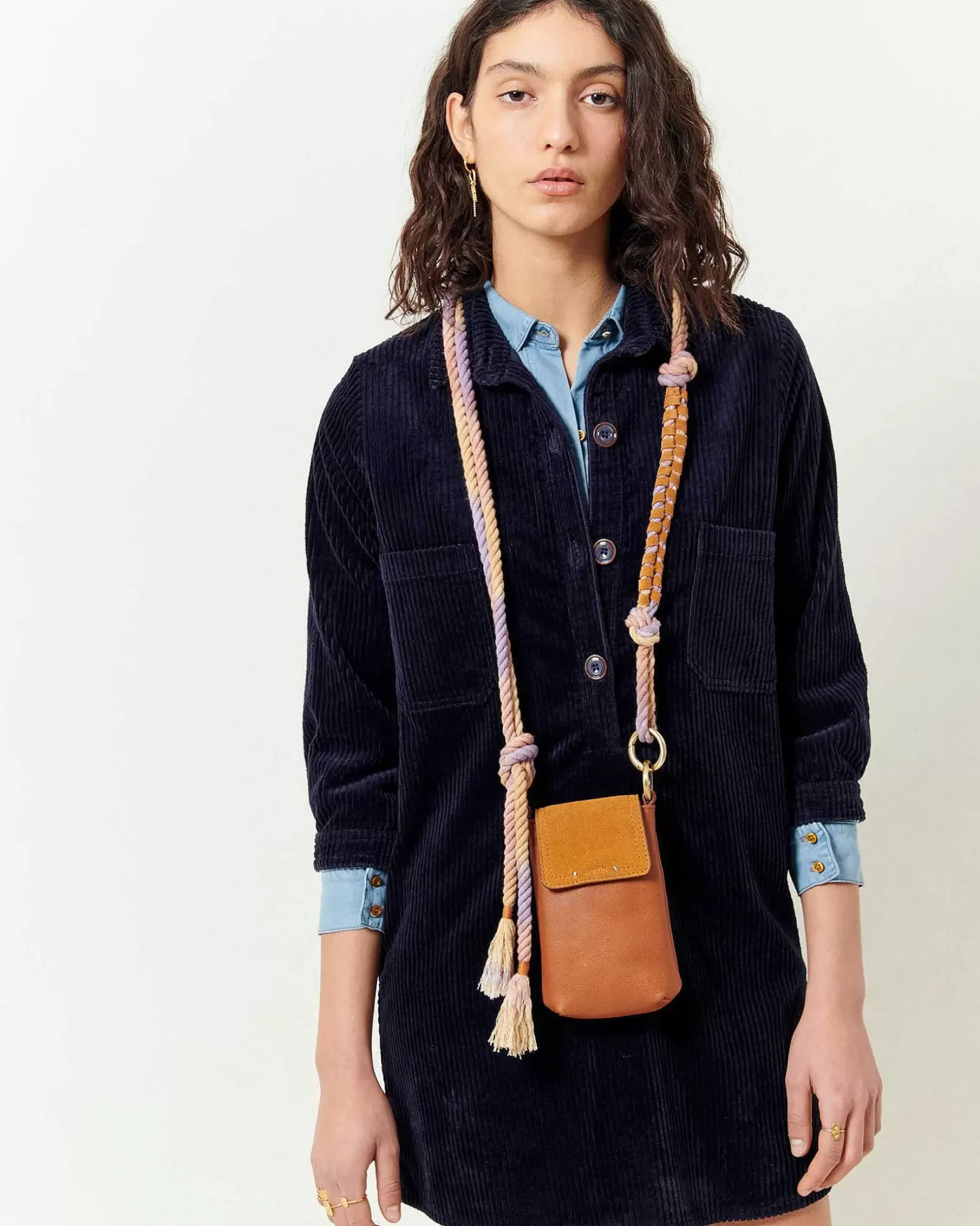 Handy-Tragetasche Aus Rindsleder Mit Klappe Aus Spaltleder, Geflochtener Trageriemen.