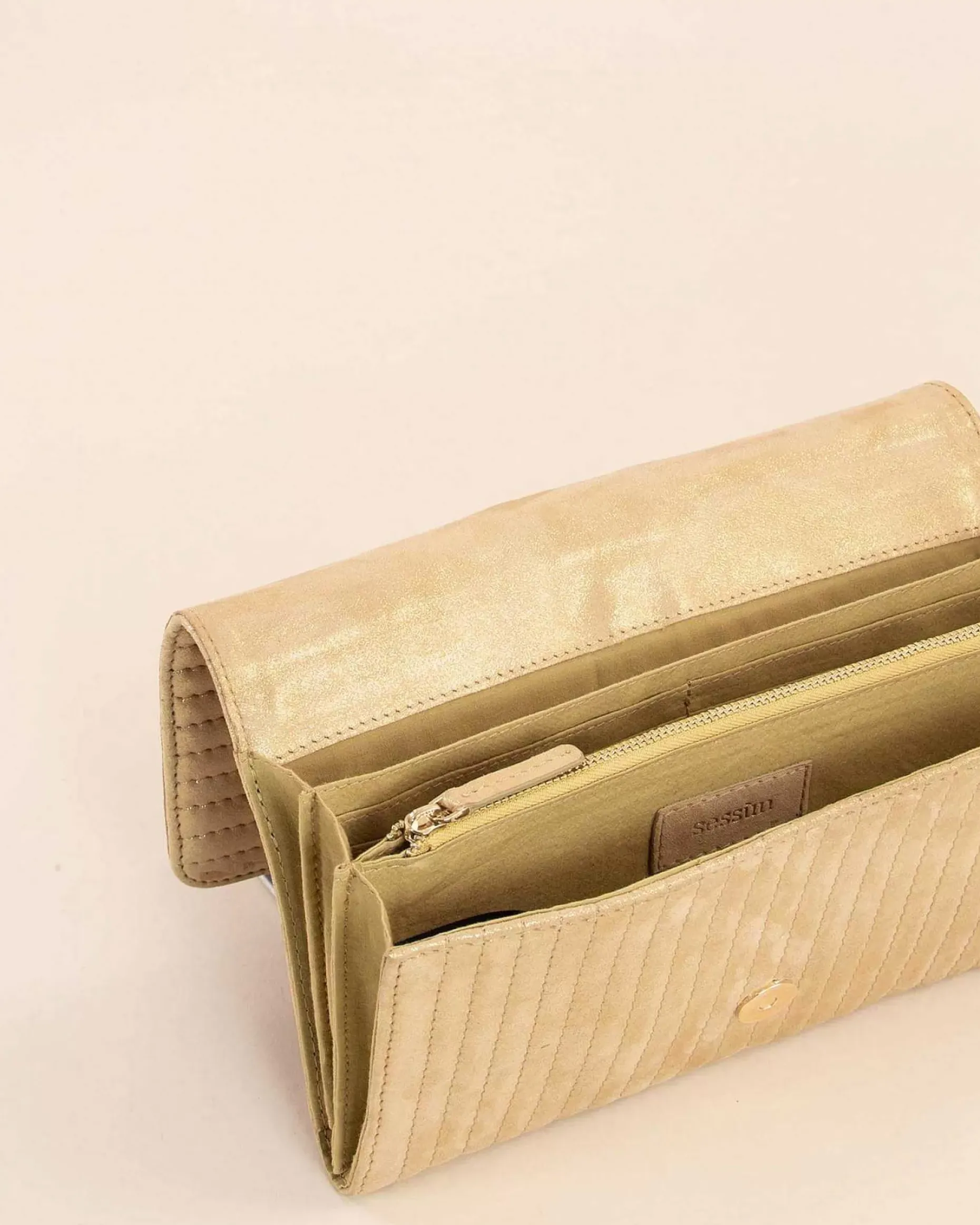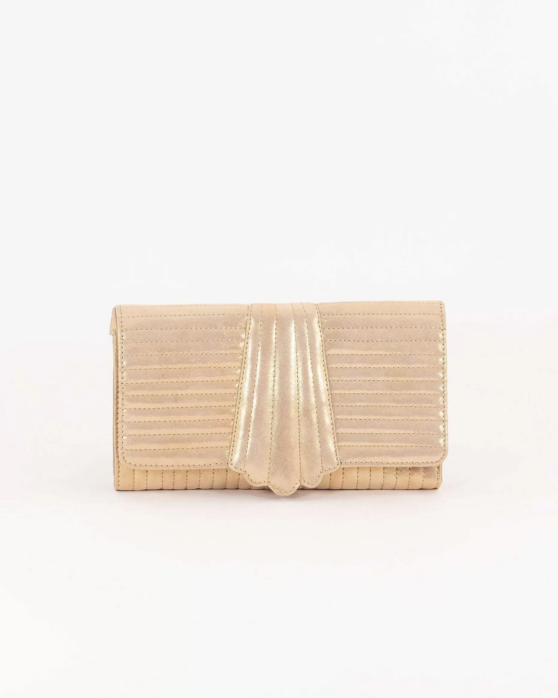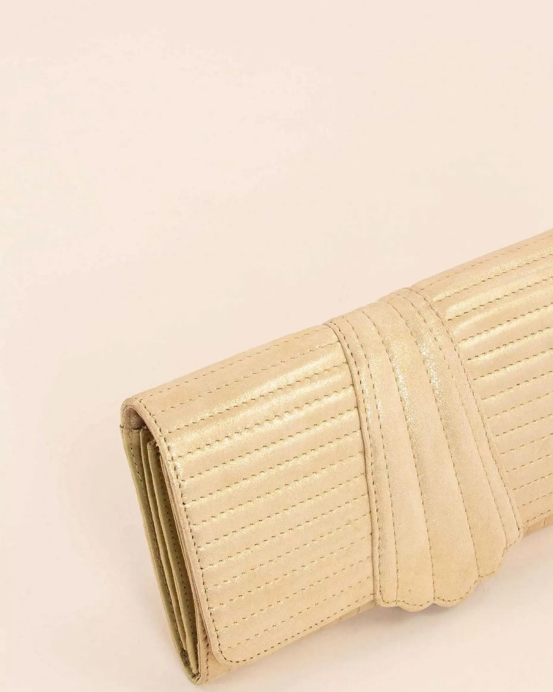 Gesteppte Clutch, Metallisiertes Spaltleder.