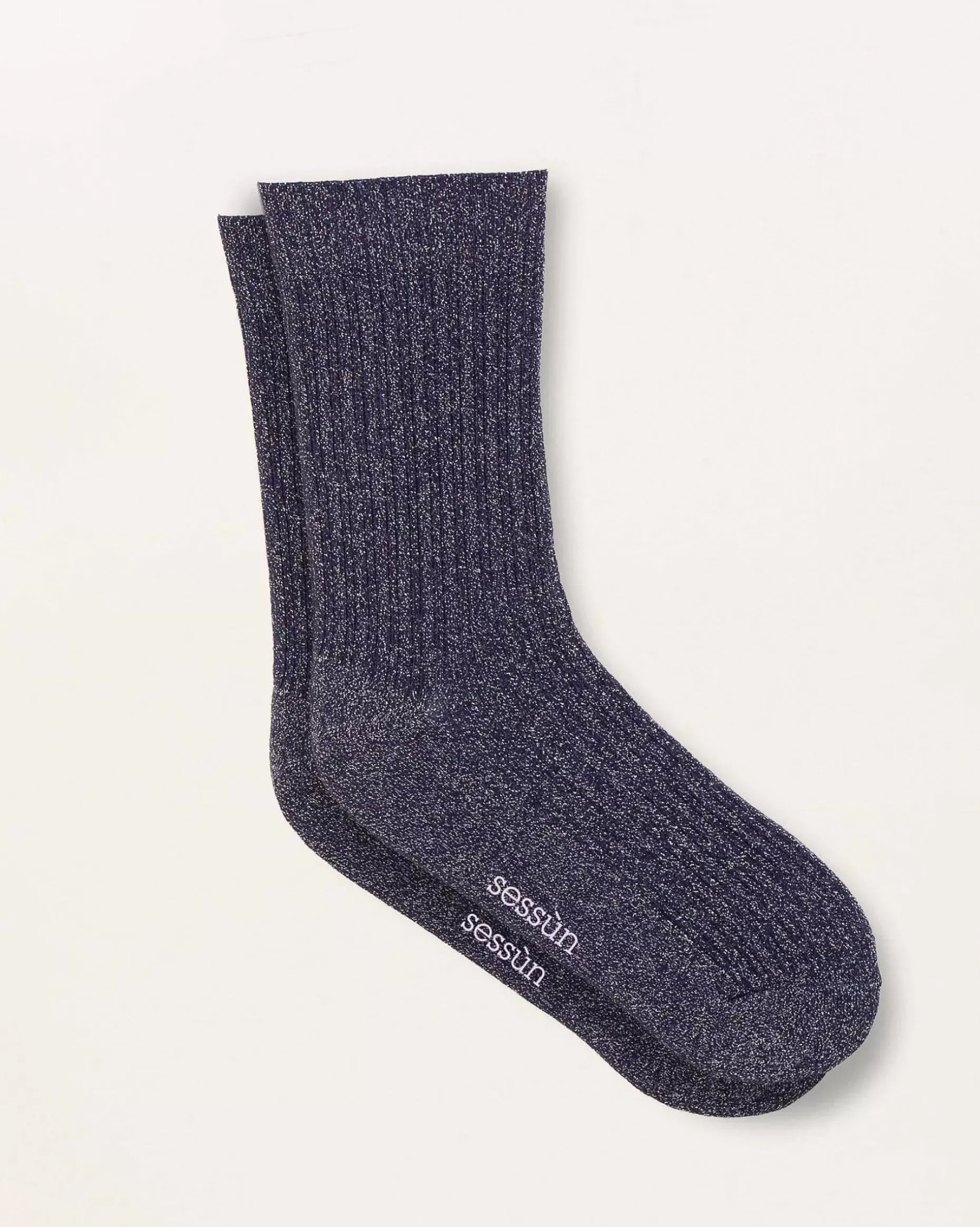 Halblange Rippstricksocken Aus Metallic-Garnen.