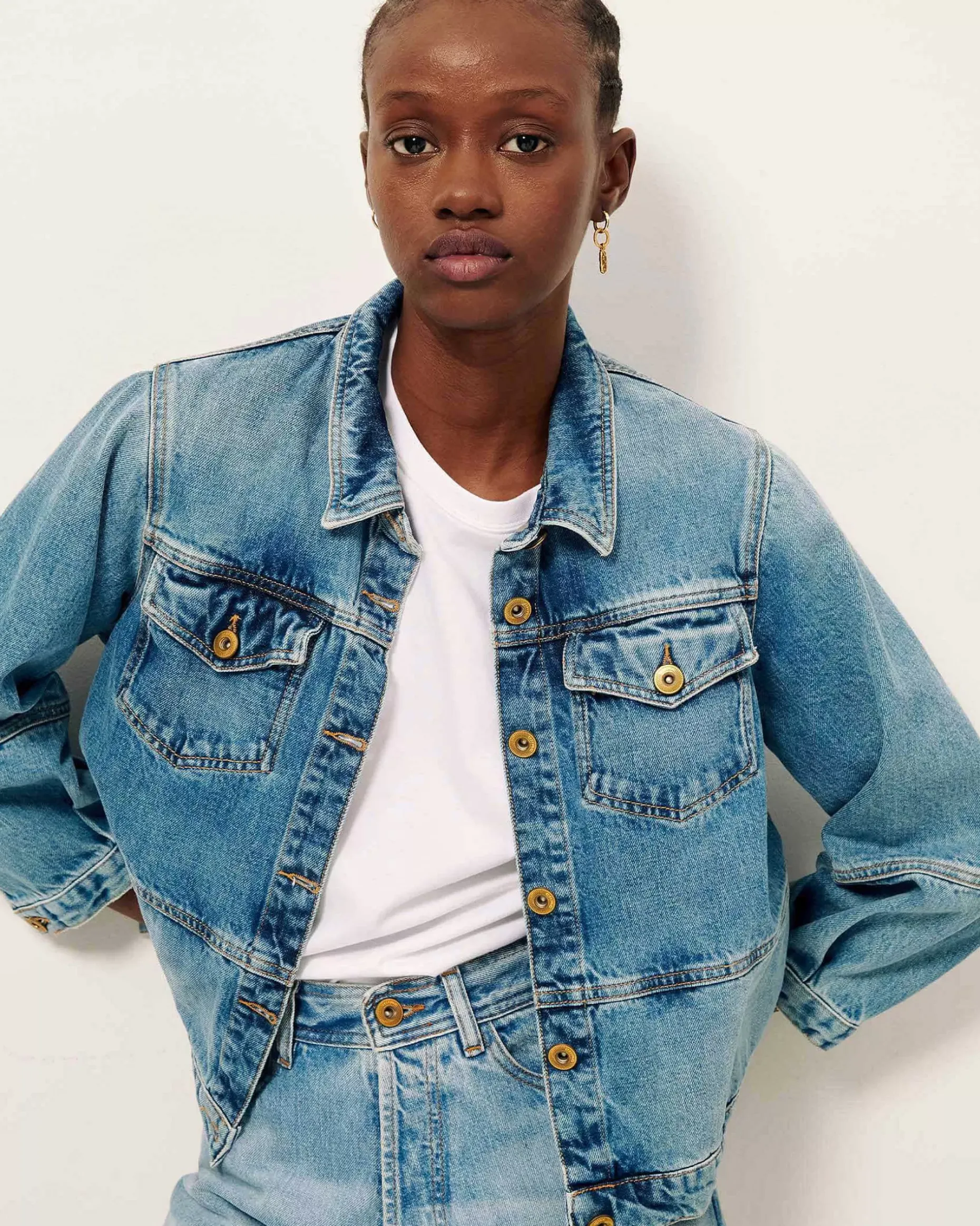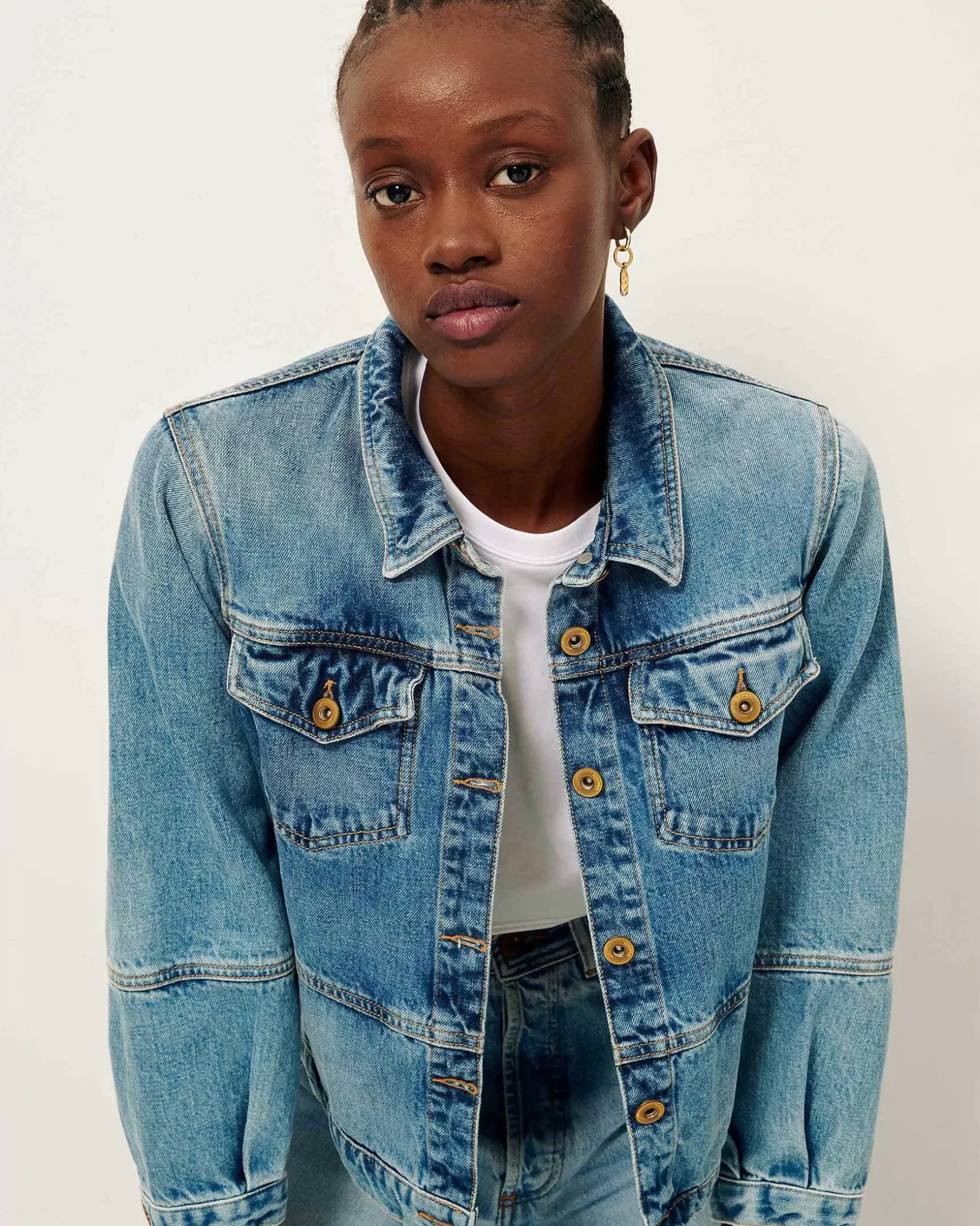 Jacke Mit 3/4-Ärmeln Aus Stonewashed Denim.