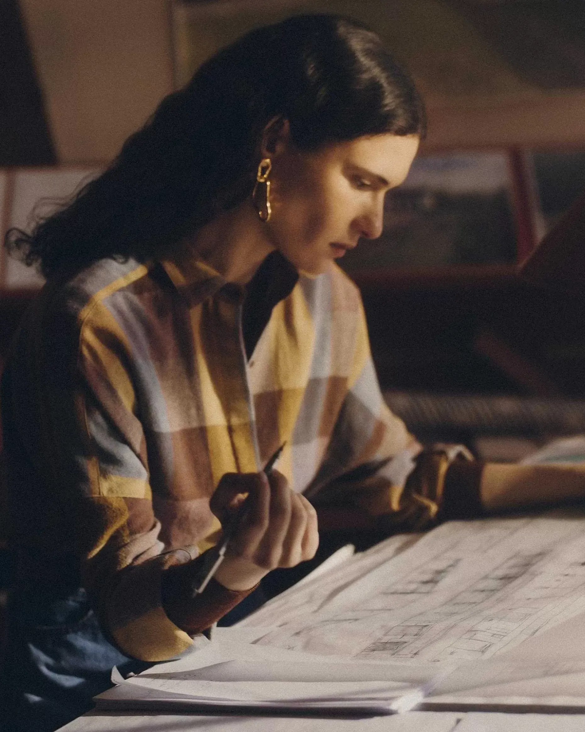 Weit Geschnittenes Hemd Mit Tiefen Armausschnitten Aus In Italien Gewebtem Etamin Mit Schottenmuster, Exklusiv Für Sessùn Angefertigt.