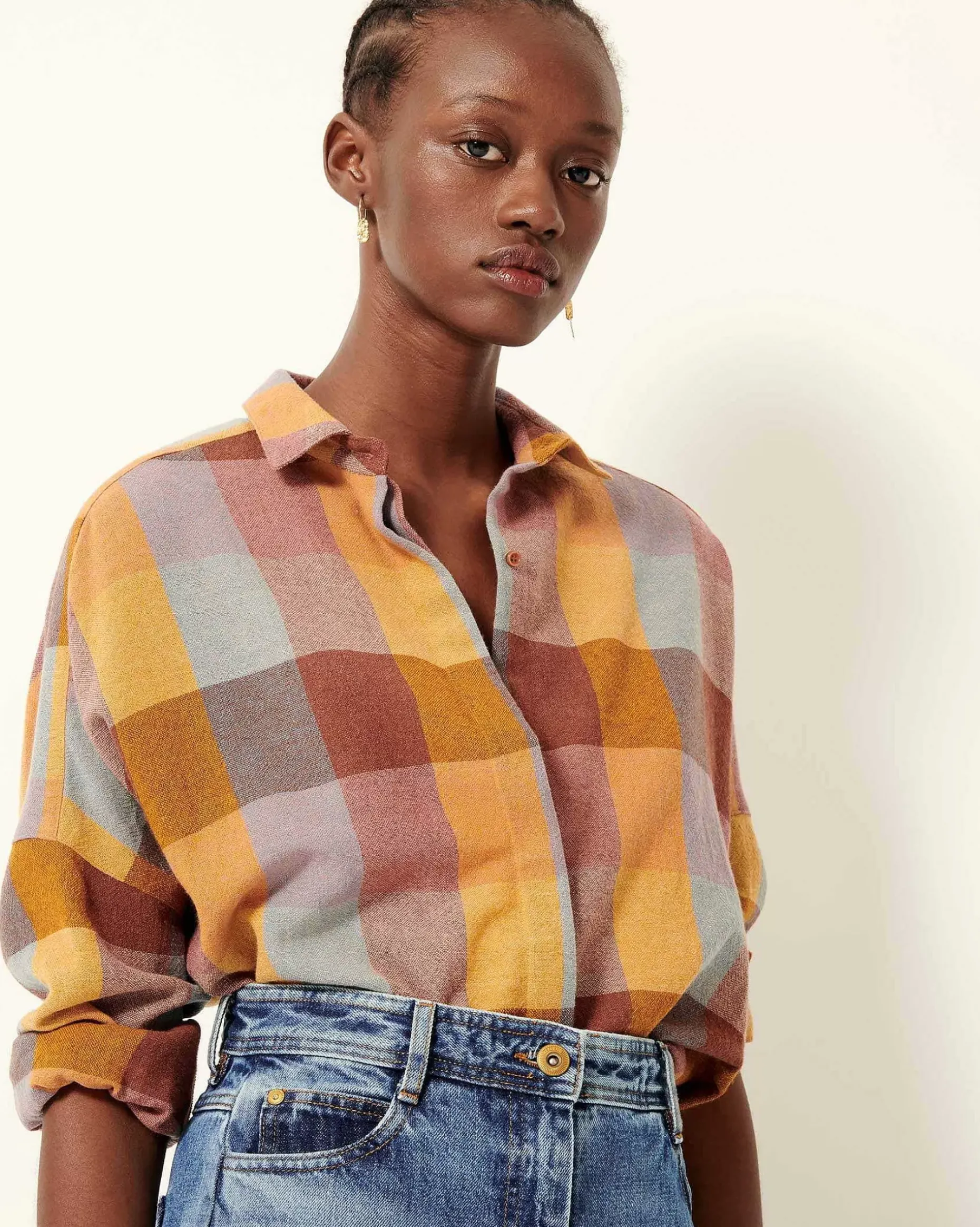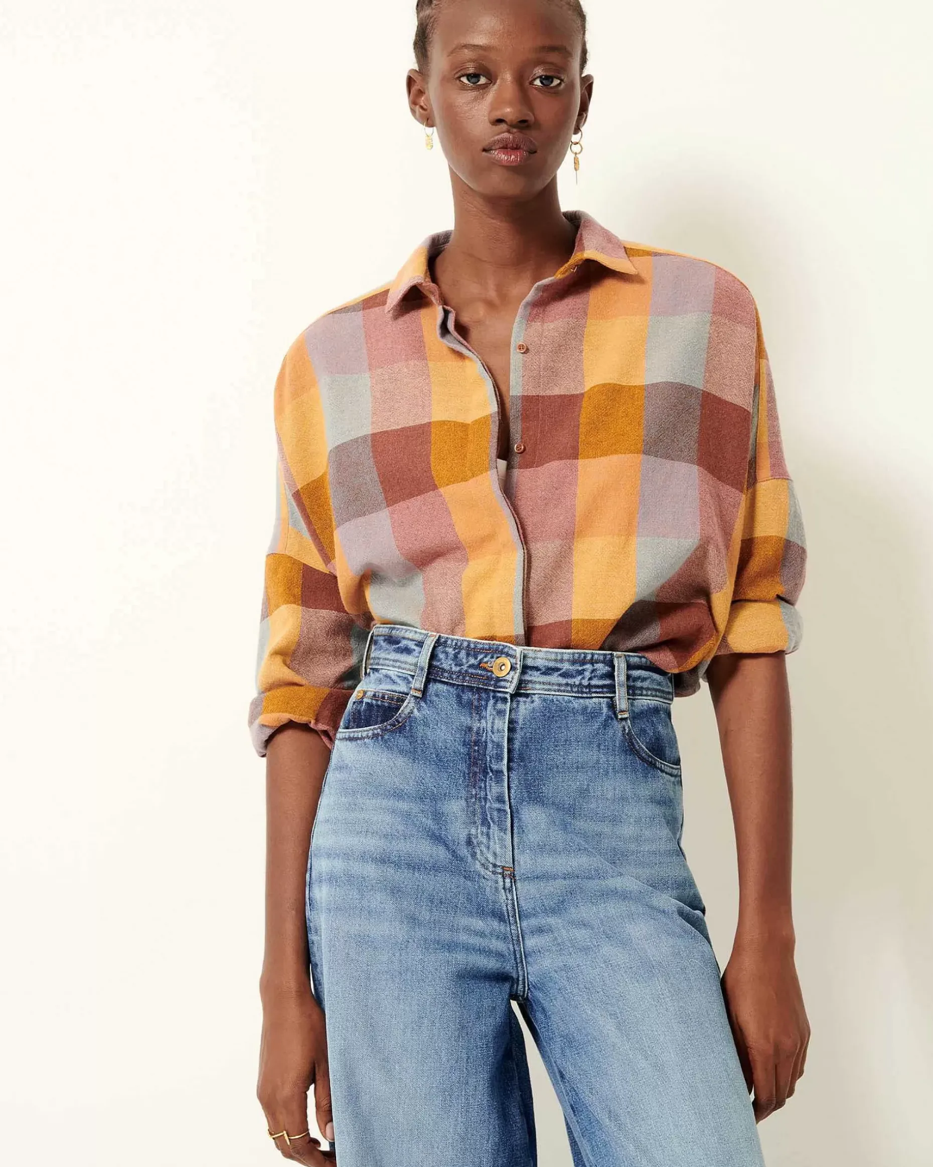 Weit Geschnittenes Hemd Mit Tiefen Armausschnitten Aus Etamin Mit Schottenmuster, Italienische Webarbeit, Exklusiv Für Sessùn.