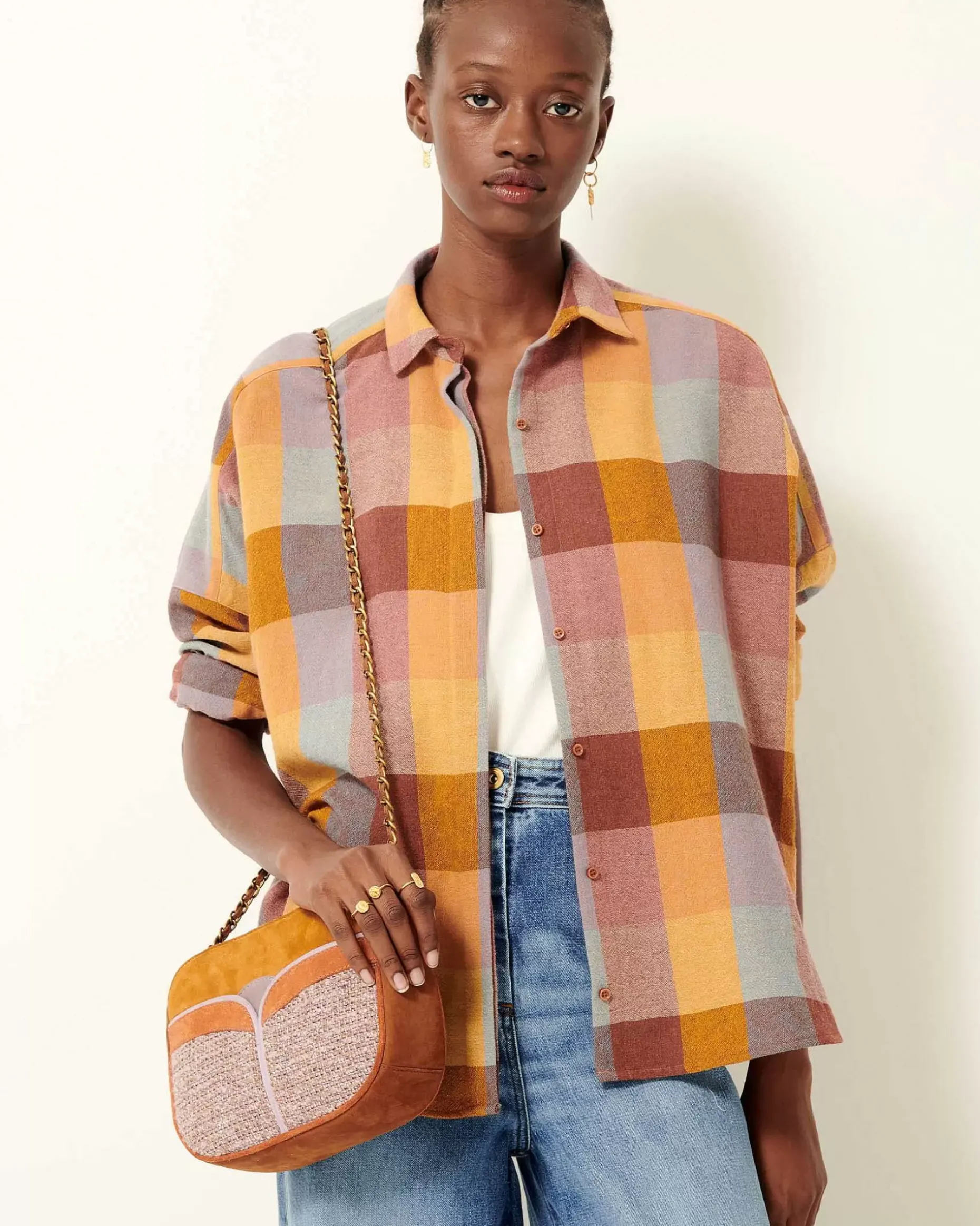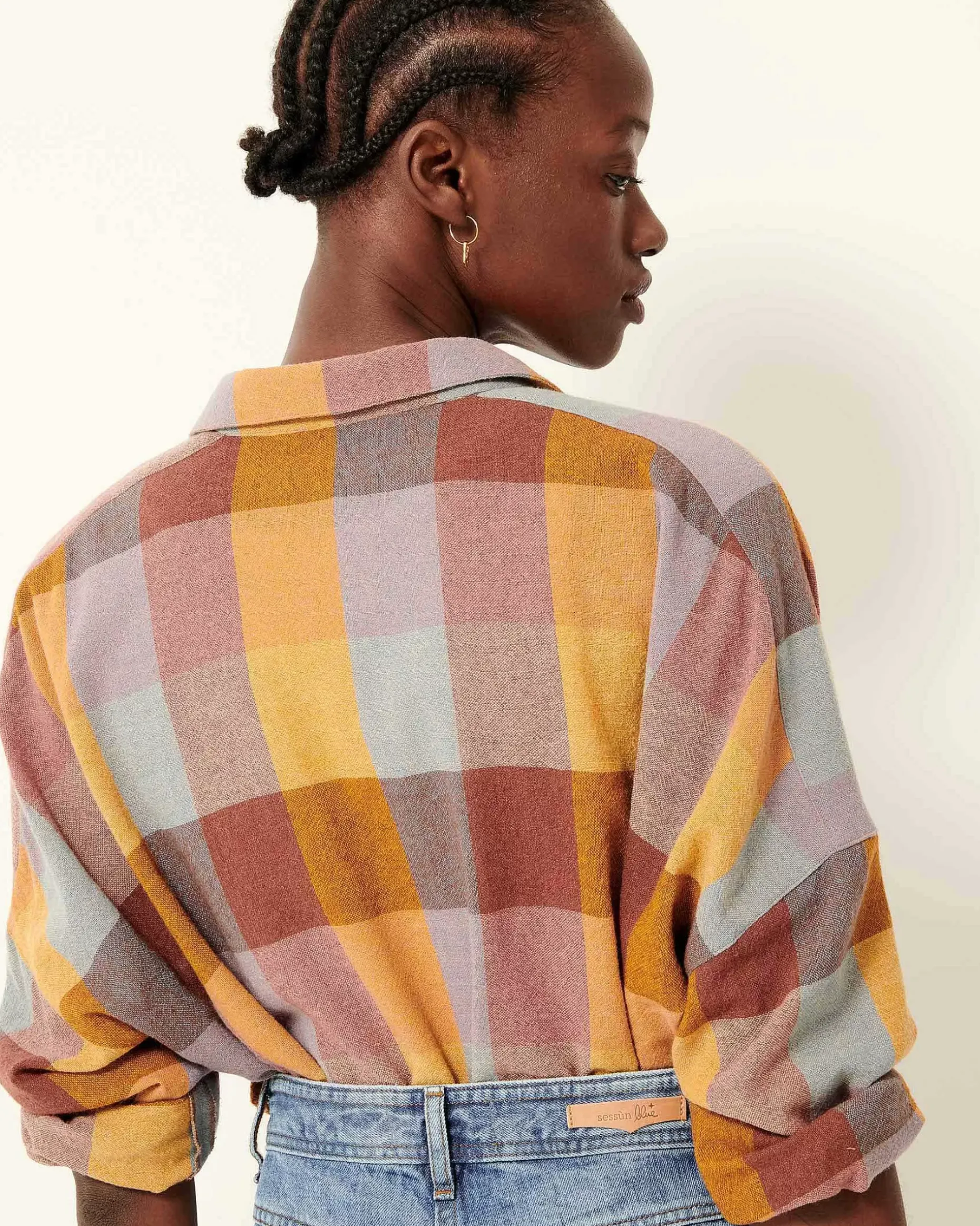 Weit Geschnittenes Hemd Mit Tiefen Armausschnitten Aus Etamin Mit Schottenmuster, Italienische Webarbeit, Exklusiv Für Sessùn.