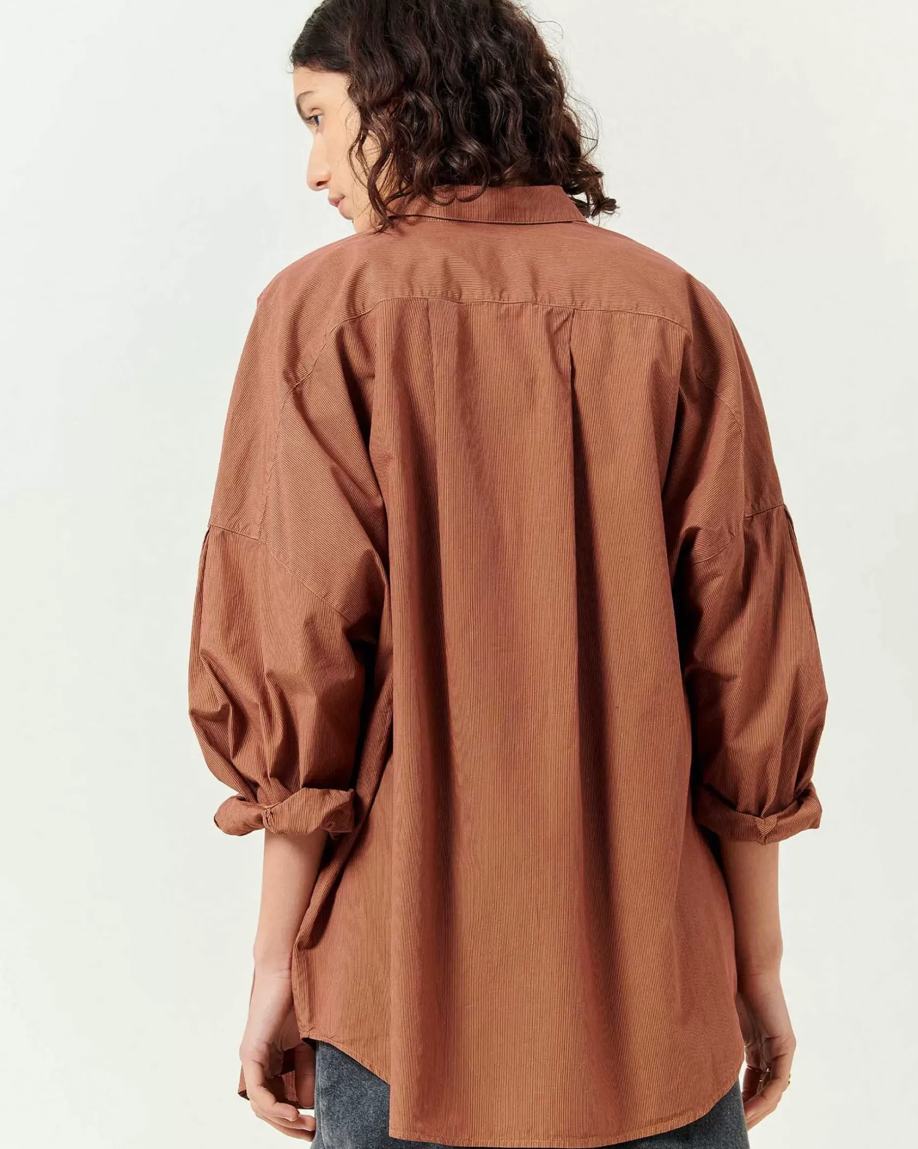 Hemd Im Liquette-Stil Mit Tiefen Armlöchern Aus Kompaktem, Gestreiftem Popeline Aus Tauchgefärbten Garnen, Italienische Webarbeit. Exklusiv Für Sessùn Angefertigtes Gewebe.