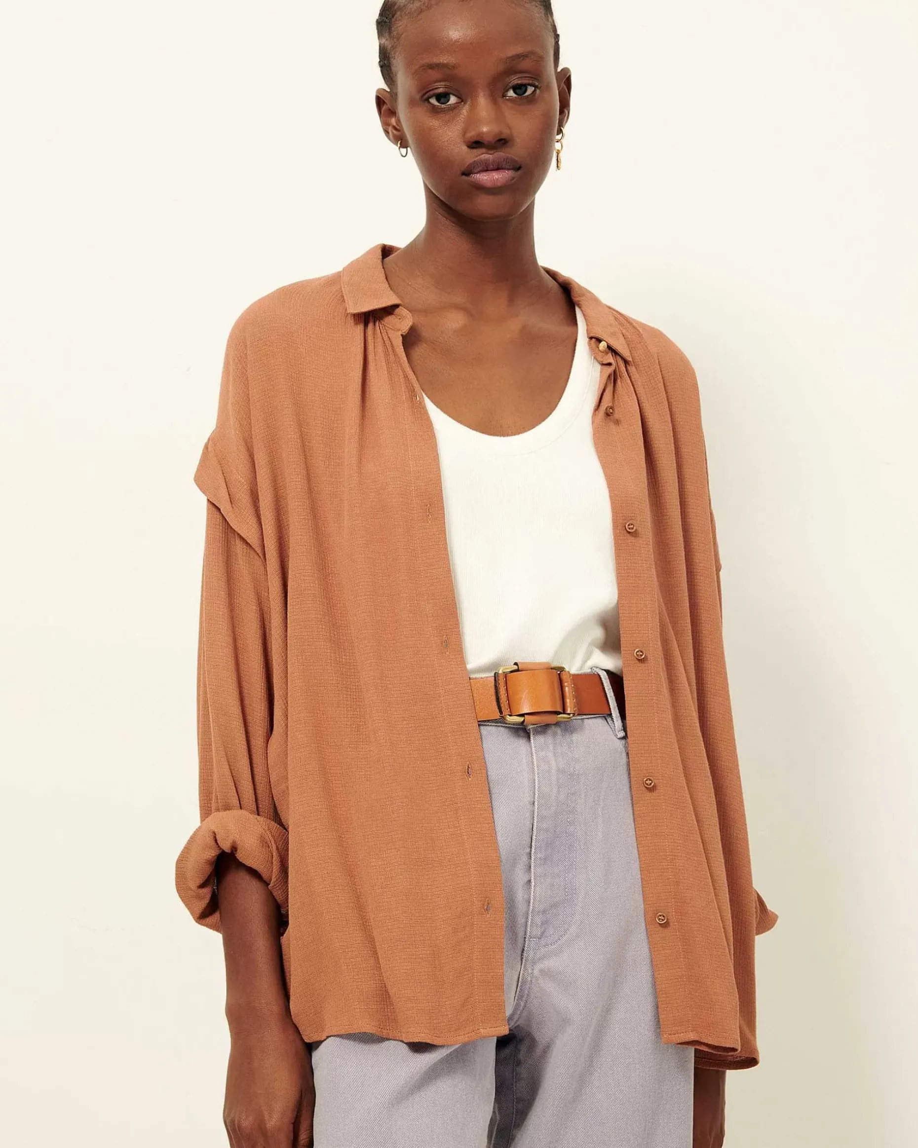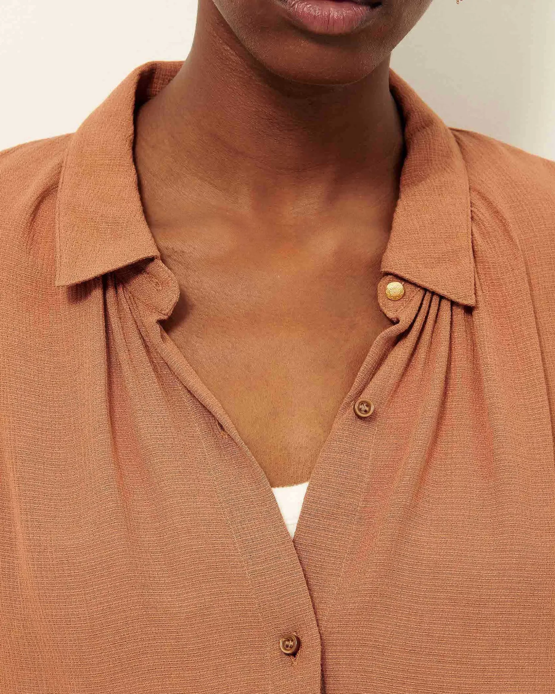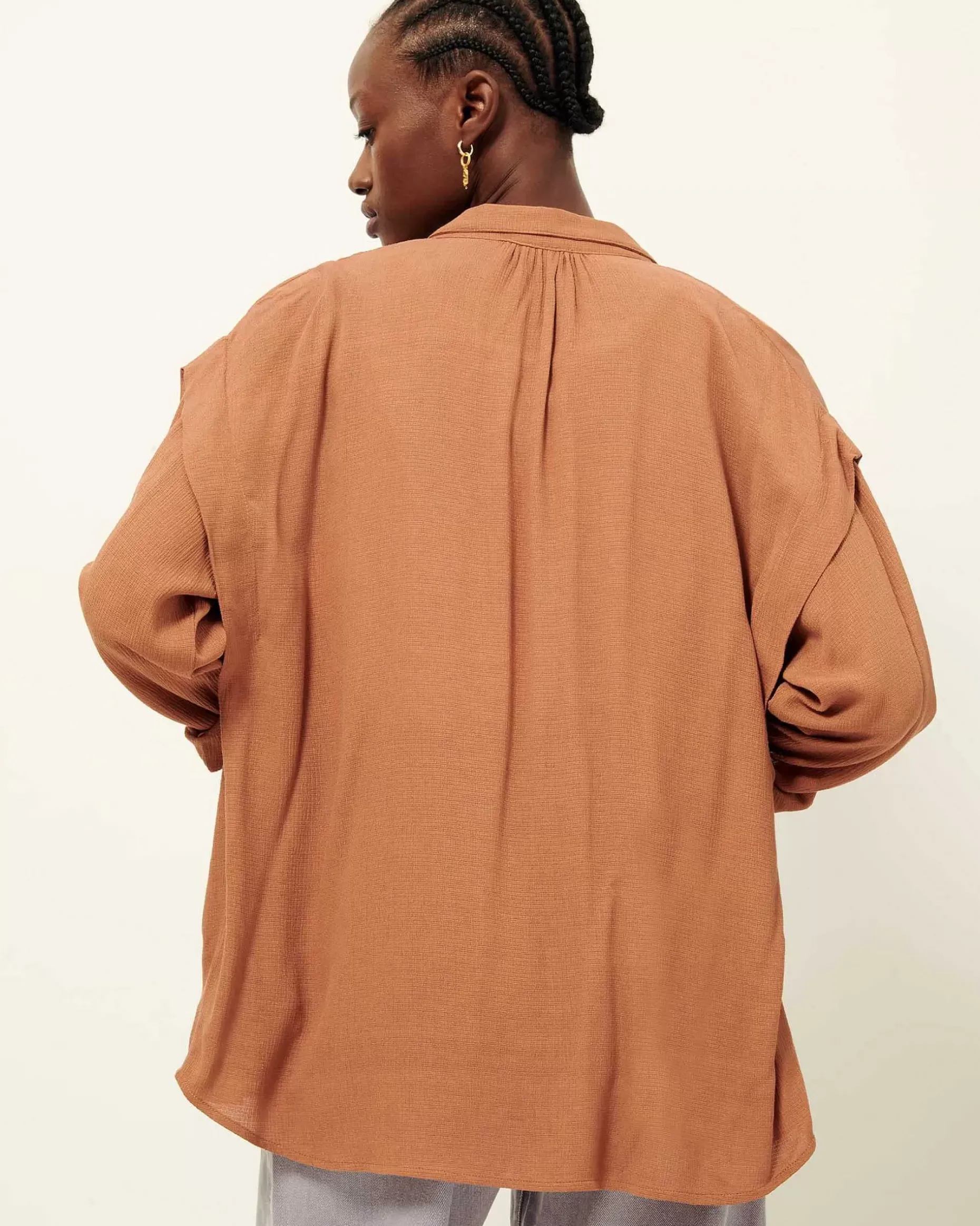 Weites Hemd Mit Flachfalten An Den Seiten Aus Gekrepptem Viskose-Dobby.