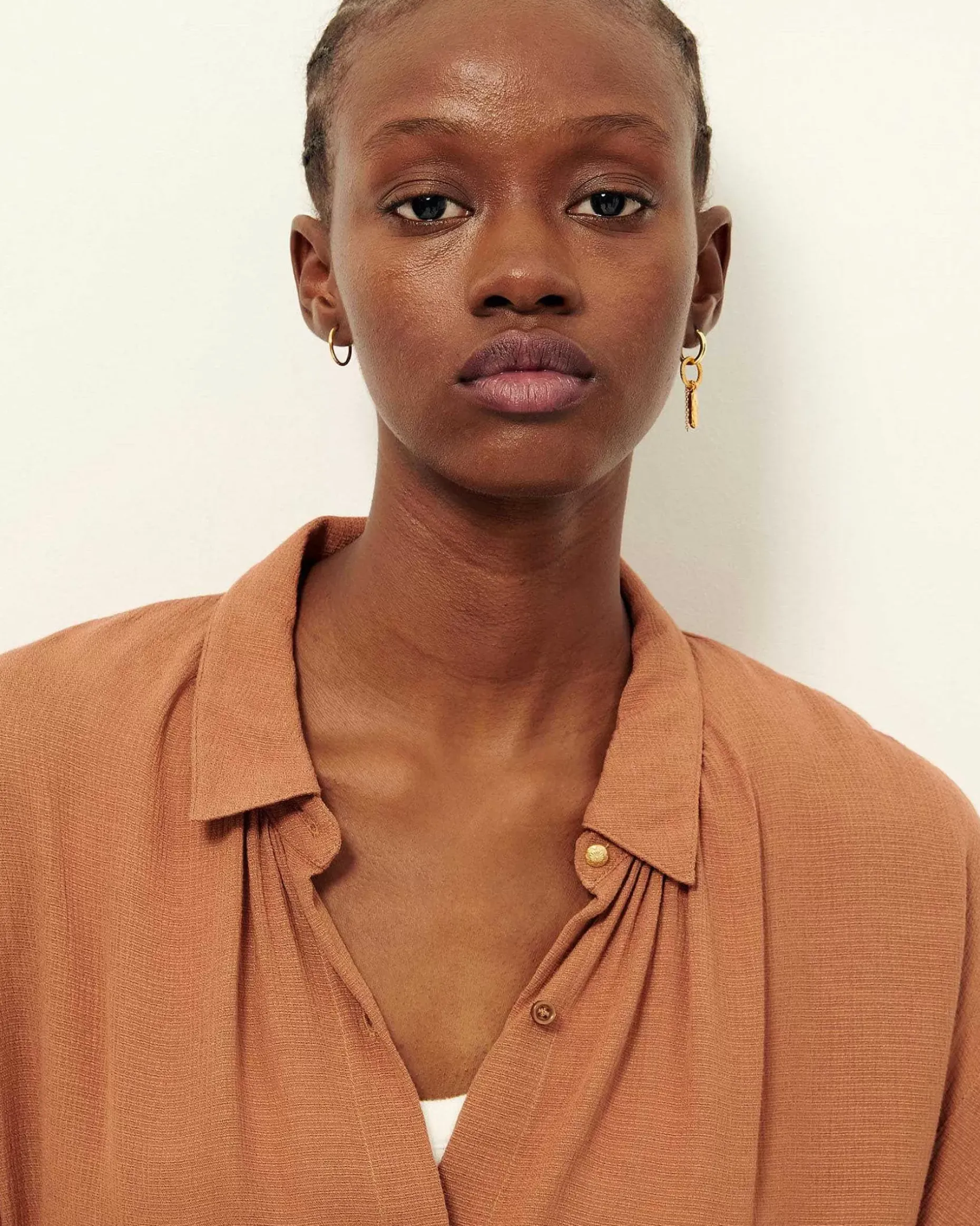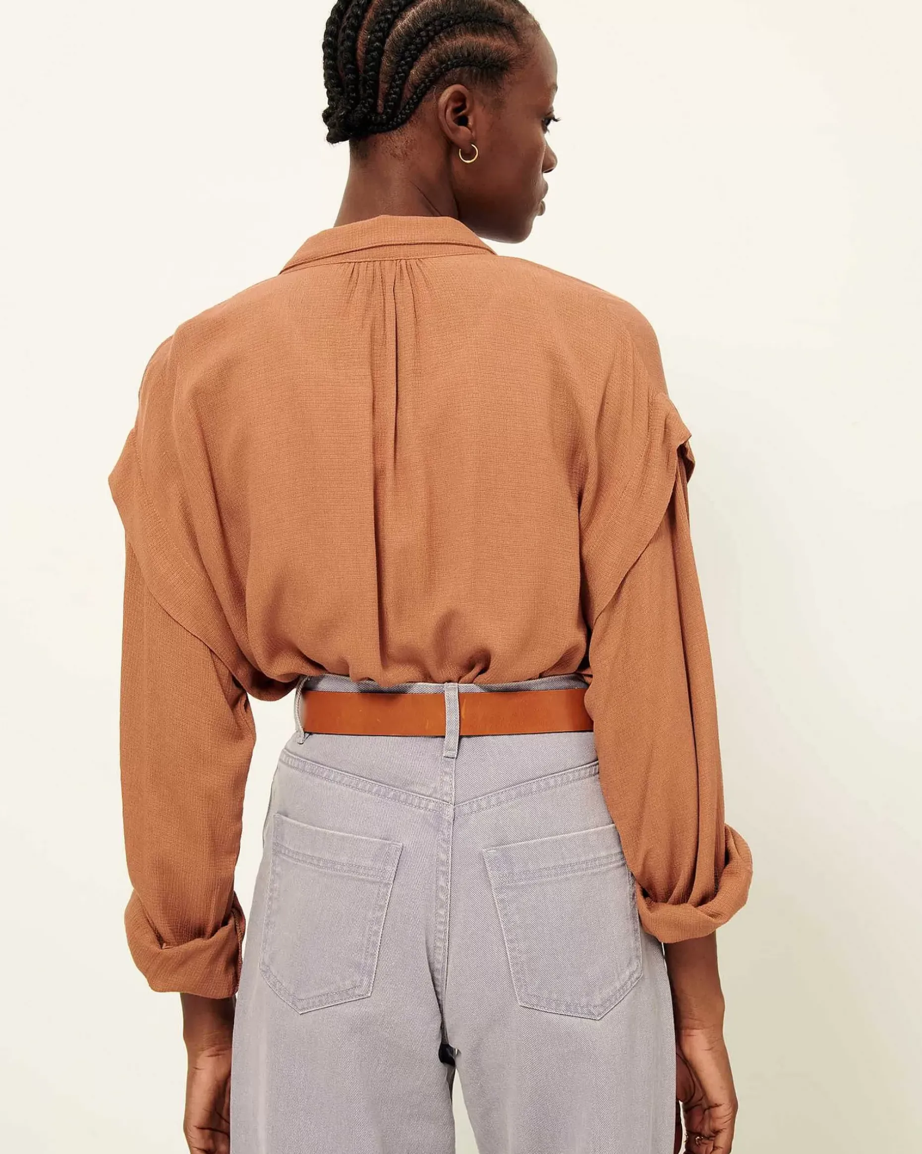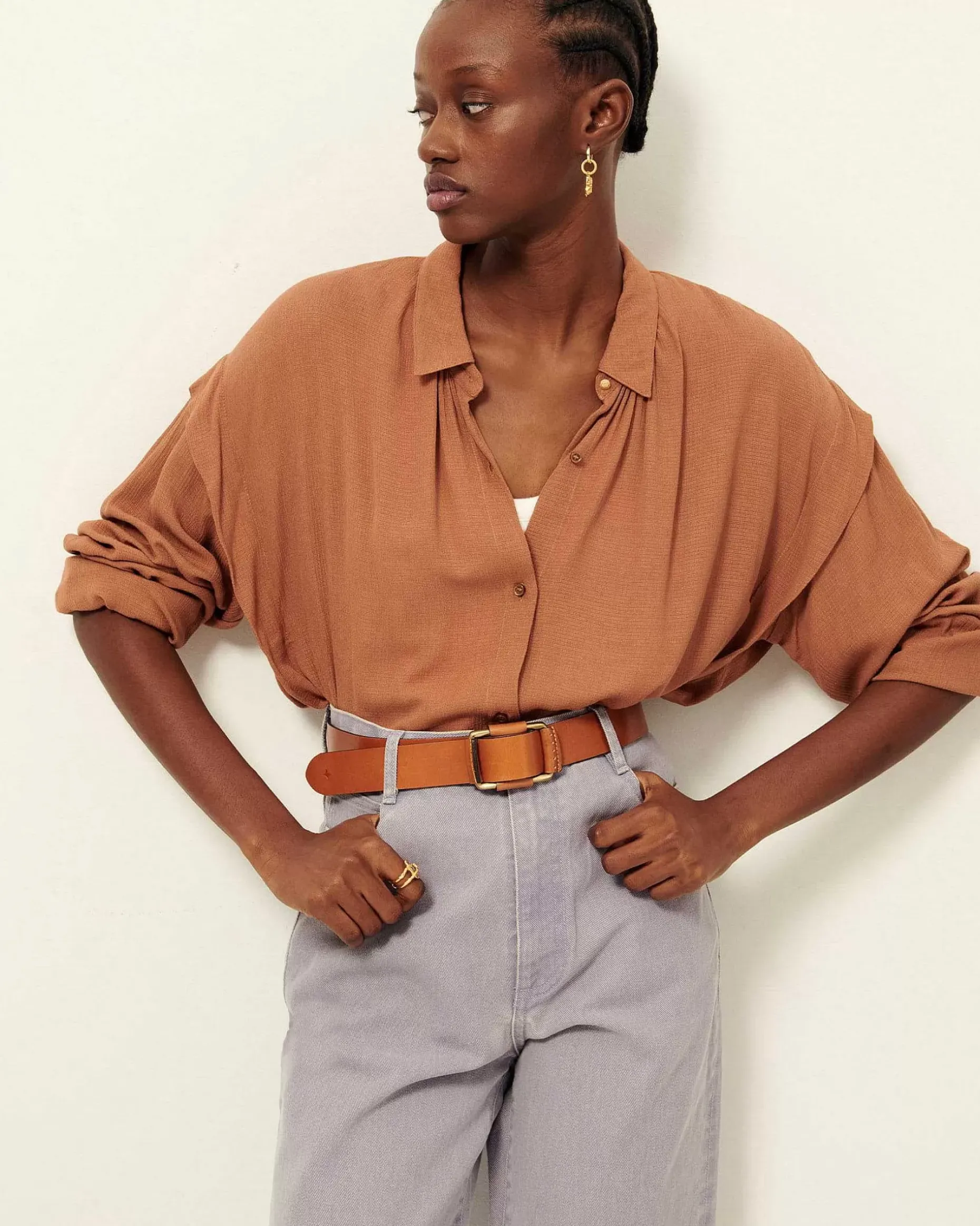 Weites Hemd Mit Flachfalten An Den Seiten Aus Gekrepptem Viskose-Dobby.
