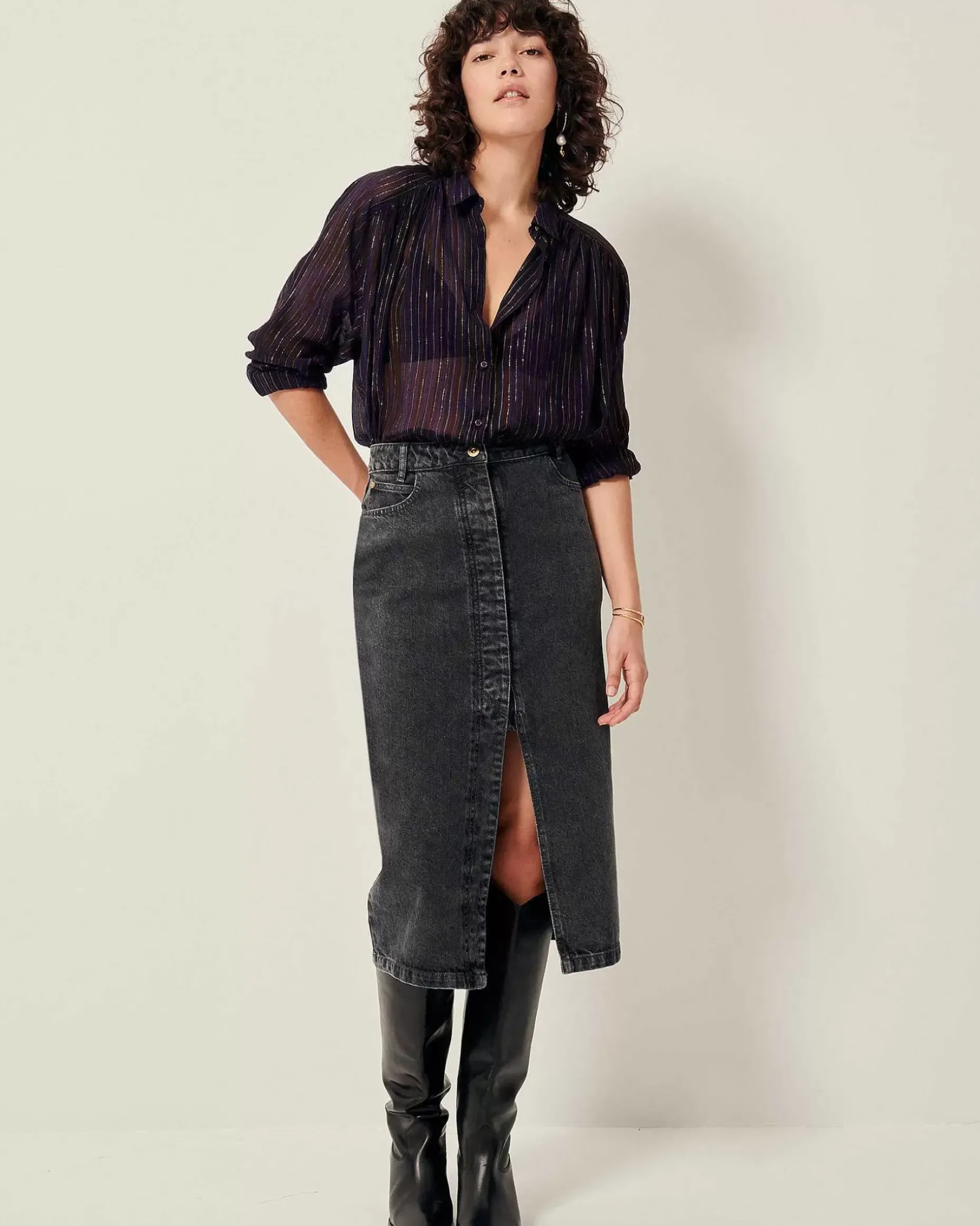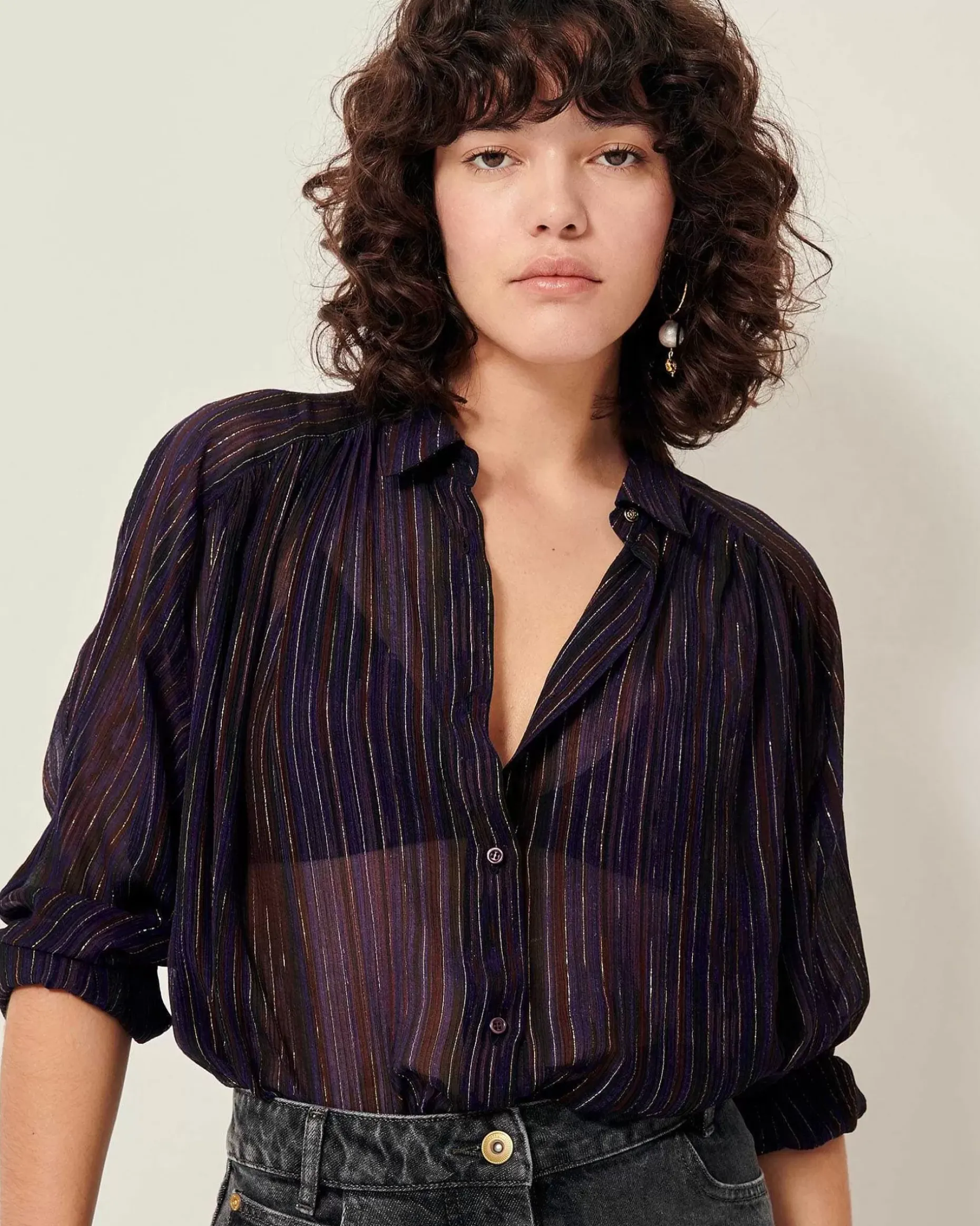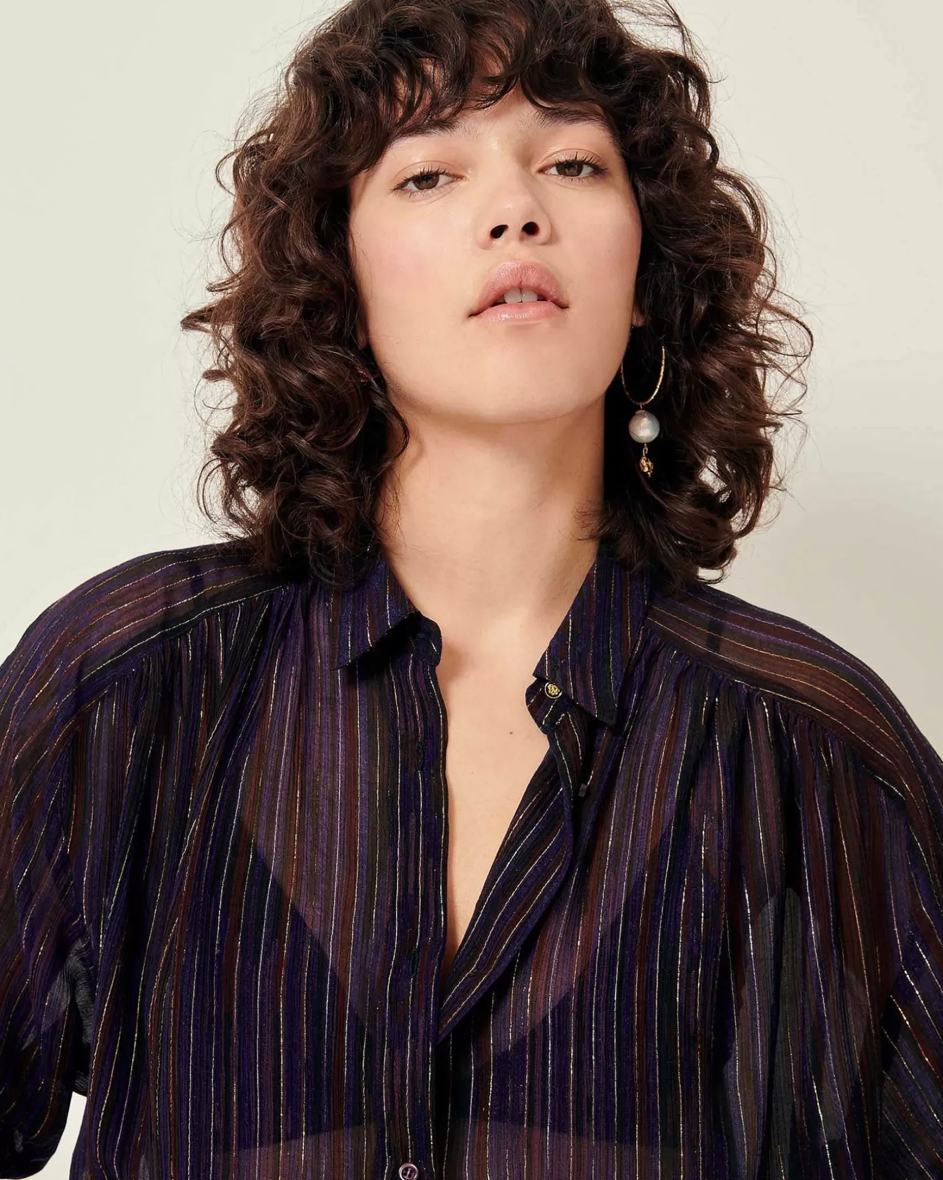 Gerafftes, Weit Geschnittenes Hemd Aus Zweifarbig Gestreiftem Baumwollgewebe, Italienische Webarbeit, Exklusiv Für Sessùn.