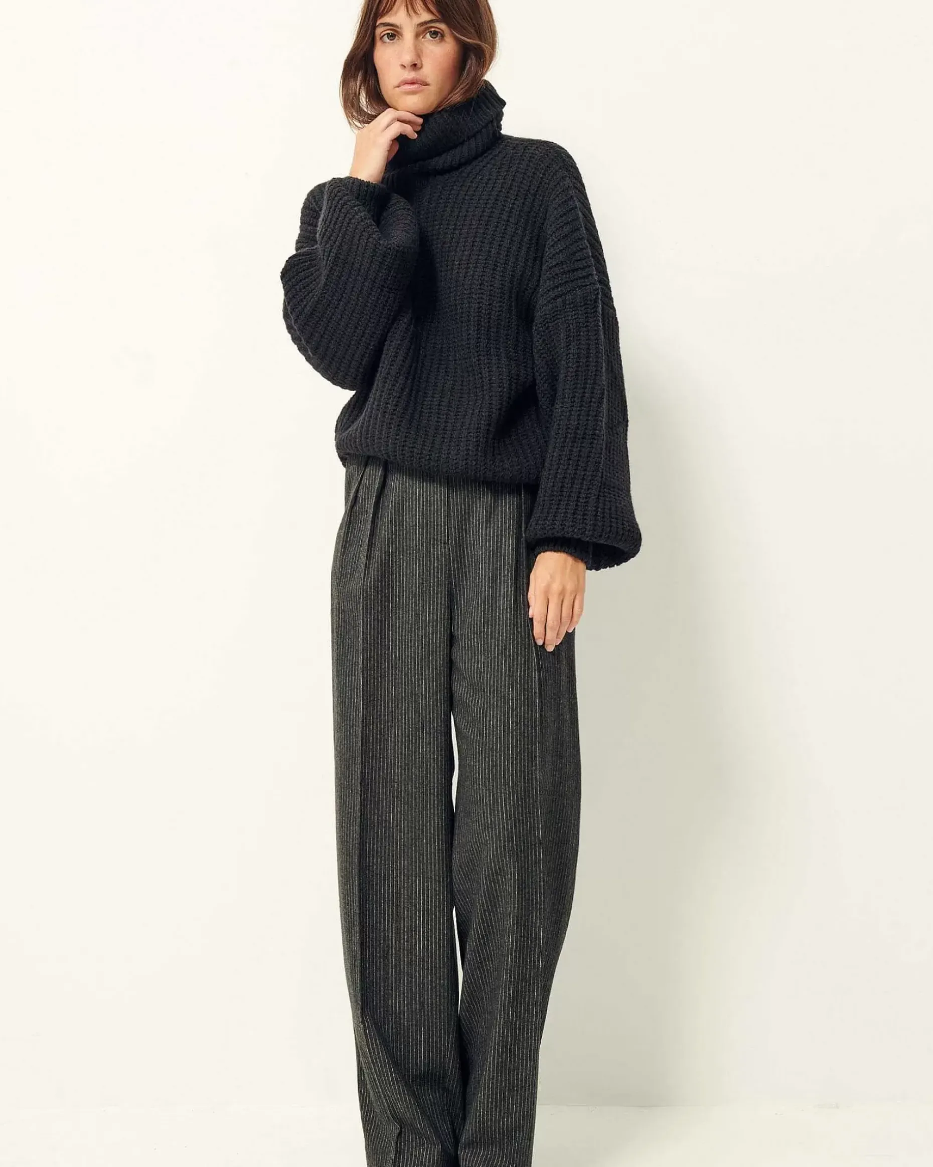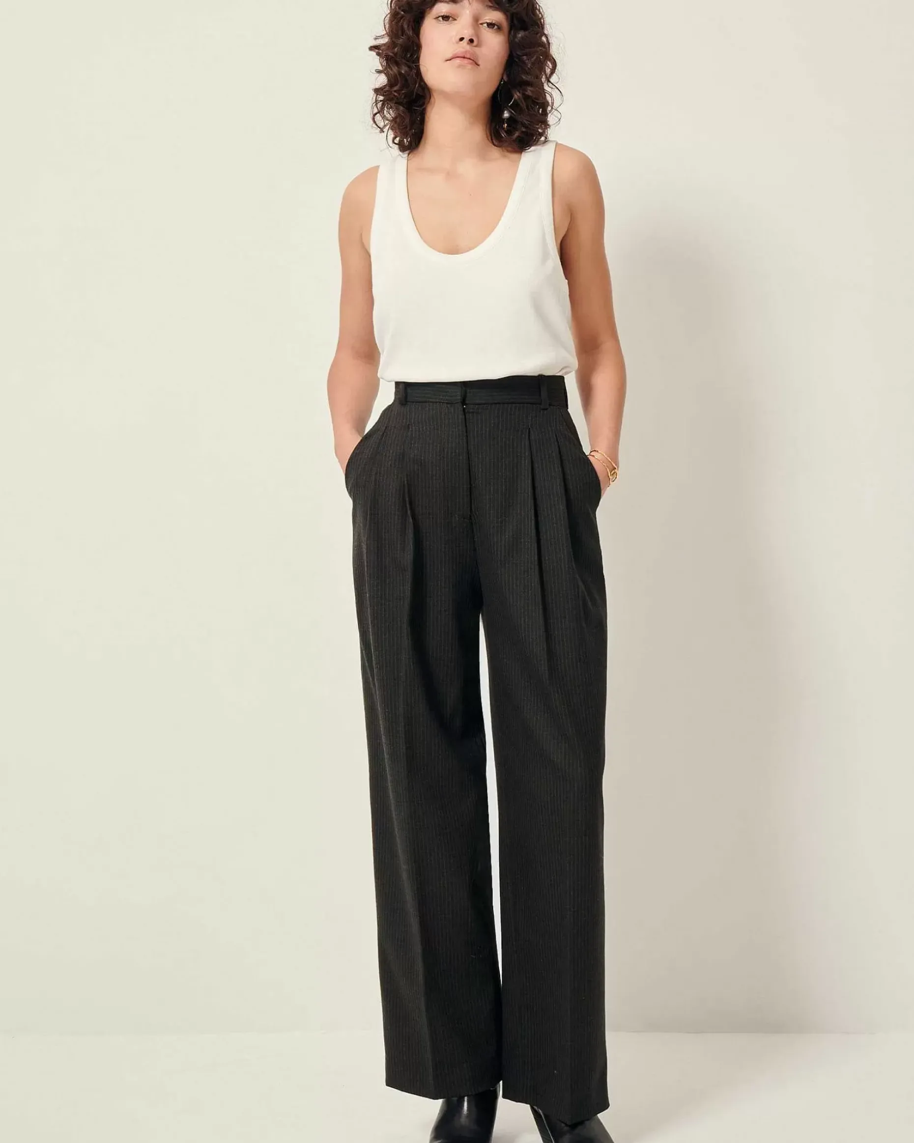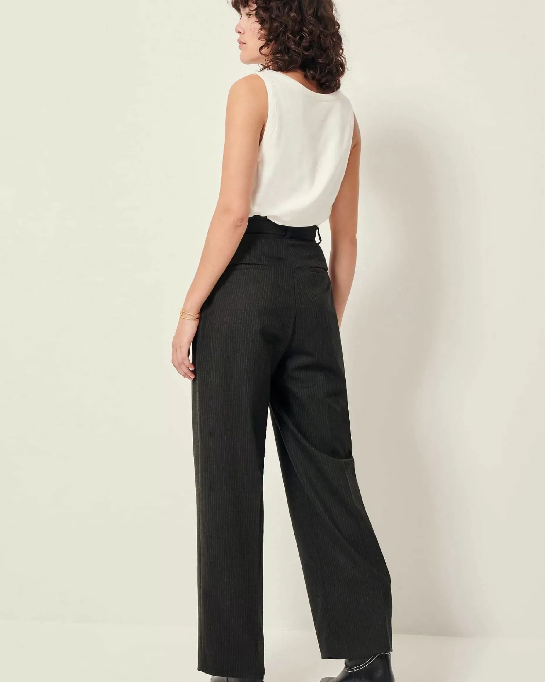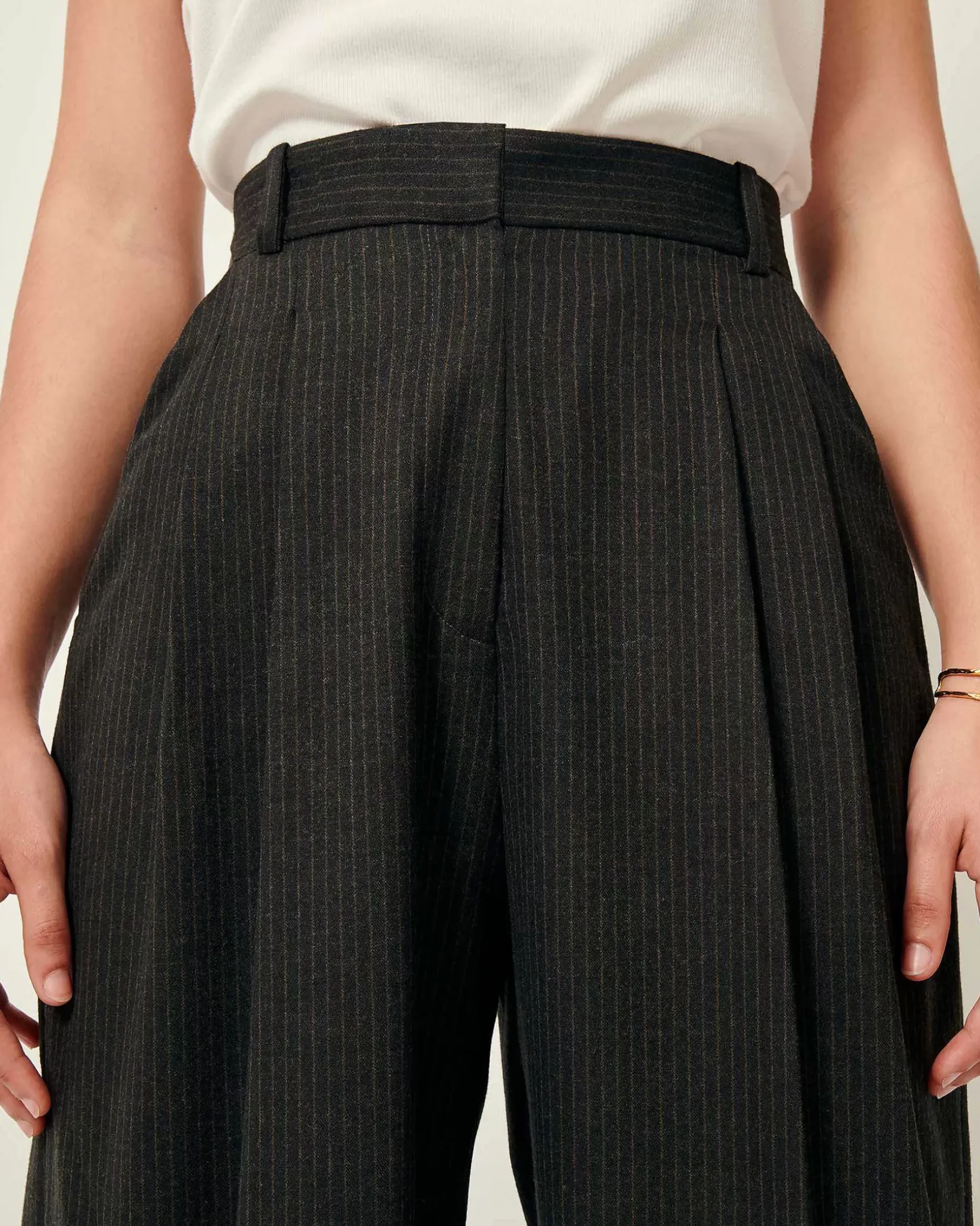 Weit Geschnittene Bundfaltenhose Aus In Italien Gewebtem, Marengofarbenem Flanell Mit Tennisstreifen