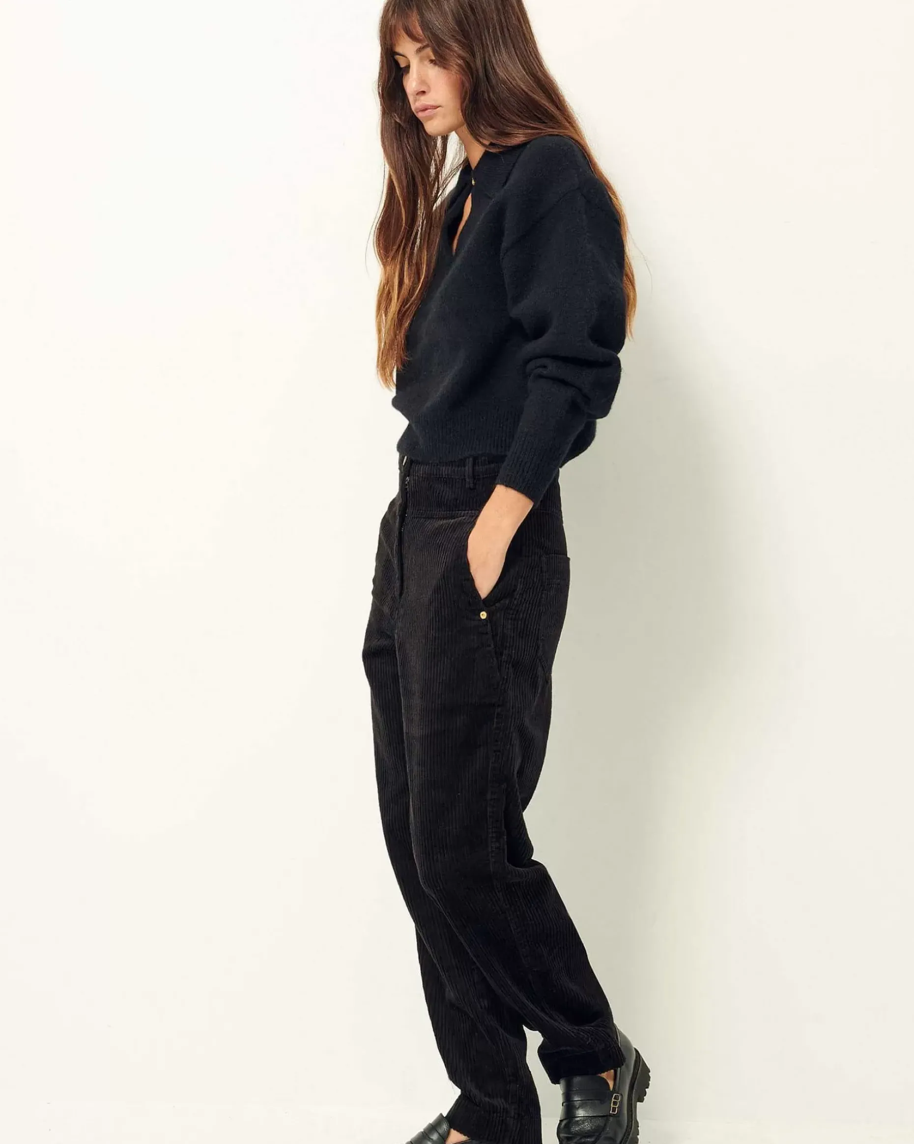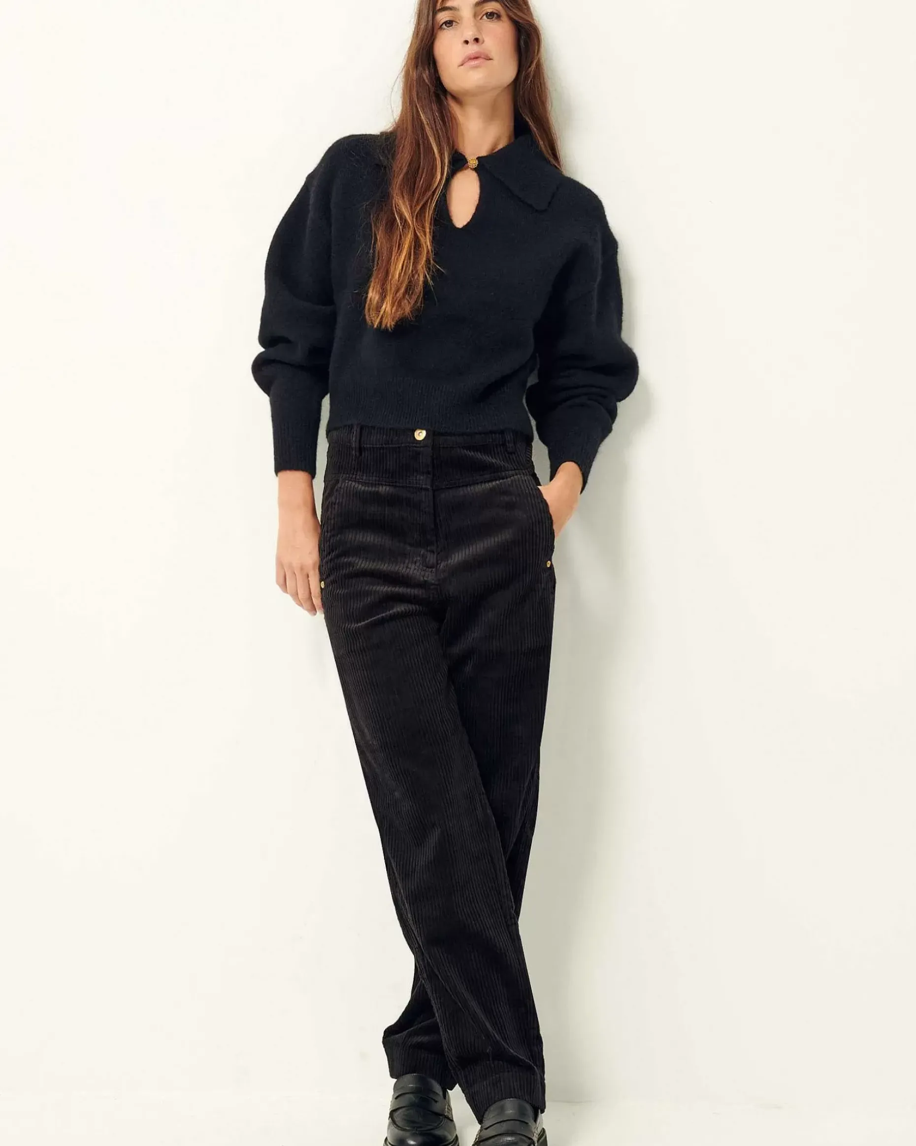 Hose Mit Hohem Bund Im 80-Er Look Aus In Frankreich Gewaschenem Feincord Mit 500 Rippen, Französische Webarbeit.