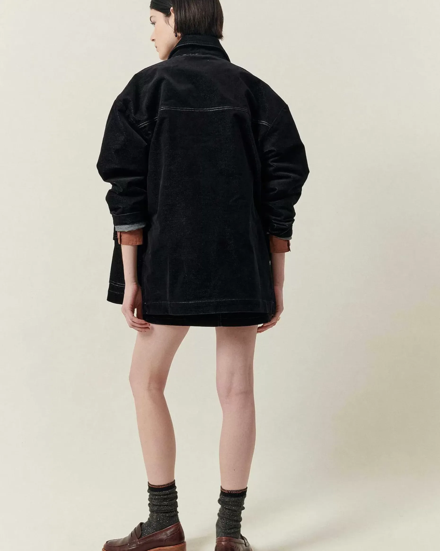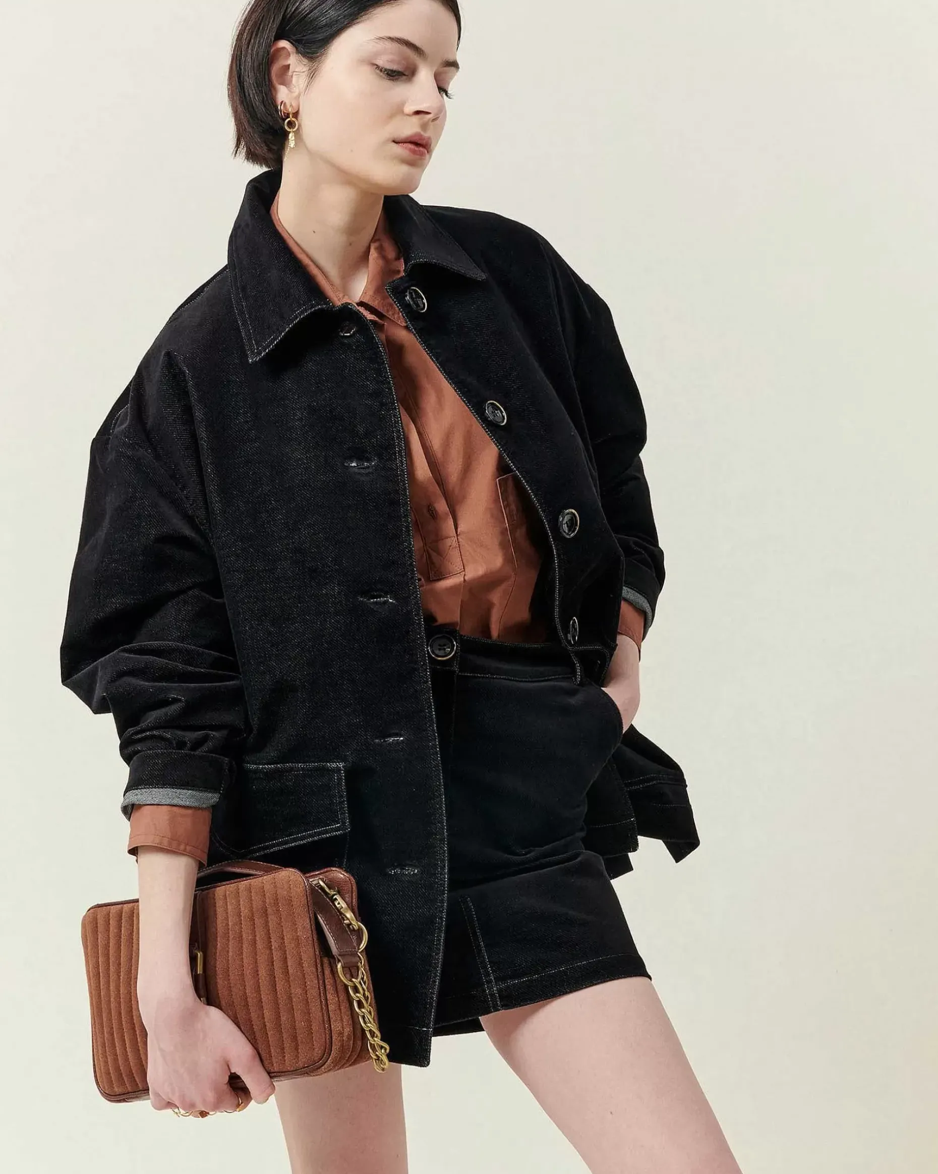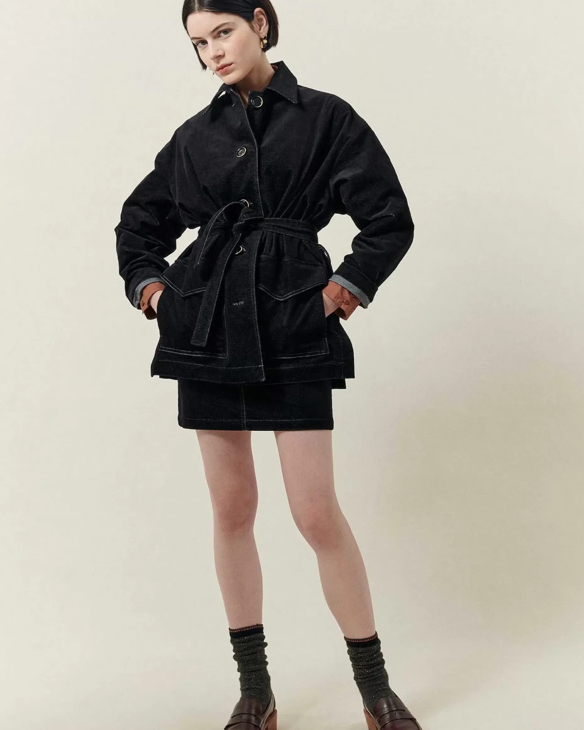 Gürteljacke Im Workwear-Look Aus Chambray-Cord, Kontrastierende Nähte.