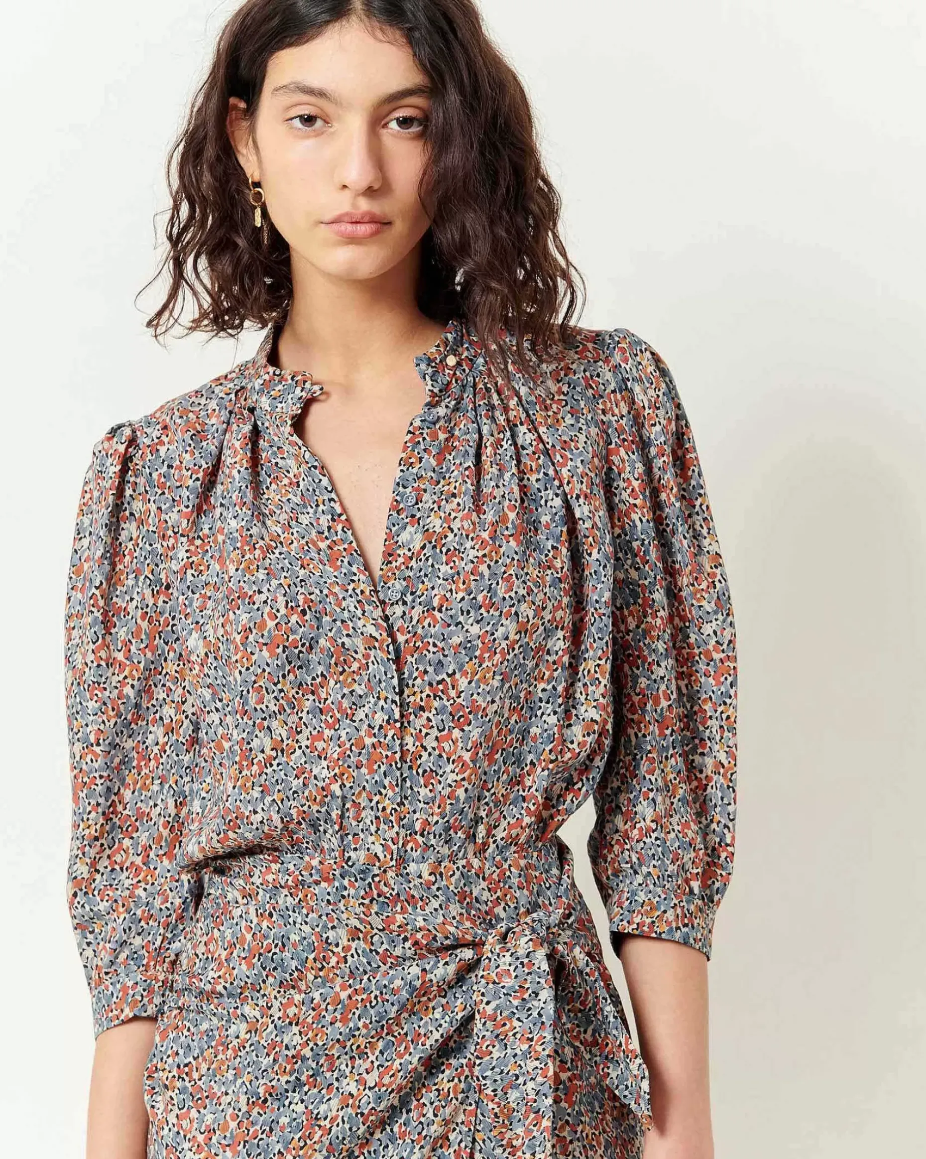 Kurzes Geknotetes Kleid Aus Fließendem, Bedrucktem Cupro-Krepp, Exklusives Sessùn-Muster.