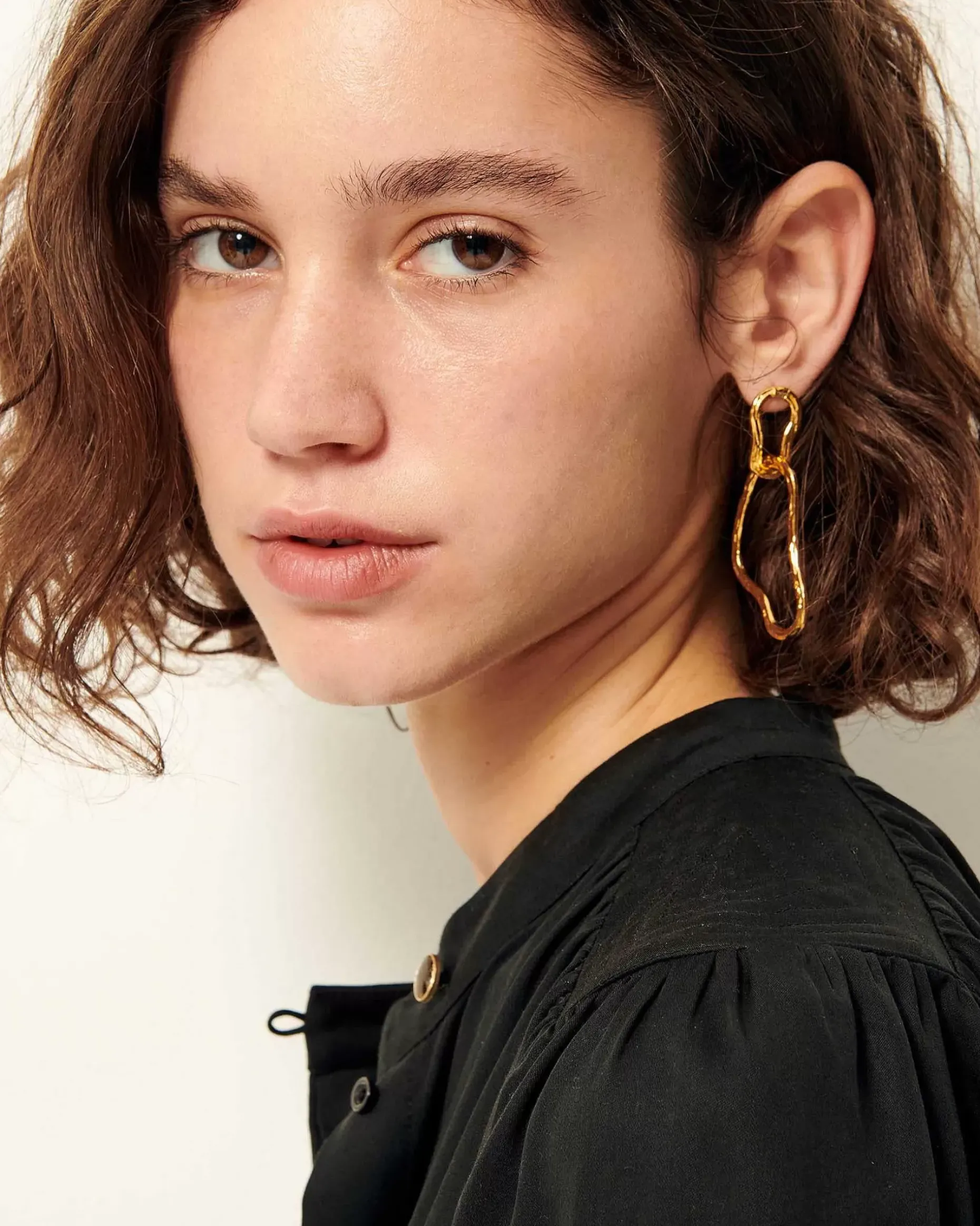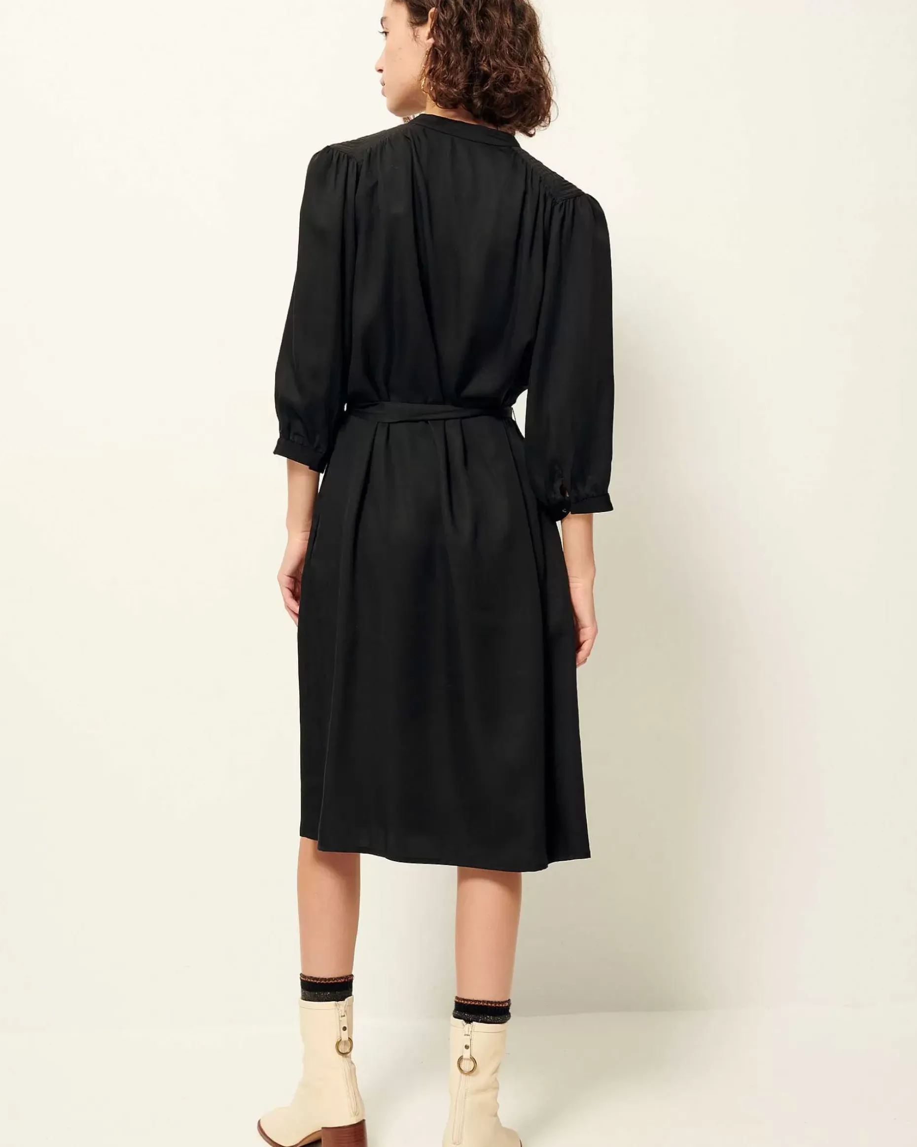 Halblanges Blusenkleid Aus Fließendem Lyocell-Satin, Gesteppte Einsätze Und Ton-In-Ton-Steppnähte.