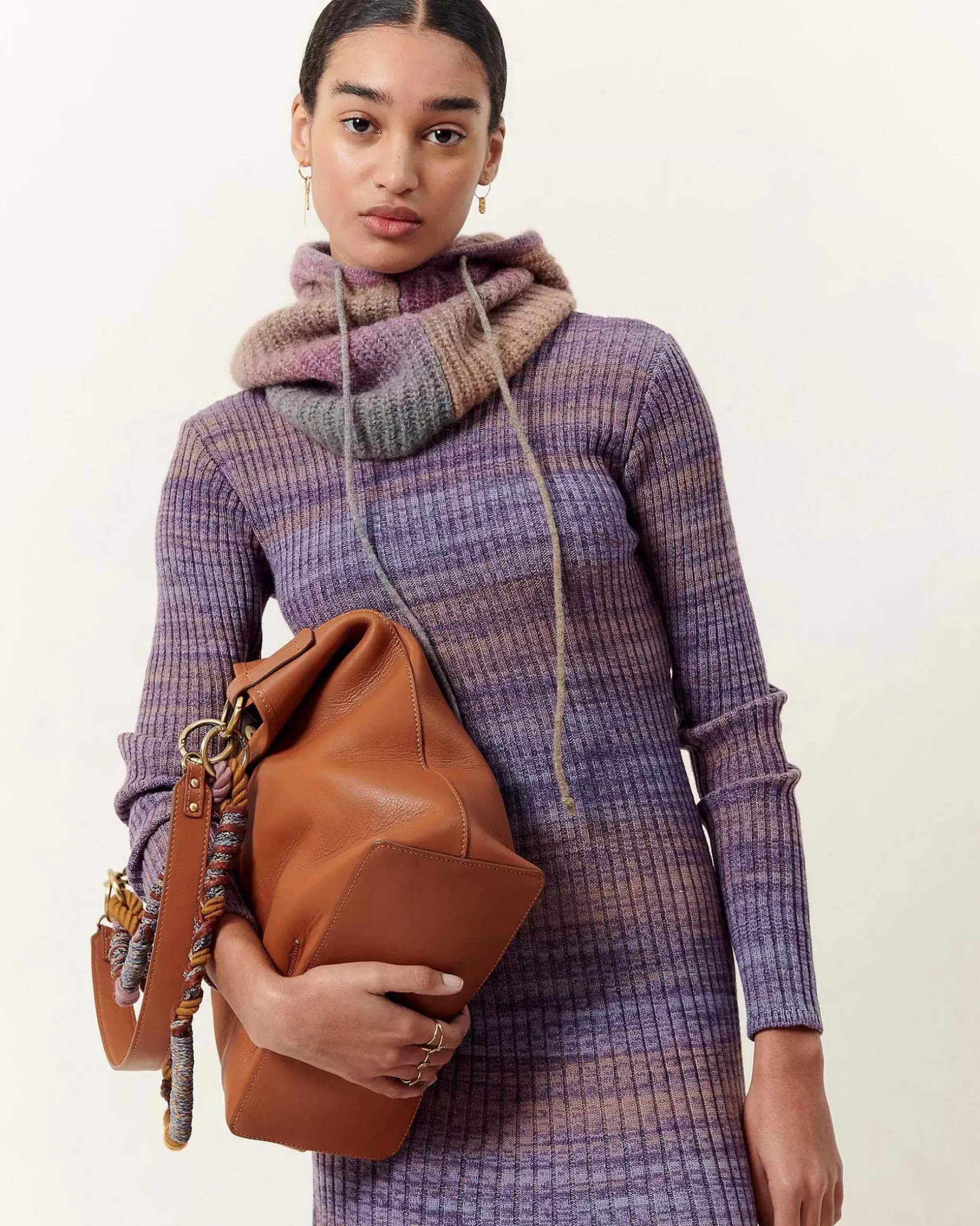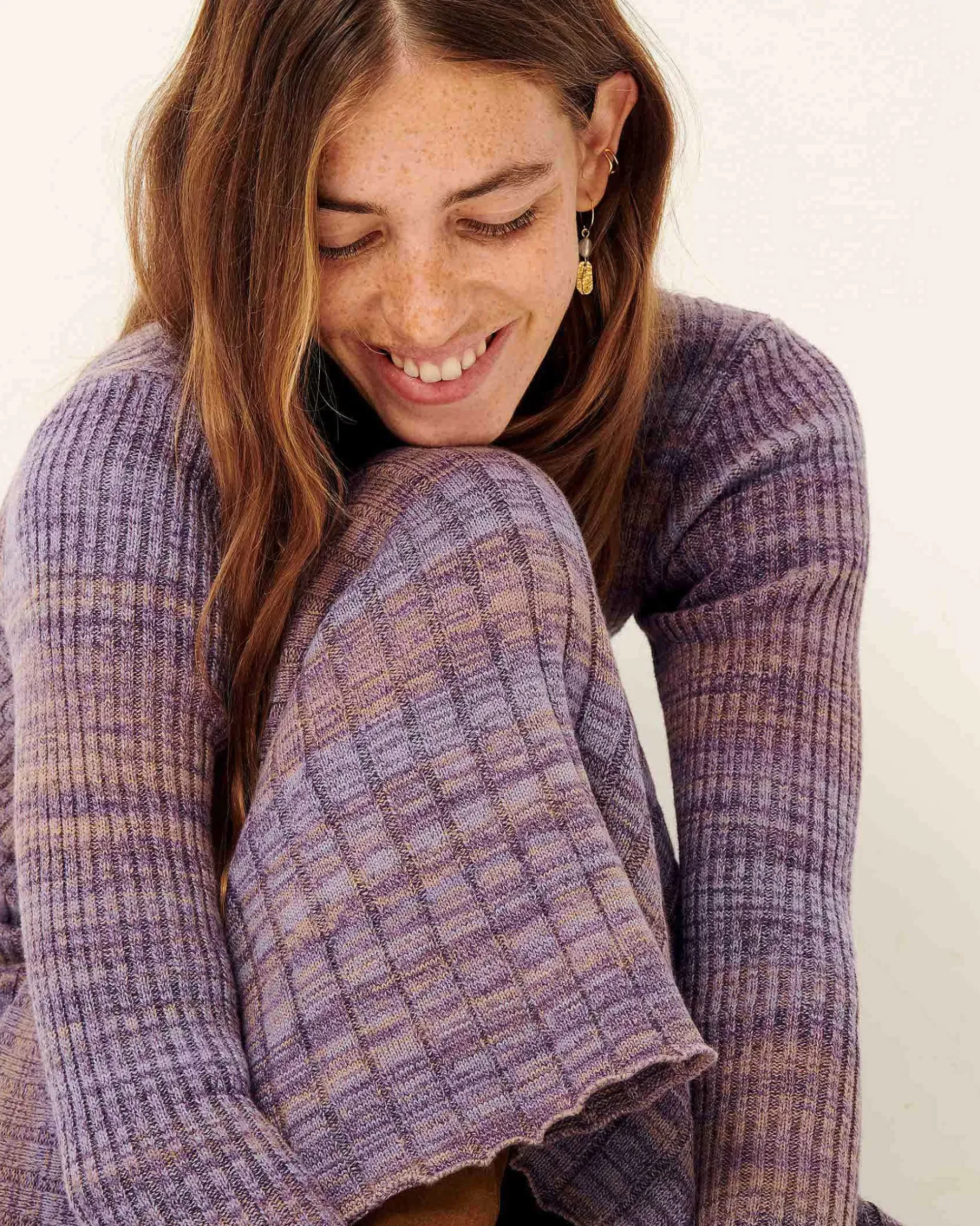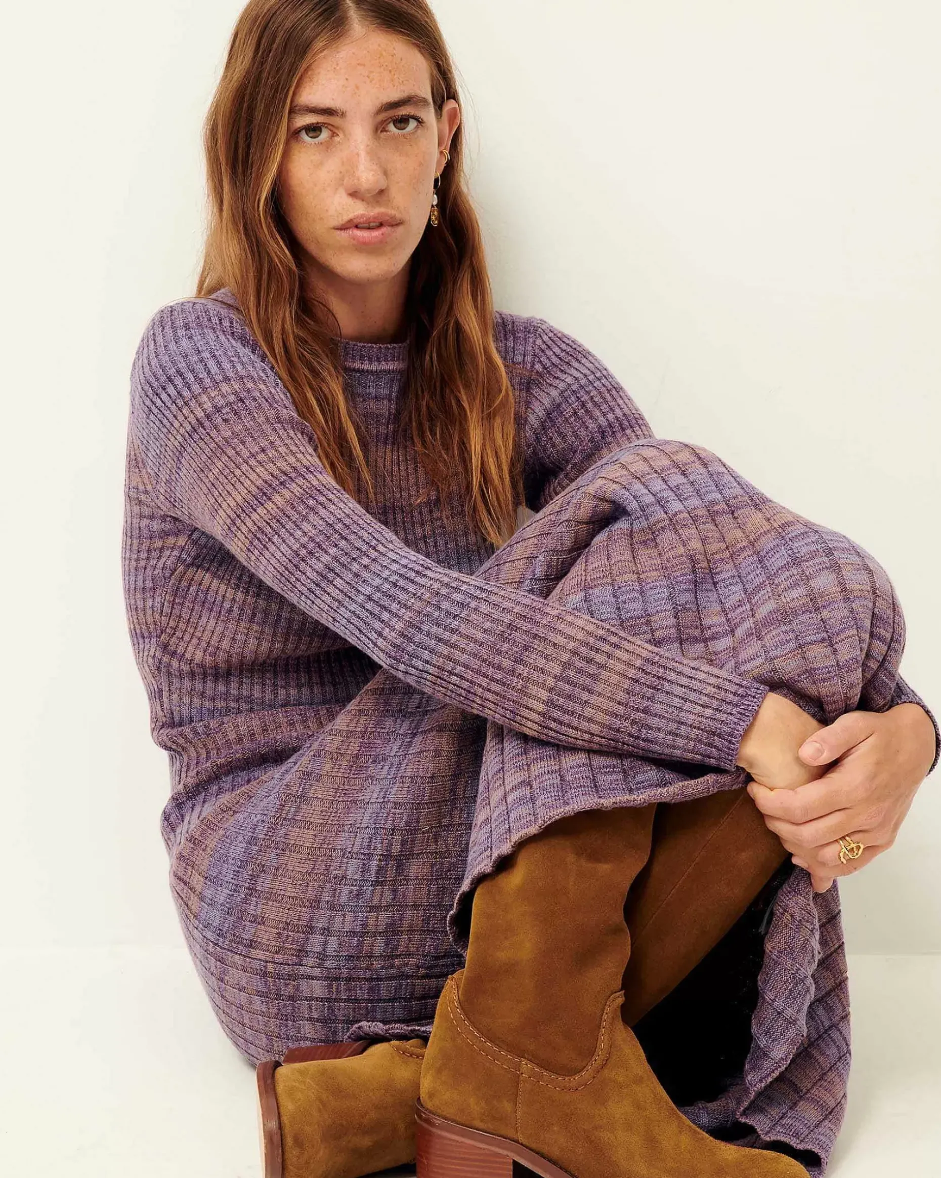 Langes Kleid Aus Gleichmäßig Gestrickten Rippen, Sonnenplissee-Effekt.