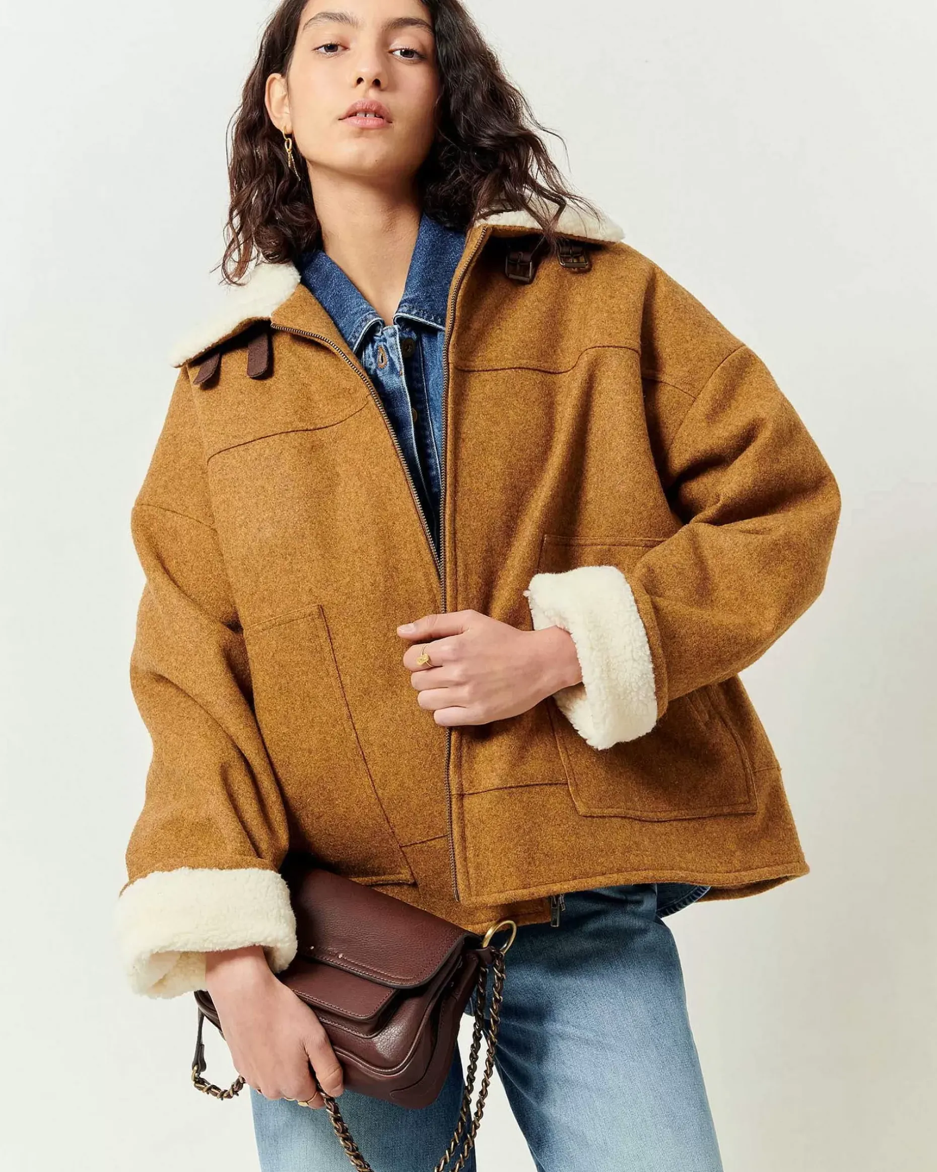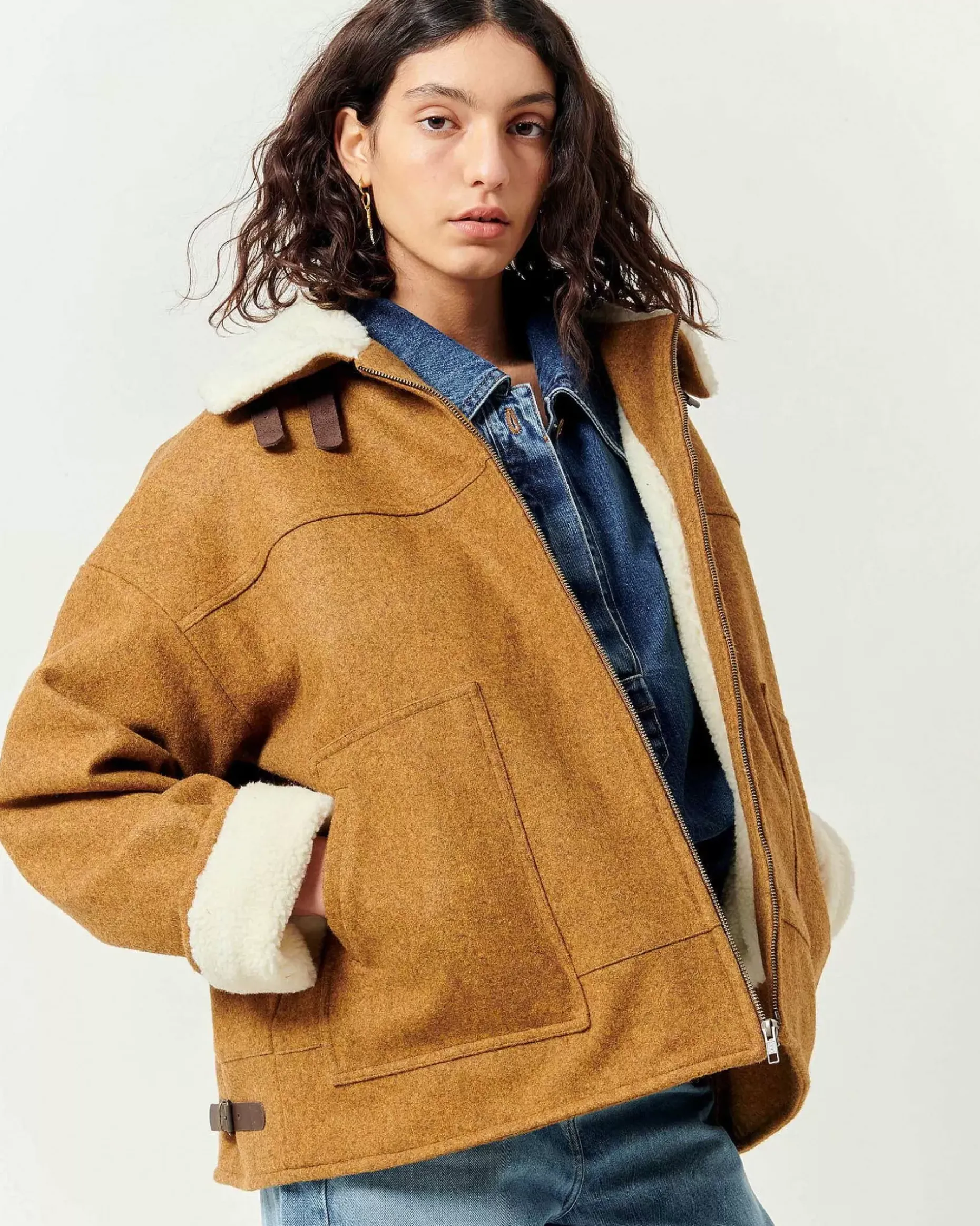 Weit Geschnittene Bomberjacke Aus In Italien Gewebtem Wollstoff.