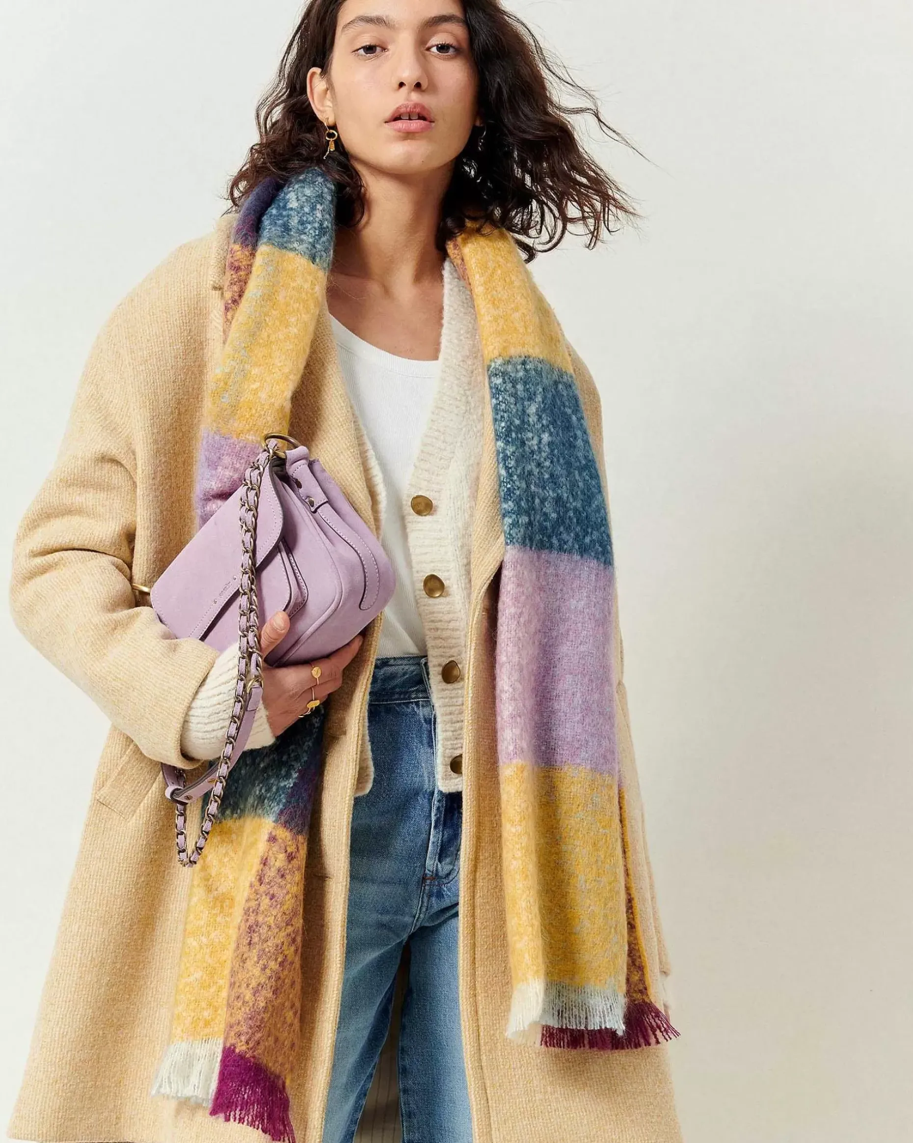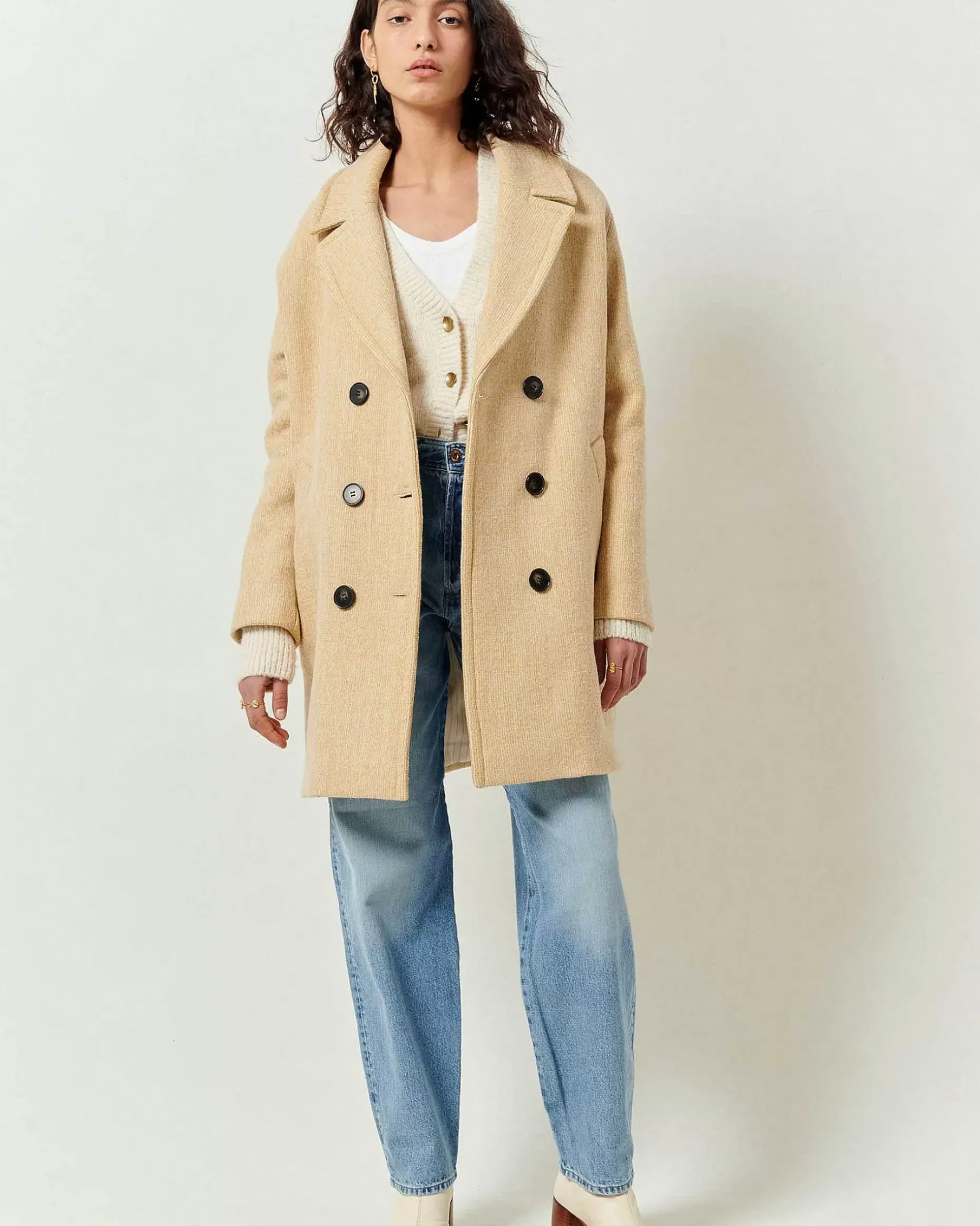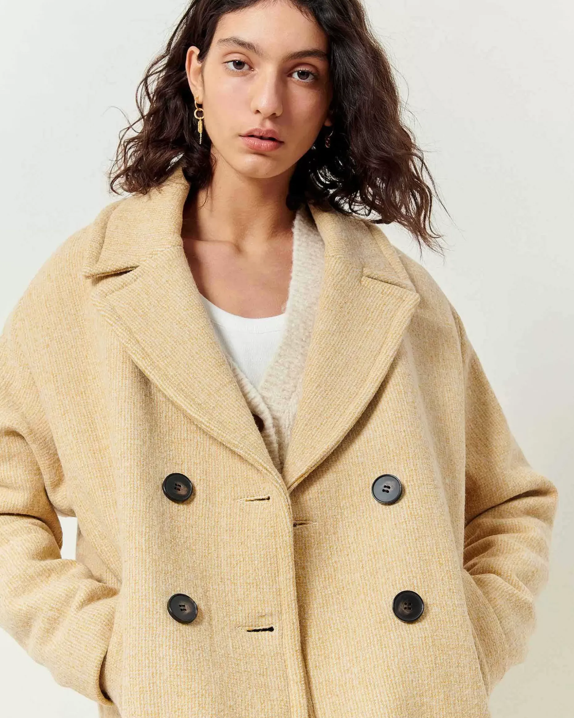 Weit Geschnittener Mantel Mit Doppelter Knopfleiste Aus Zweifarbigem Natté Aus Bouclé-Garnen, Italienische Webarbeit.