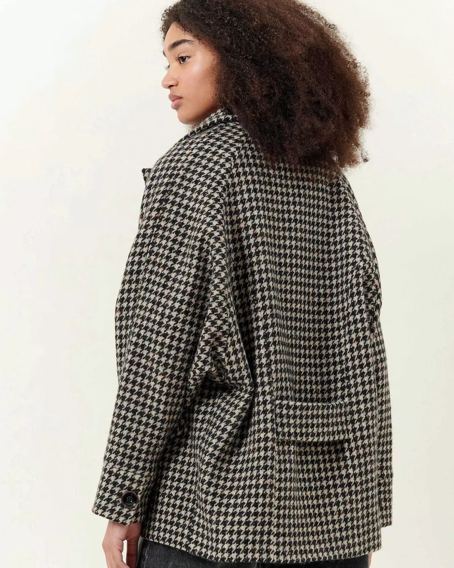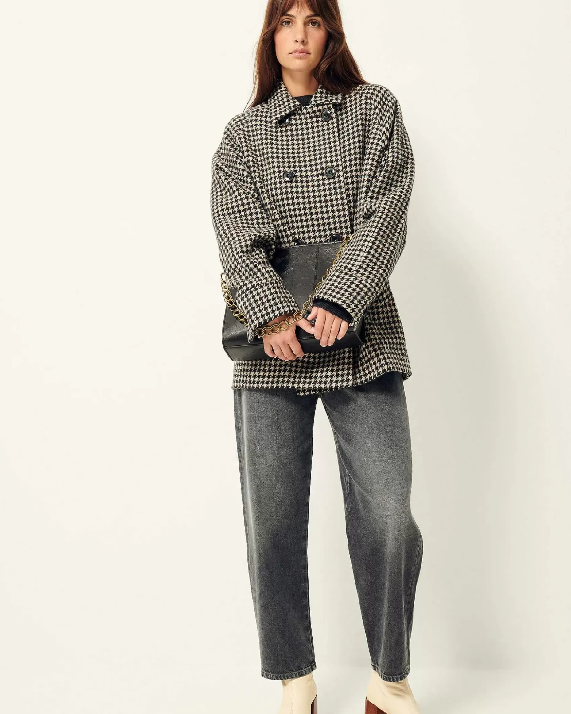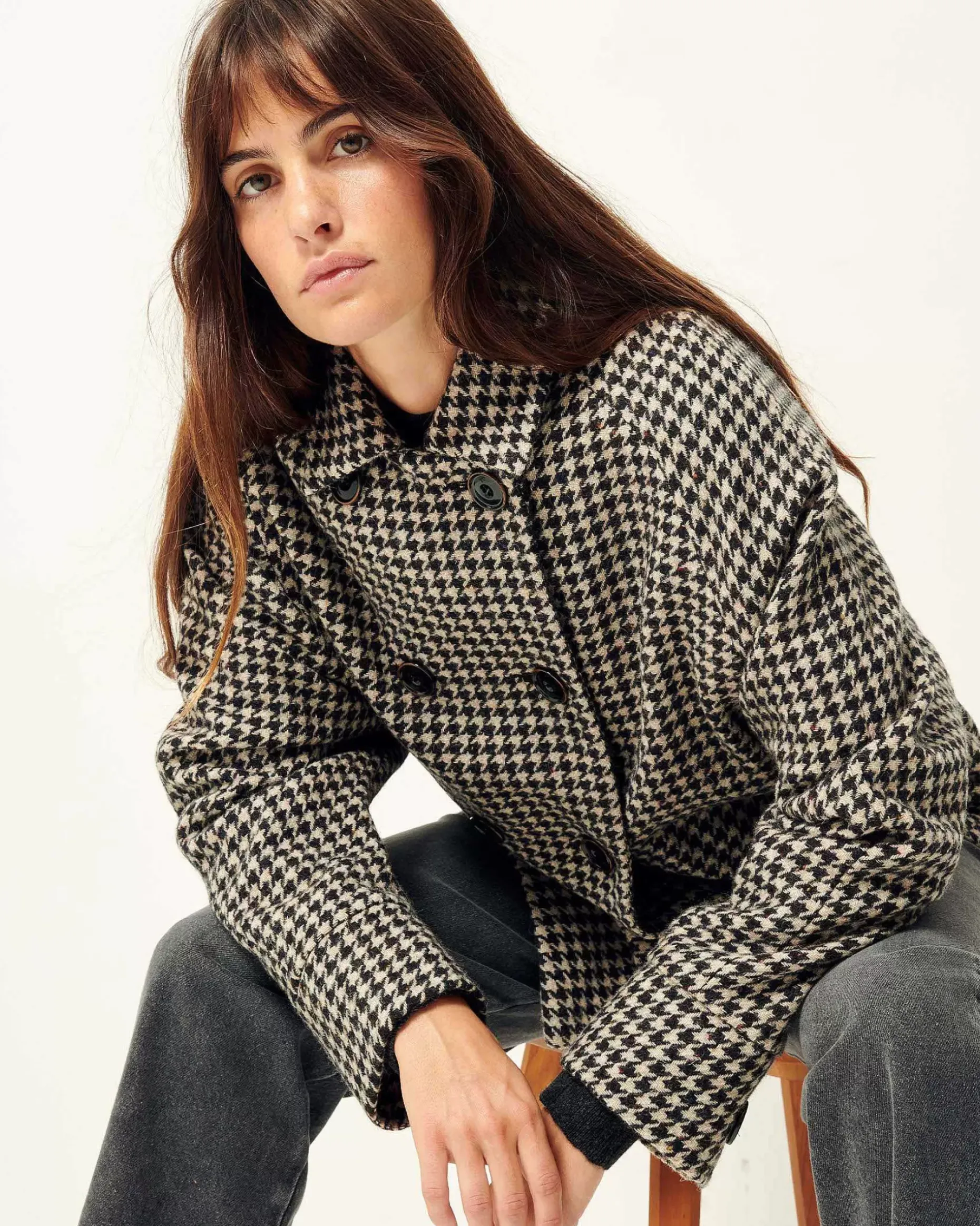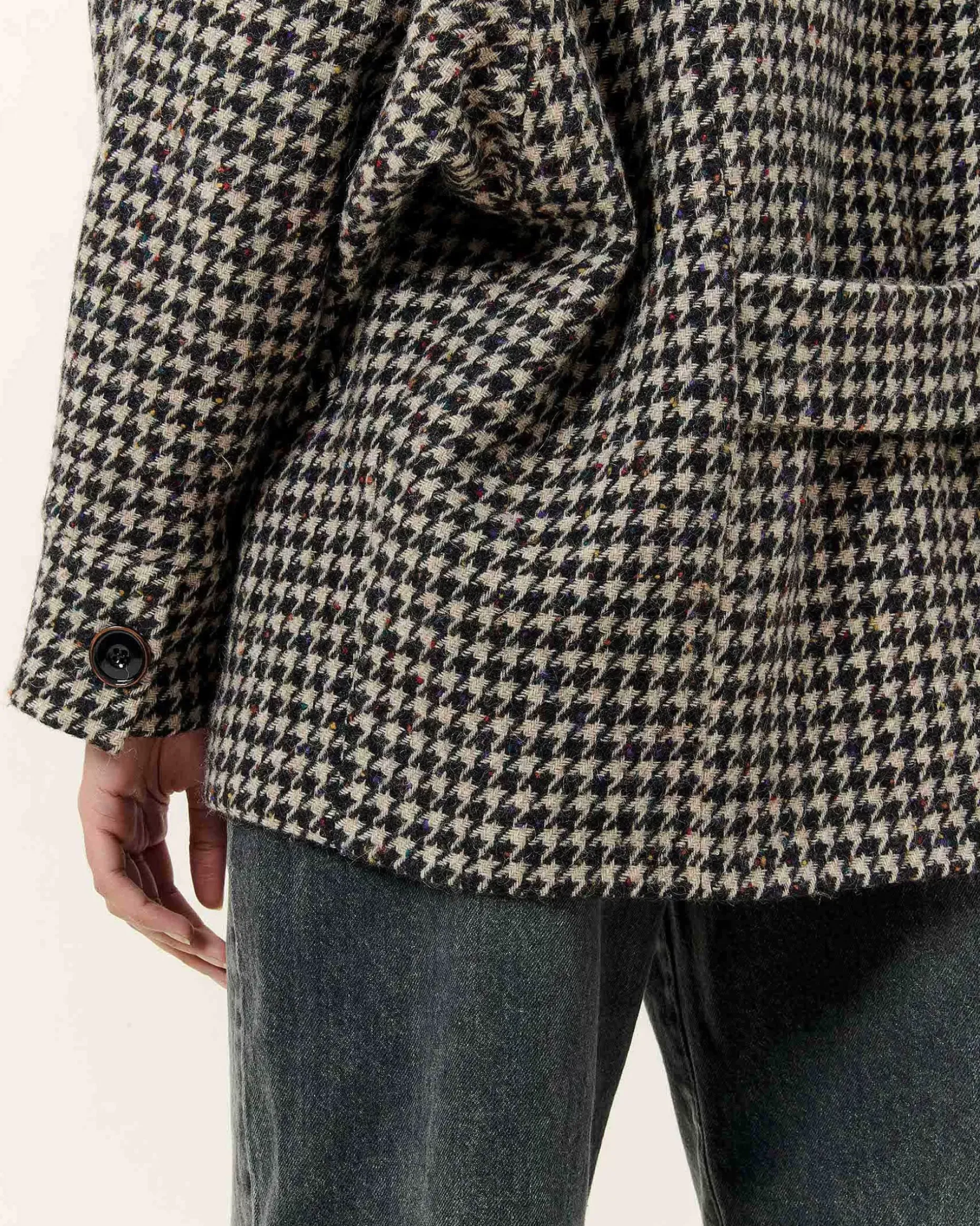 Doppelt Geknöpfter Caban Aus Fantasievoll Gewebtem Hahnentritt-Tartan, Mit Mehrfarbigem Sprenkelgarn Gearbeitete Details, Italienische Webarbeit.