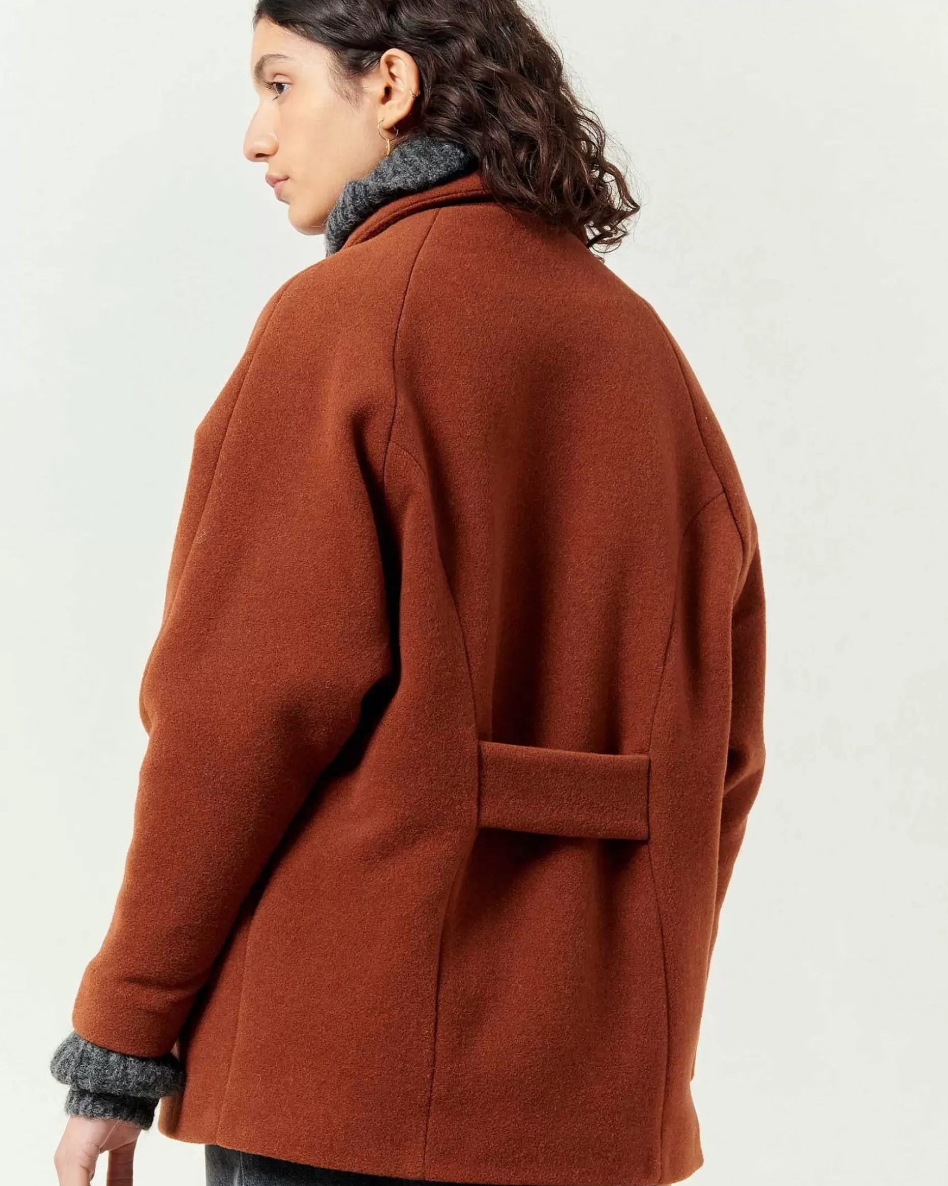 Double Breasted Wide Jacket In Velvet Finishing Double Weaving Flannel Woven In Italy.