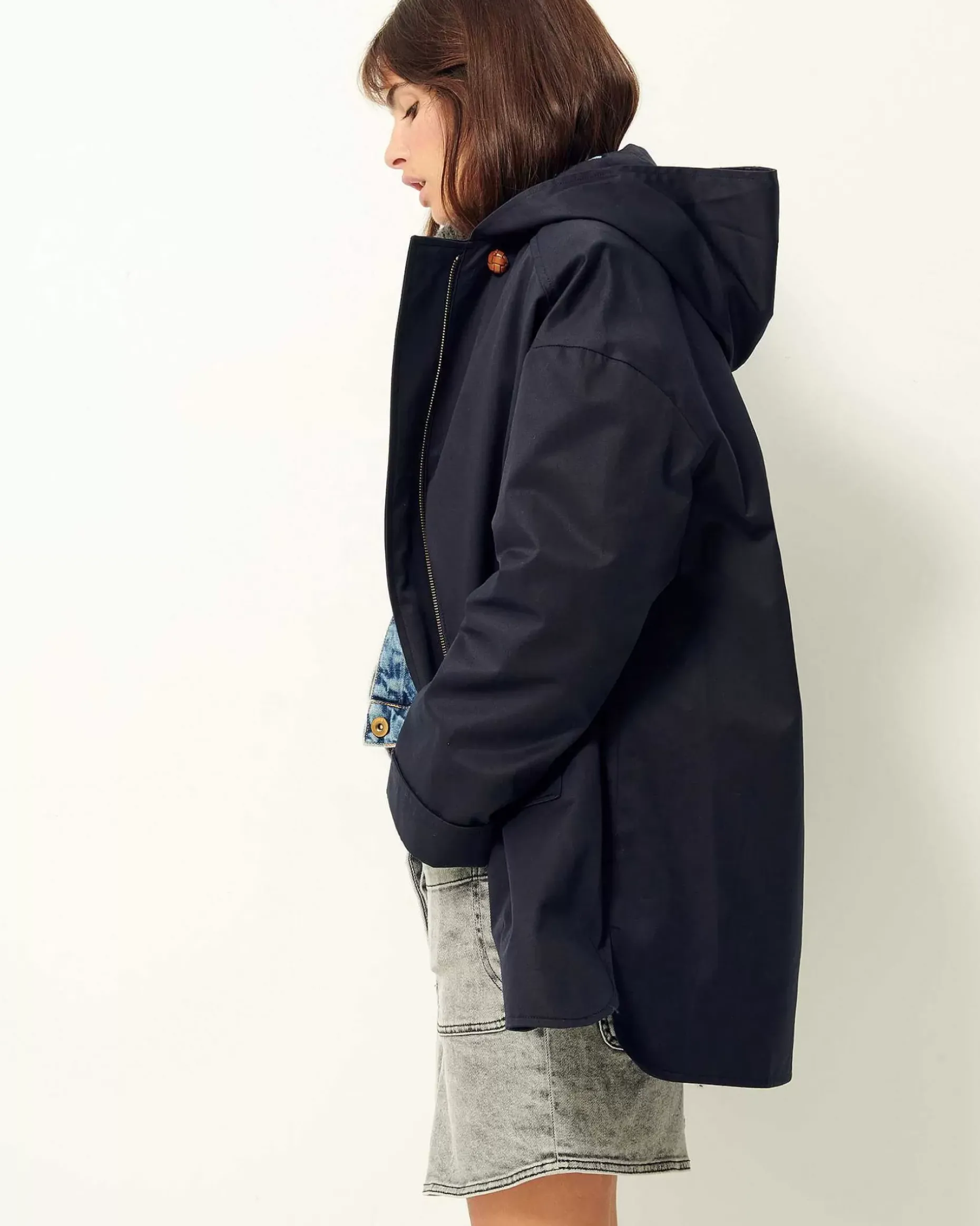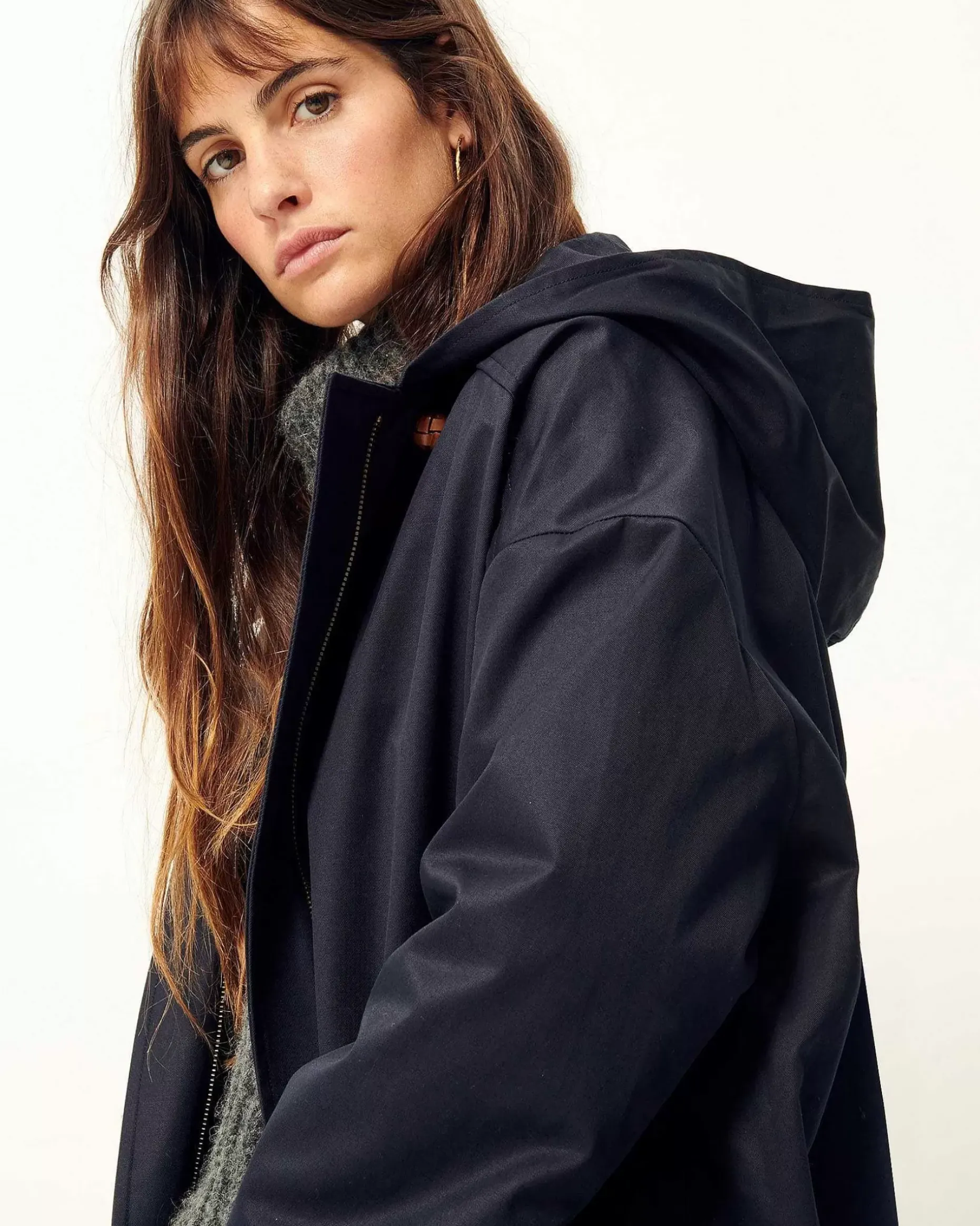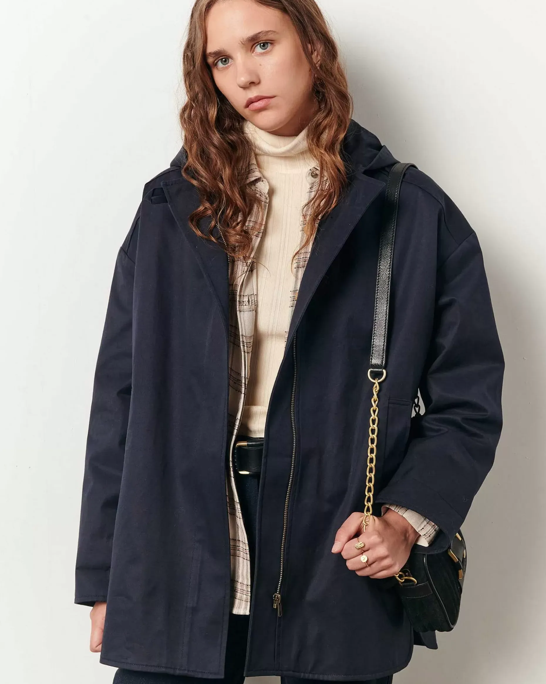 Oversize Mantel Mit Kapuze Aus Wasserabweisendem Kattun, Aus Baumwolle Aus Biologischem Anbau Angefertigt, Italienische Webarbeit.