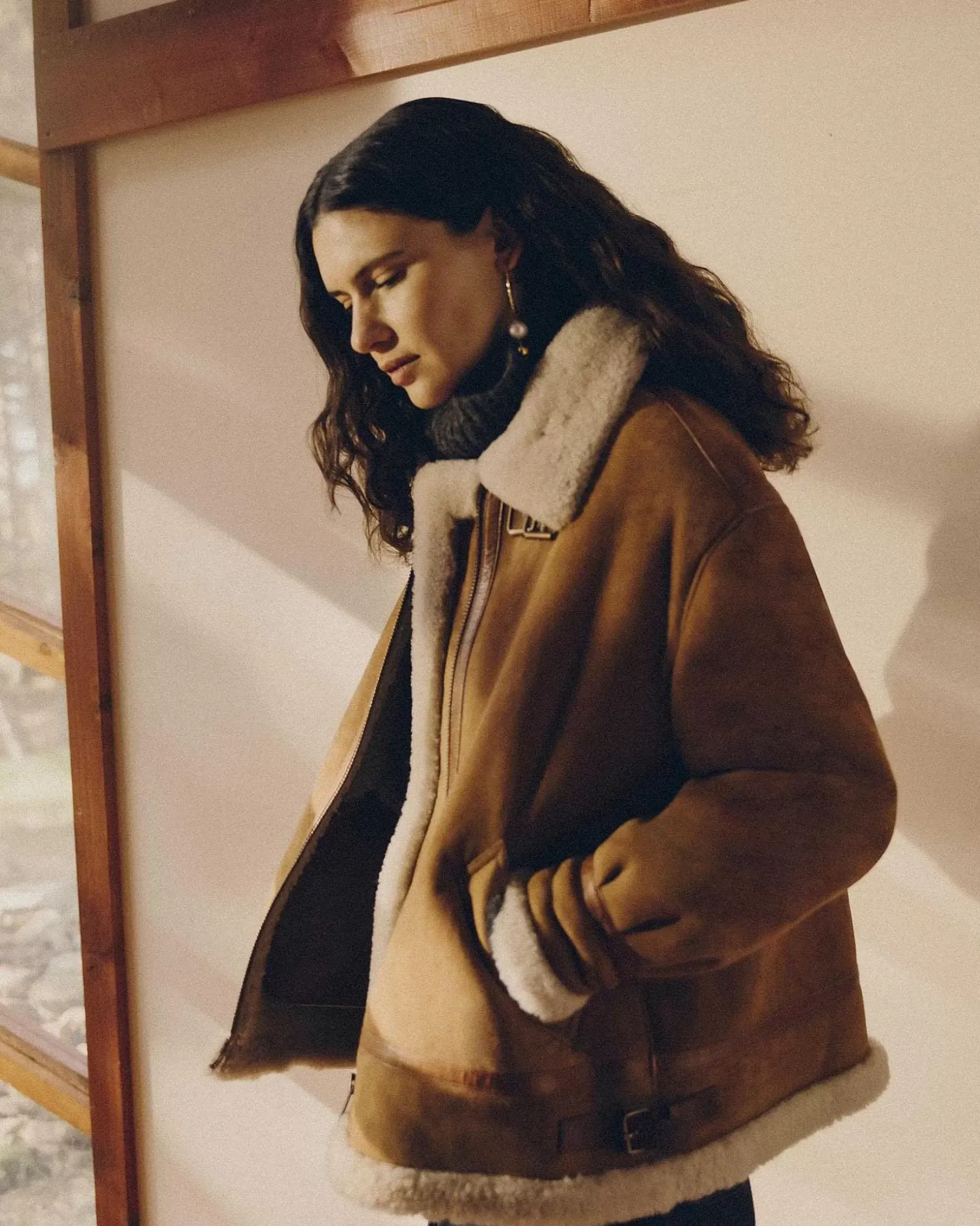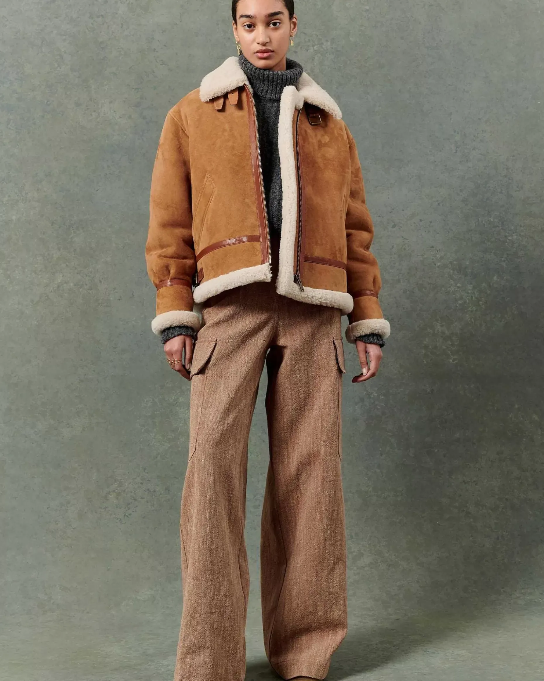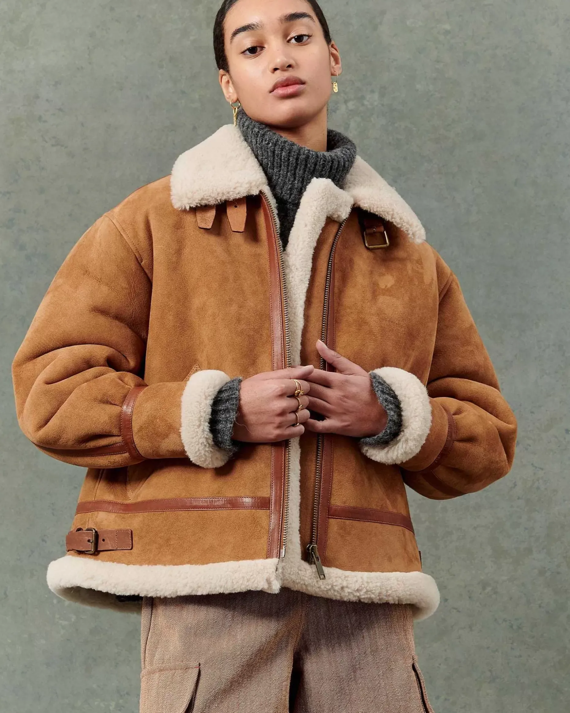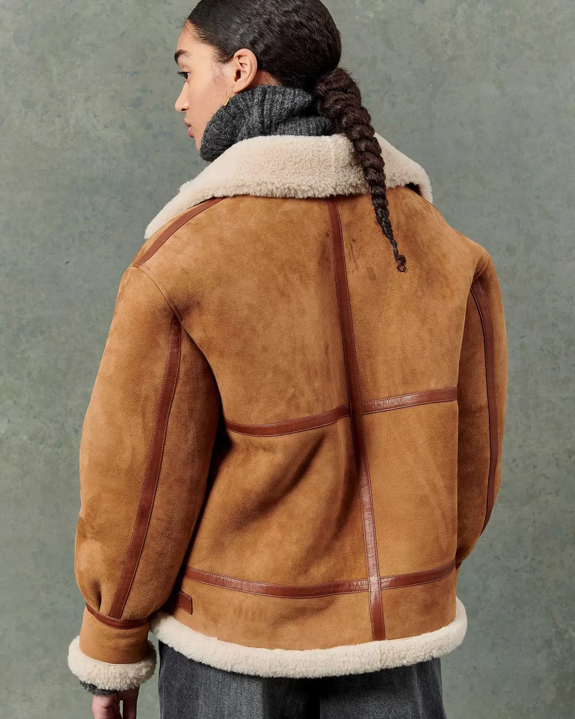 Schaffell-Bomberjacke Mit Kontrastierendem Schrägband Aus Pflanzlich Gegerbtem Lammleder.