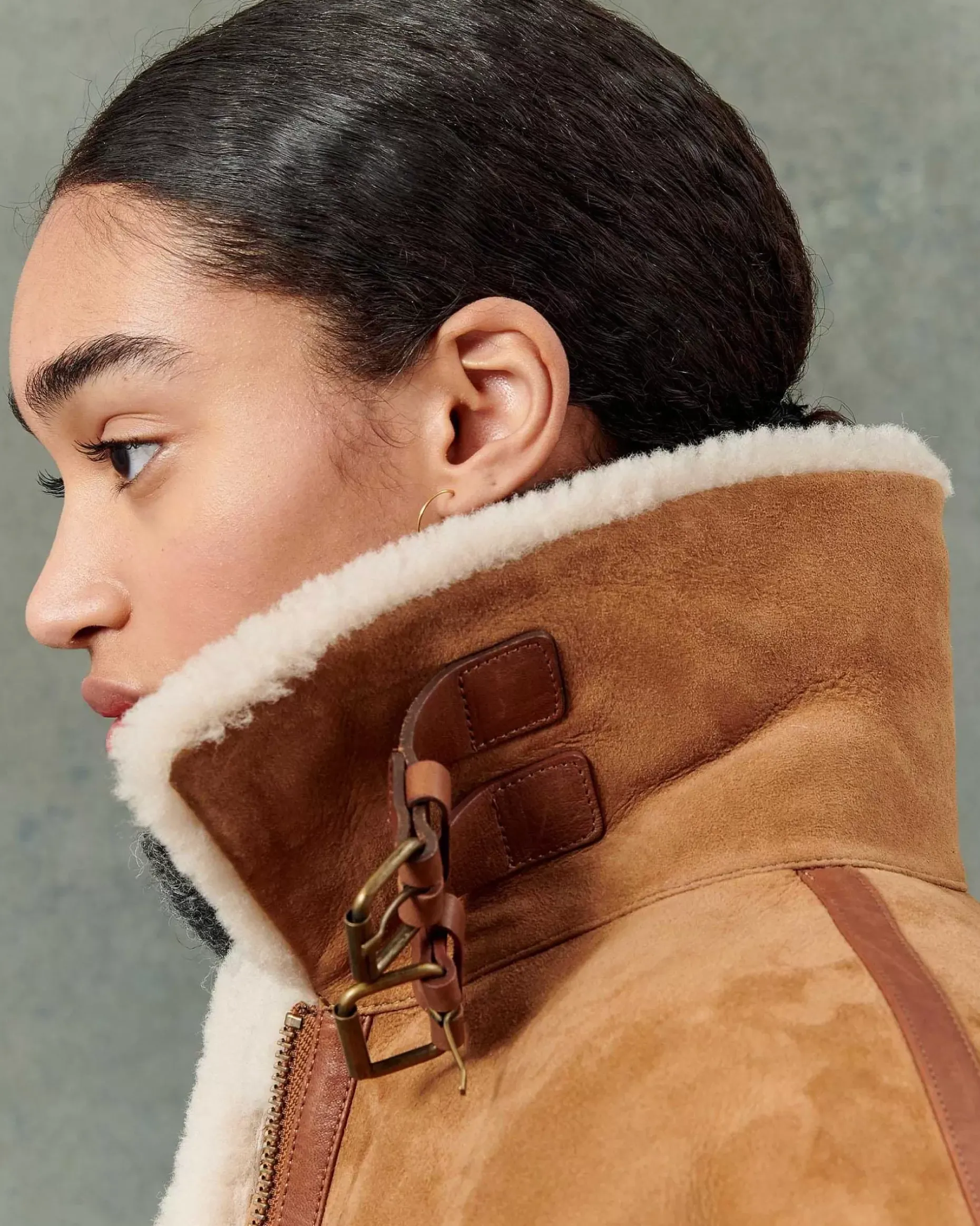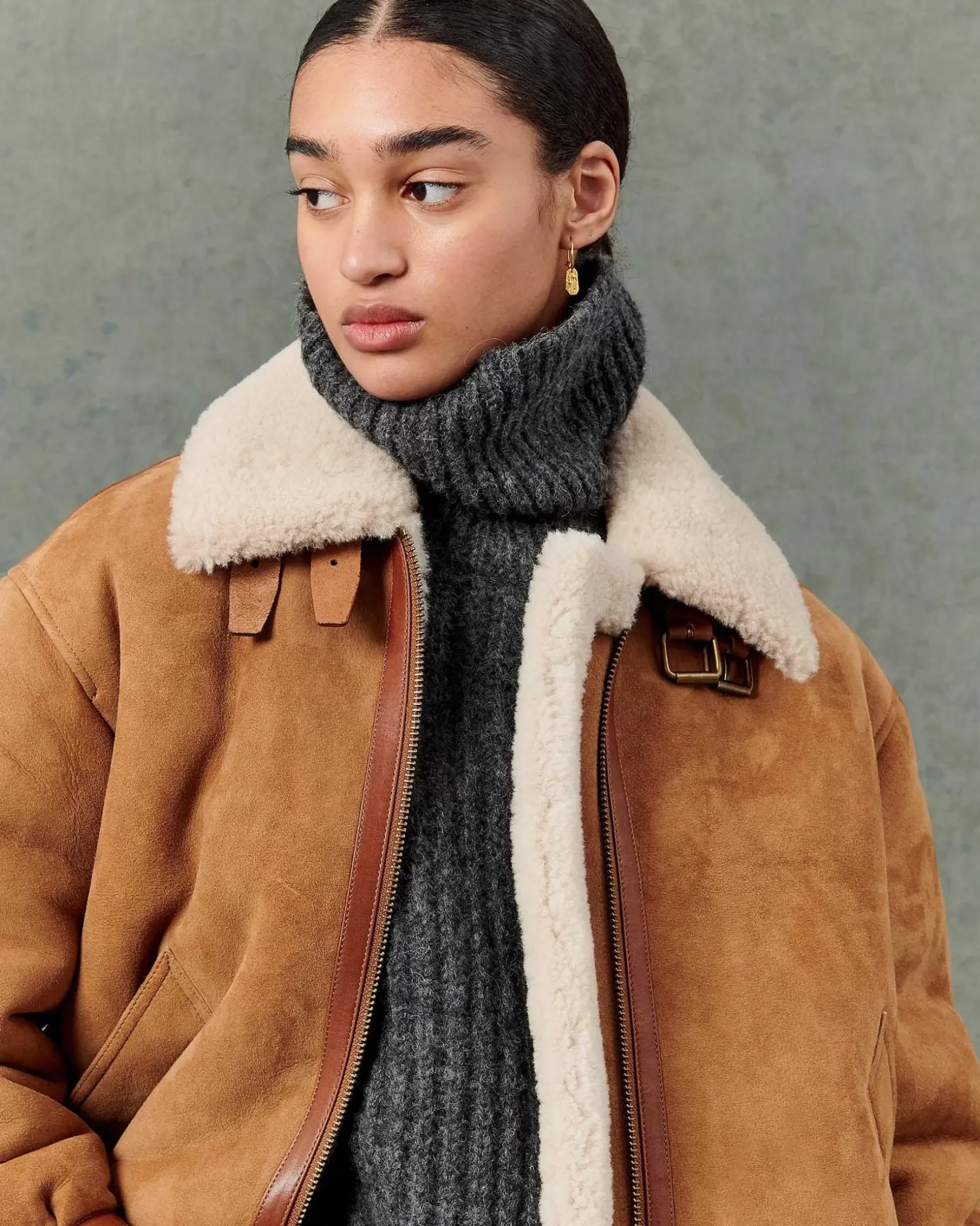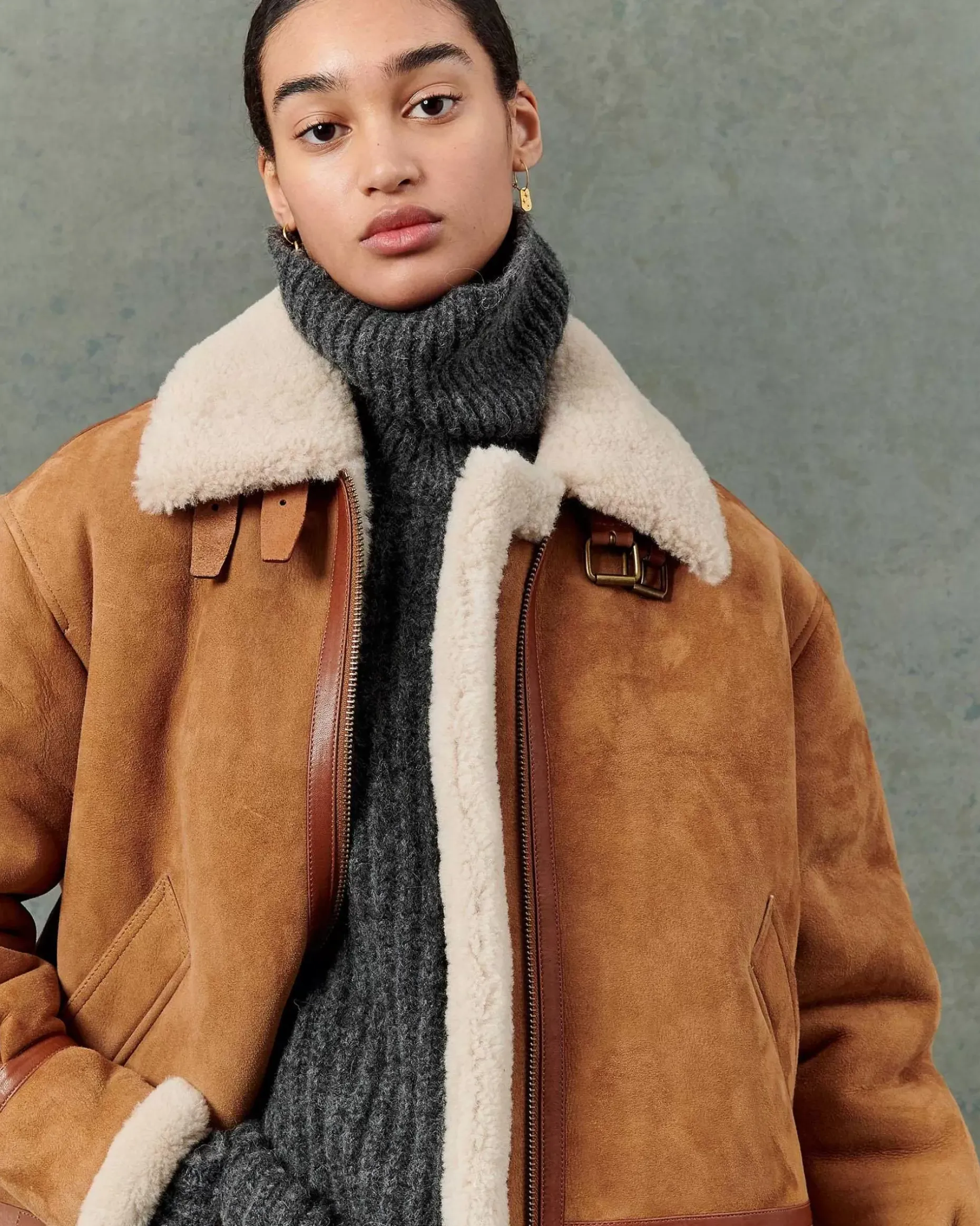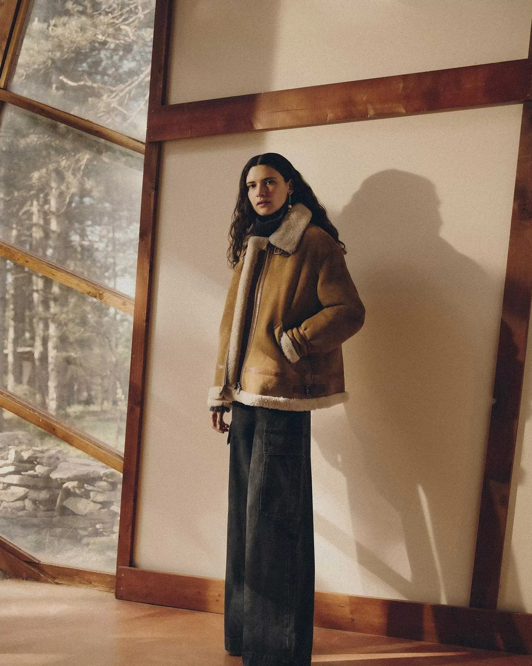 Schaffell-Bomberjacke Mit Kontrastierendem Schrägband Aus Pflanzlich Gegerbtem Lammleder.