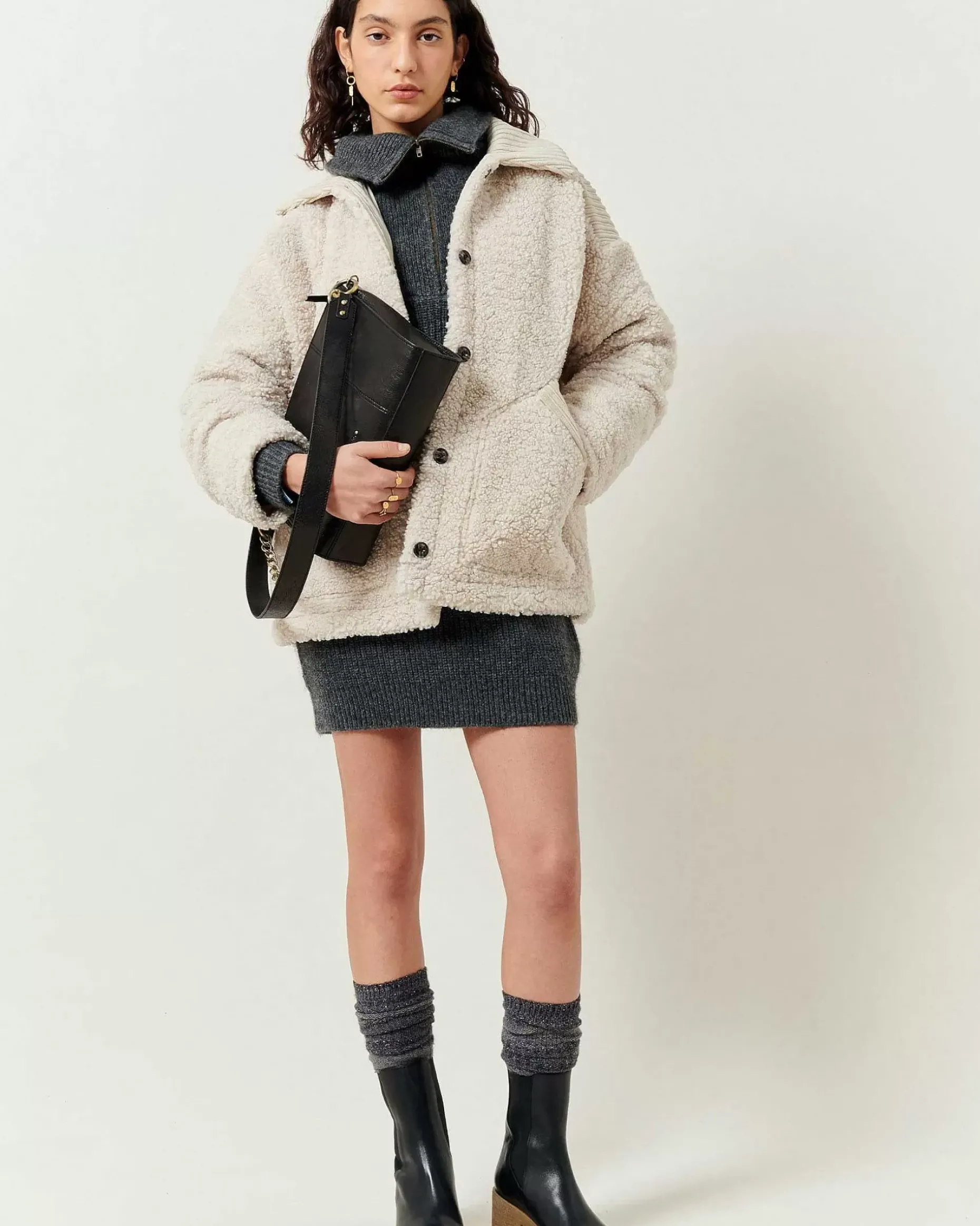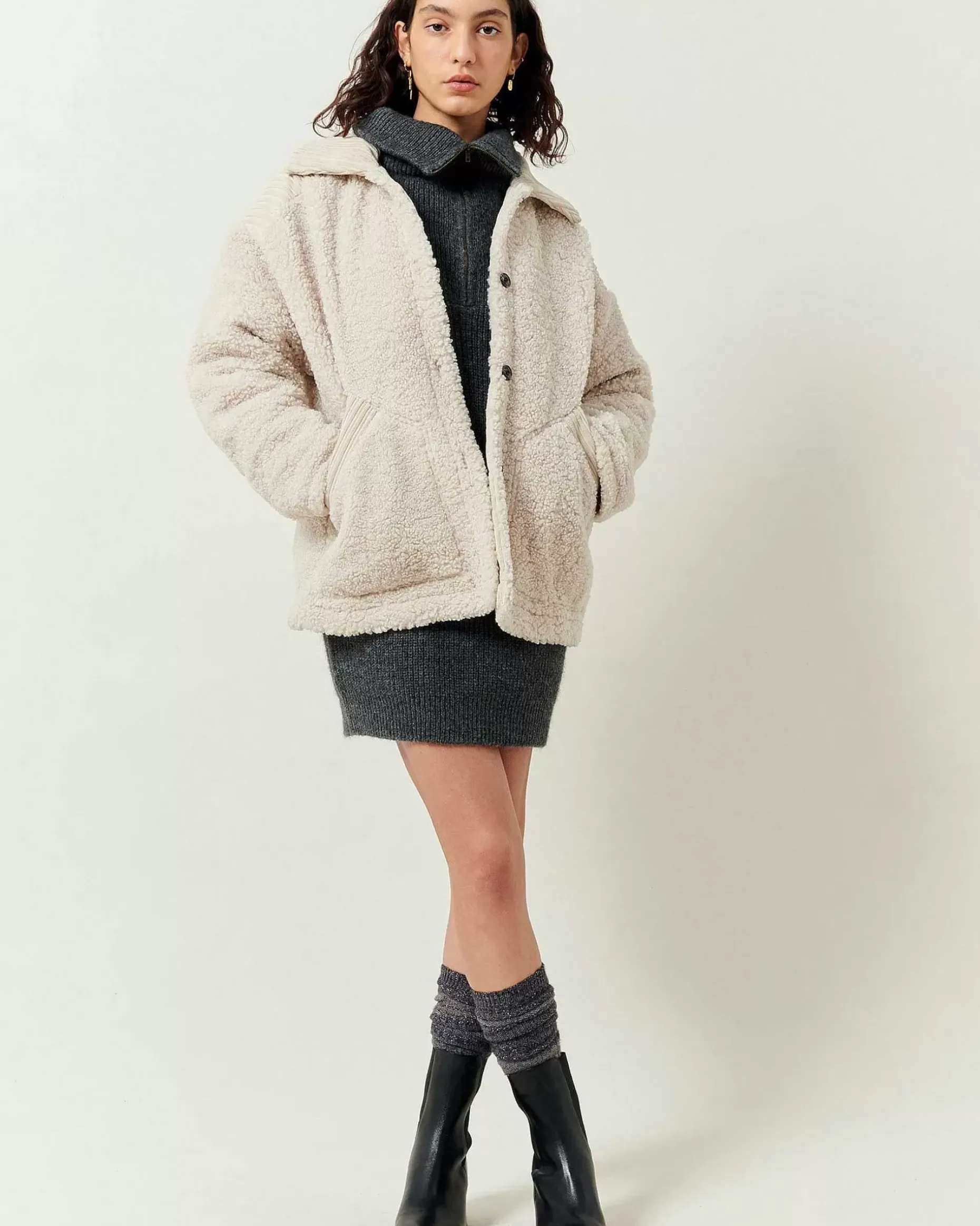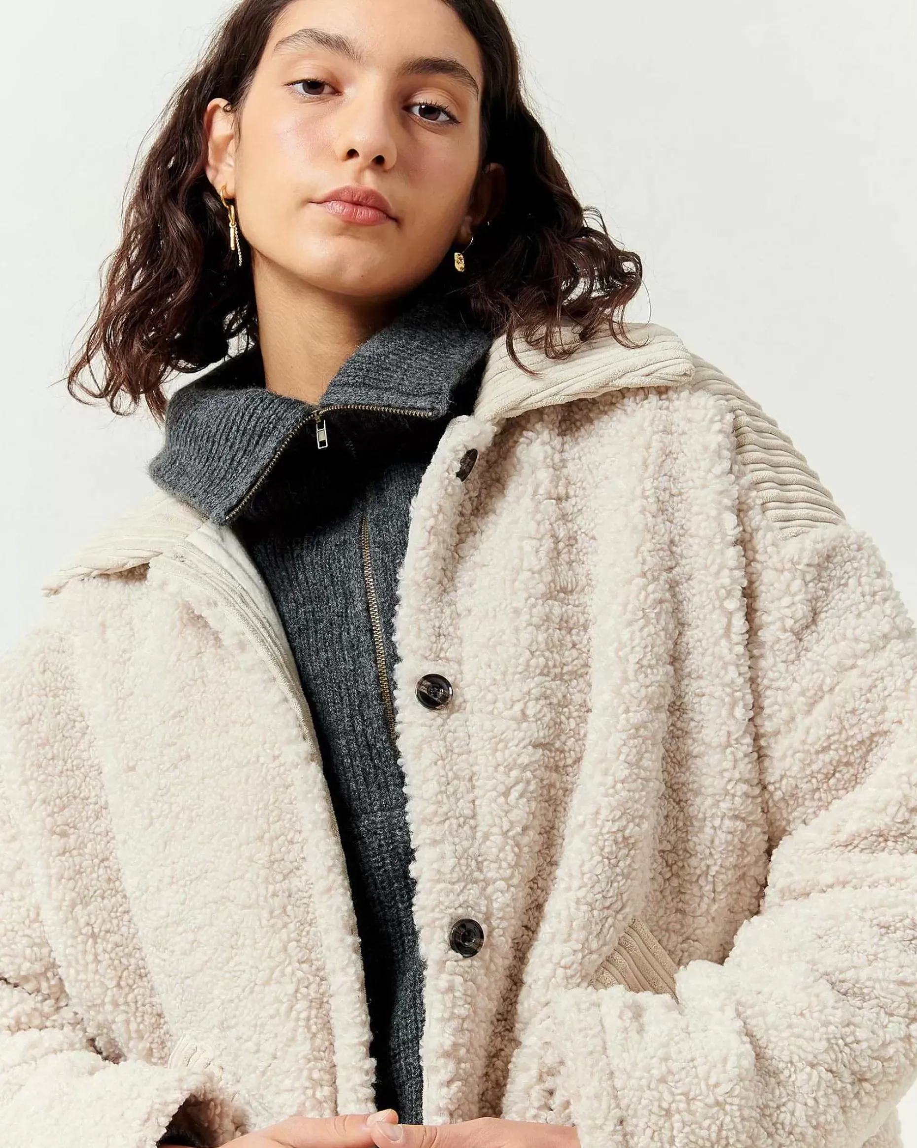 Weite Jacke Aus Schaffellimitat, Einsätze Aus Feincord Mit Unregelmäßigen Rippen.