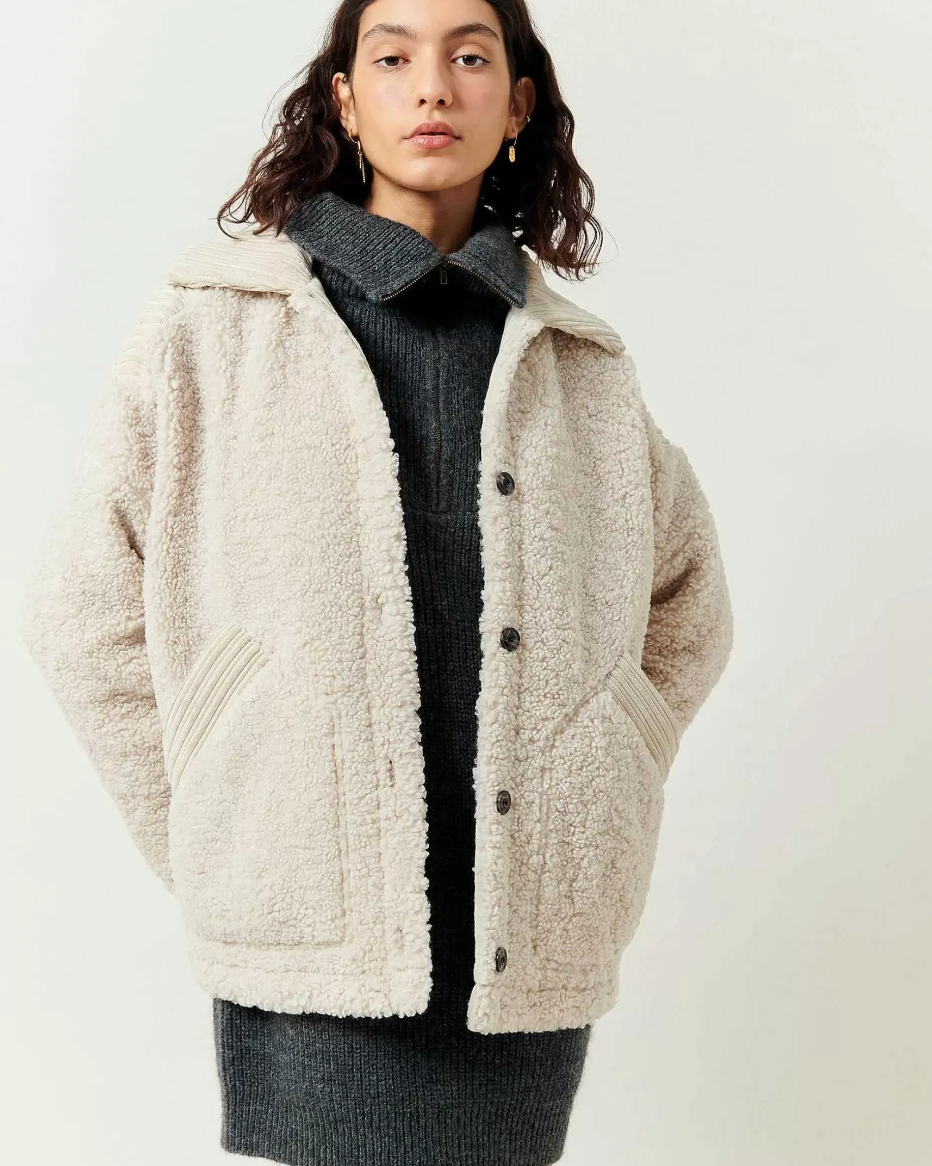 Weite Jacke Aus Schaffellimitat, Einsätze Aus Feincord Mit Unregelmäßigen Rippen.