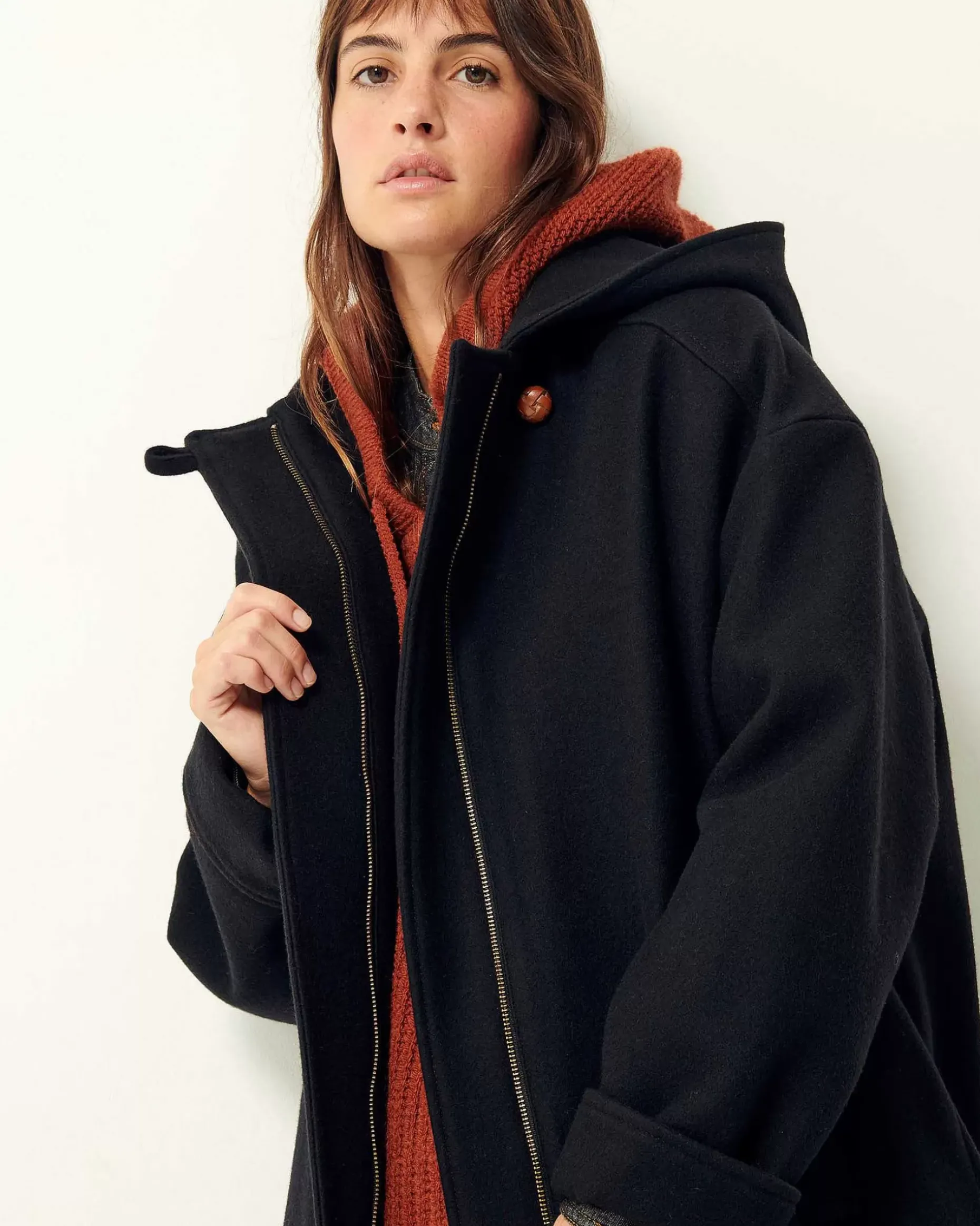 Oversize Kapuzenmantel Aus Beschichteter, Wasserabweisender Bio-Baumwolle, Italienische Webarbeit.