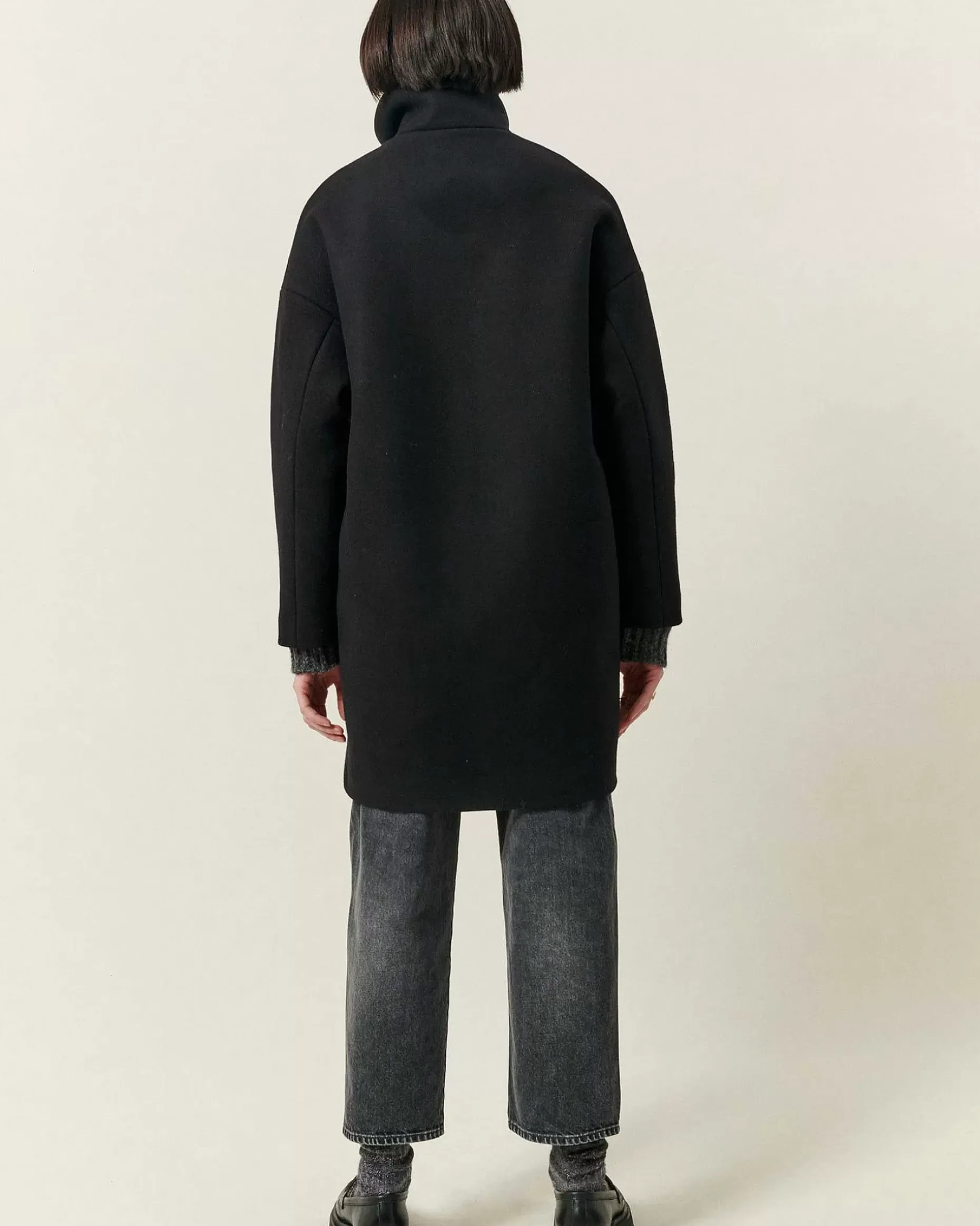 Gerade Geschnittener, Halblanger Mantel Mit Stehkragen Aus Meliertem, In Italien Doppelt Gewebtem Twill.