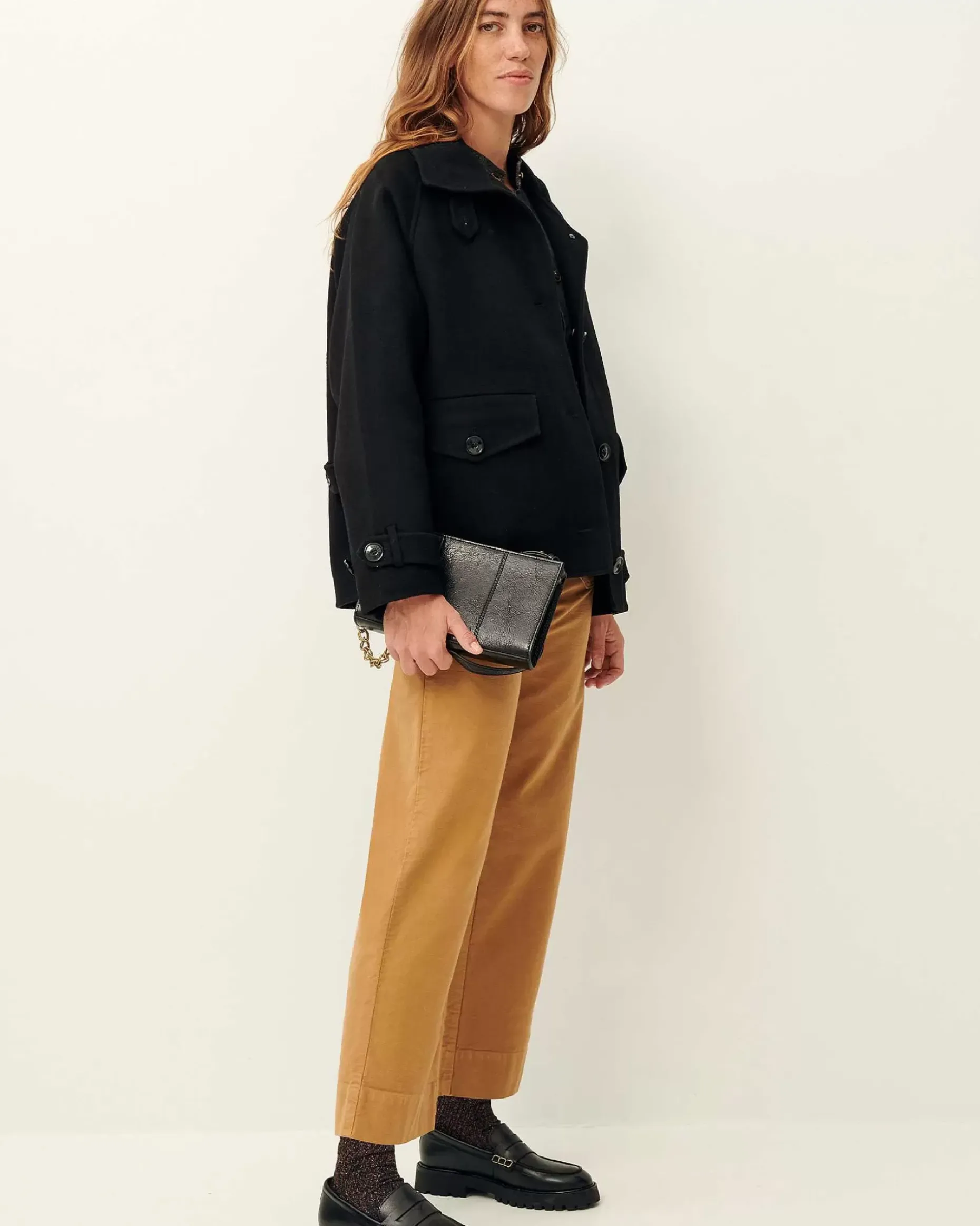 Ungefütterter Kurzmantel Im Blouson-Stil Aus Doppelt Gewebtem, Samtigem Flanell.