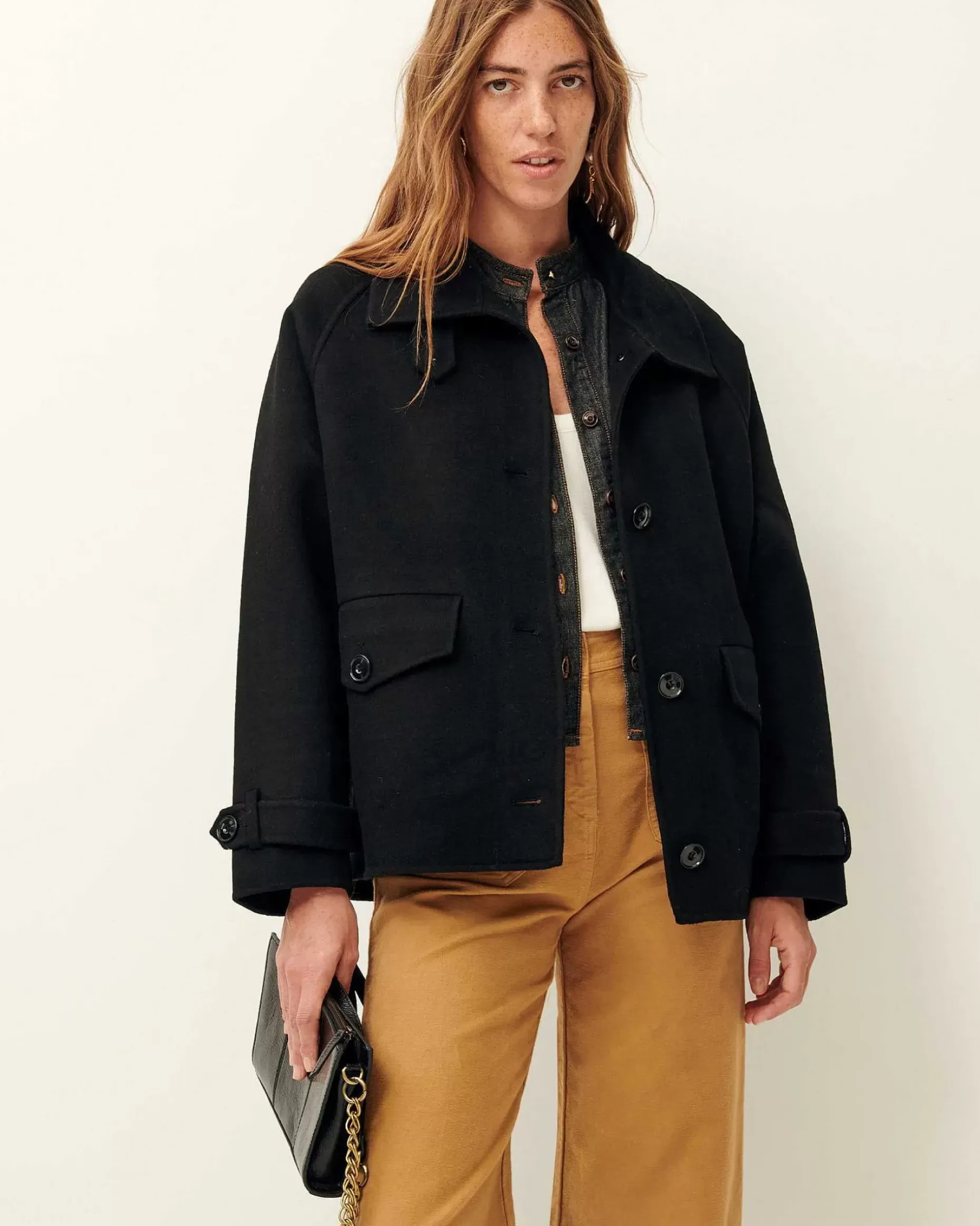 Ungefütterter Kurzmantel Im Blouson-Stil Aus Doppelt Gewebtem Flanell In Samtoptik.