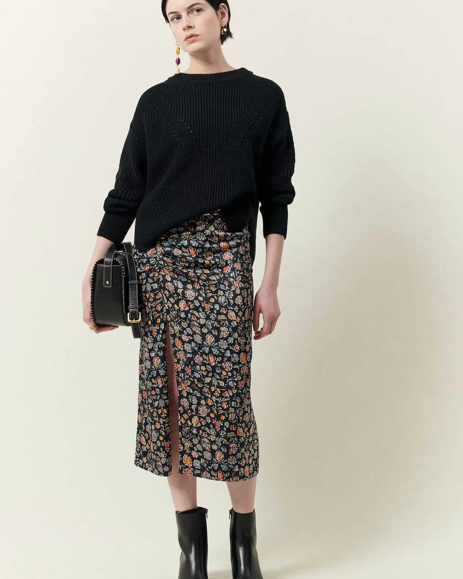 Weit Geschnittener, Perlenbesetzter Rippstrickpullover Mit Langen Ärmeln.