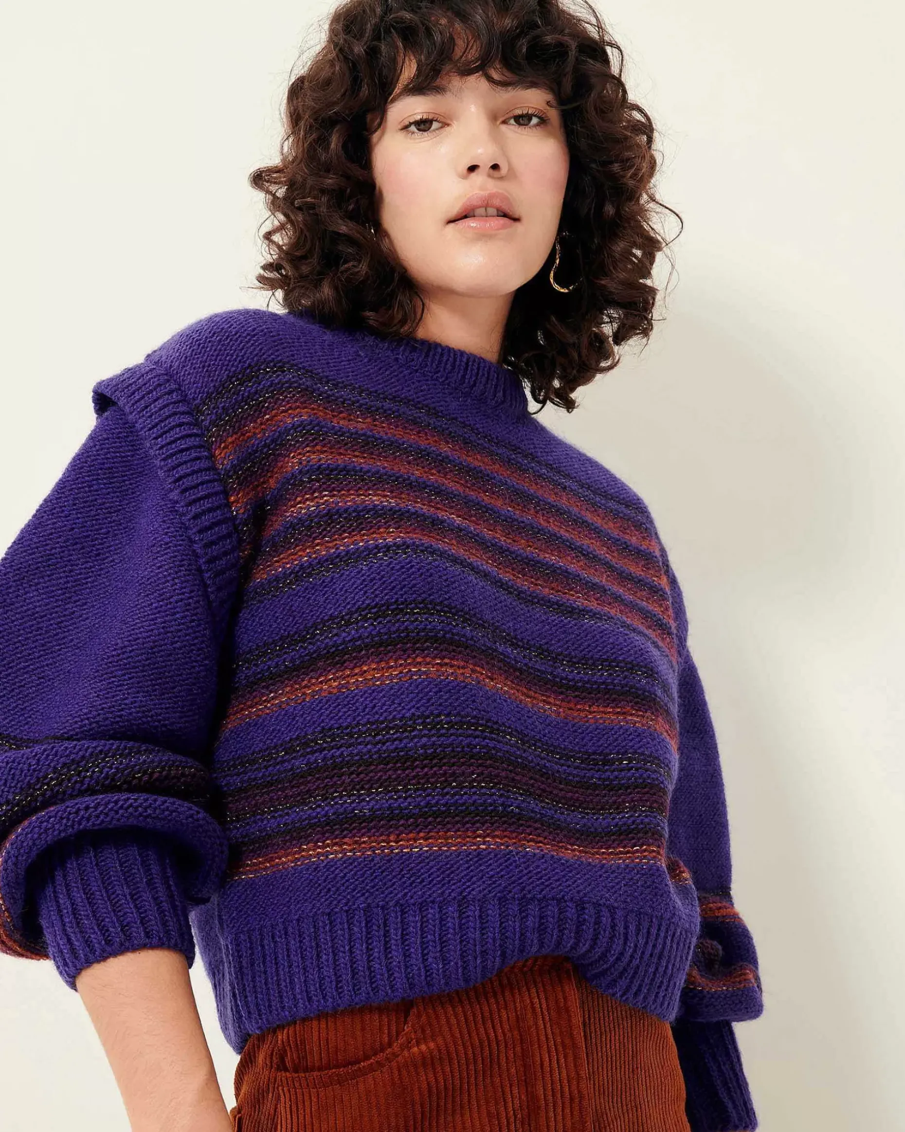 Pulli Mit Weiten Ballonärmeln Mit Trompe-L‘Oeil-Effekt Aus Flauschigem Strick Mit Verspielten Streifen, Italienische Strickarbeit.Dieses Produkt Besteht Aus Viskose, Die Aus Holz Aus Nachhaltig Betriebener Forstwirtschaft Gewonnen Wird.