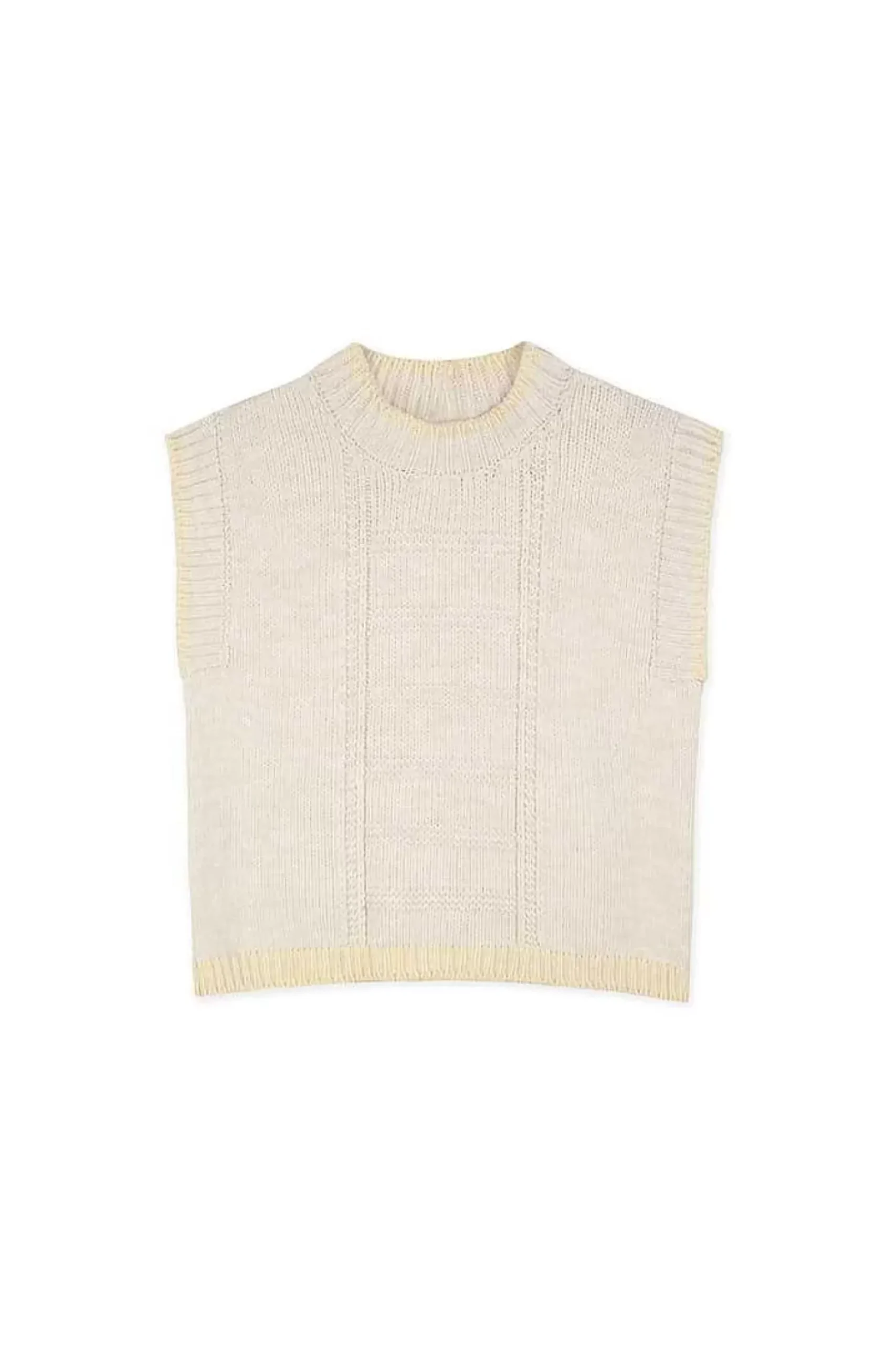 Ärmelloser Pulli Aus Jerseystrick Mit Ziermaschen Und Einfassungen Aus Kontrastierendem Garn, Italienische Strickarbeit.Web Only