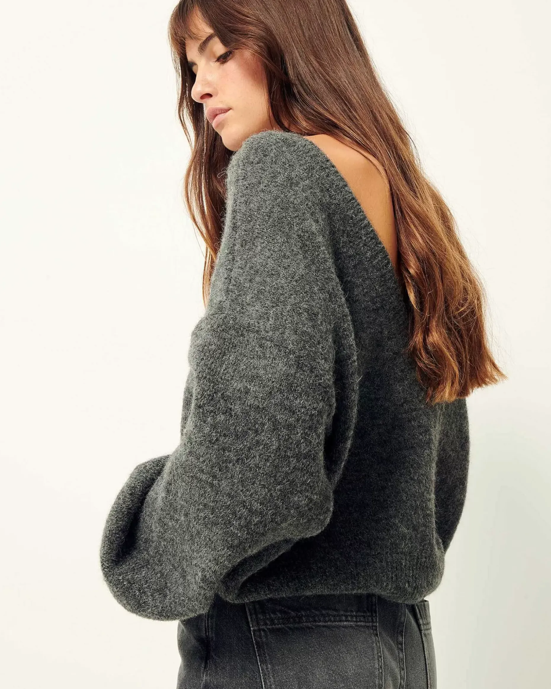 Pulli Mit V-Ausschnitt Aus Flauschigem Jerseystrick. V-Ausschnitt Kann Nach Vorn Und Hinten Getragen Werden.