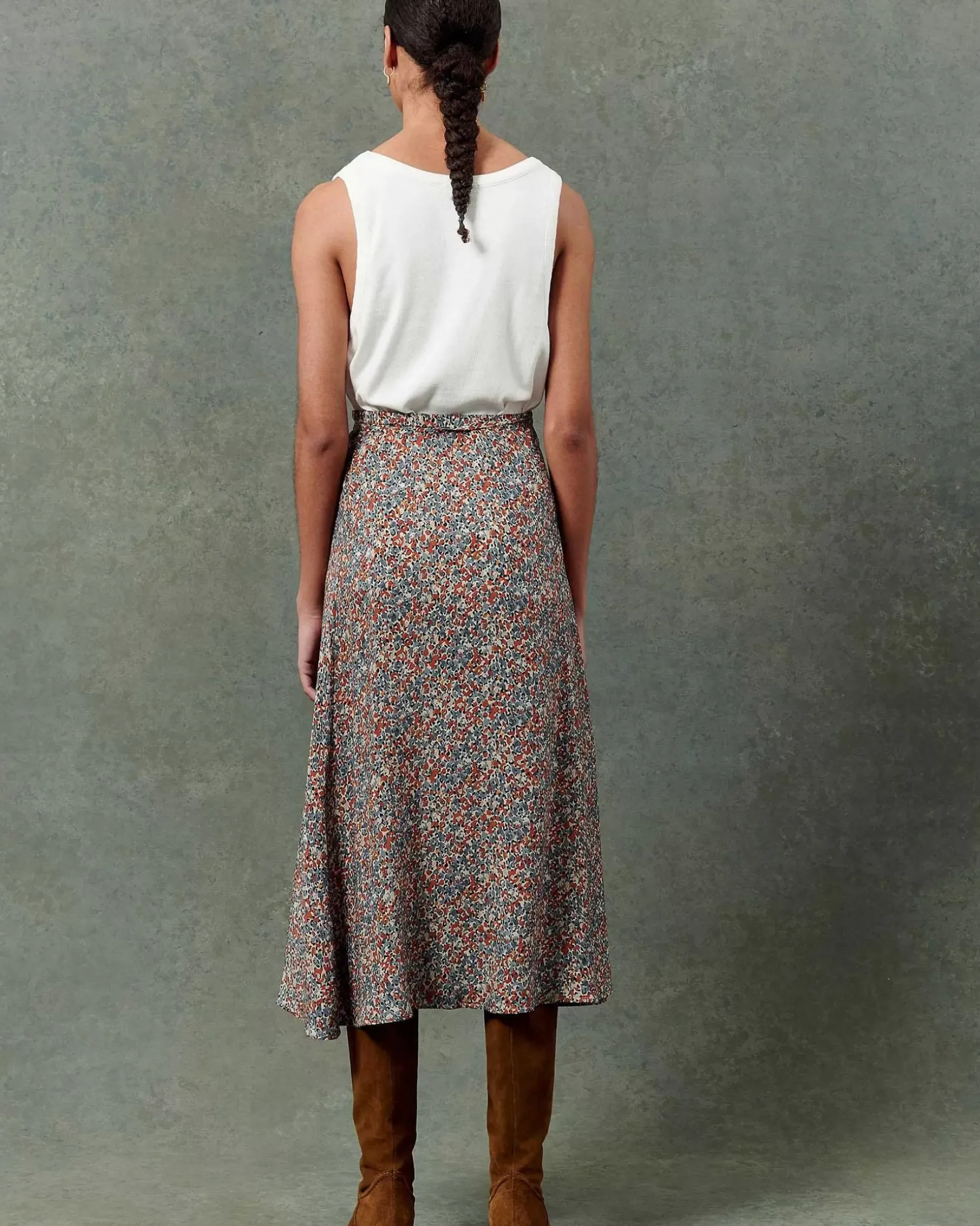 Halblanger, Geknöpfter Rock Aus Weich Fließendem, Gemustertem Cupro-Krepp, Exklusives Sessùn-Muster.