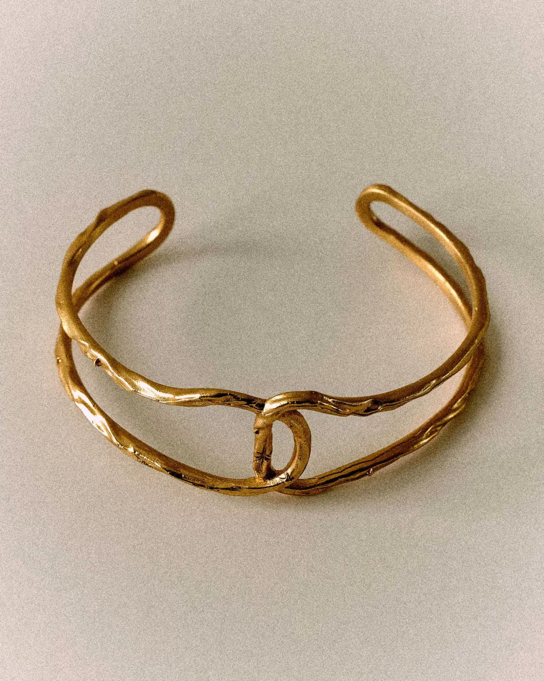 Armreif Aus Ineinander Verknoteten Ringelementen In Strukturierter Goldoptik.
