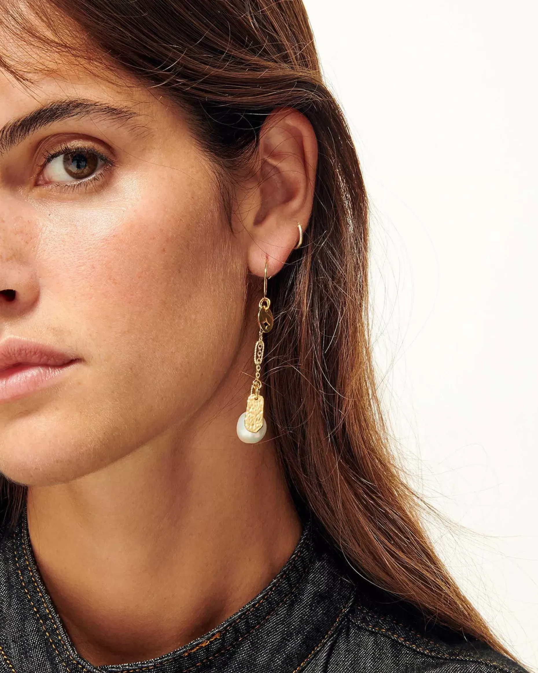 Zarte Mono-Creole Mit Kettchen, Perlmuttfarbener Süßwasserperle Und Anhängern.