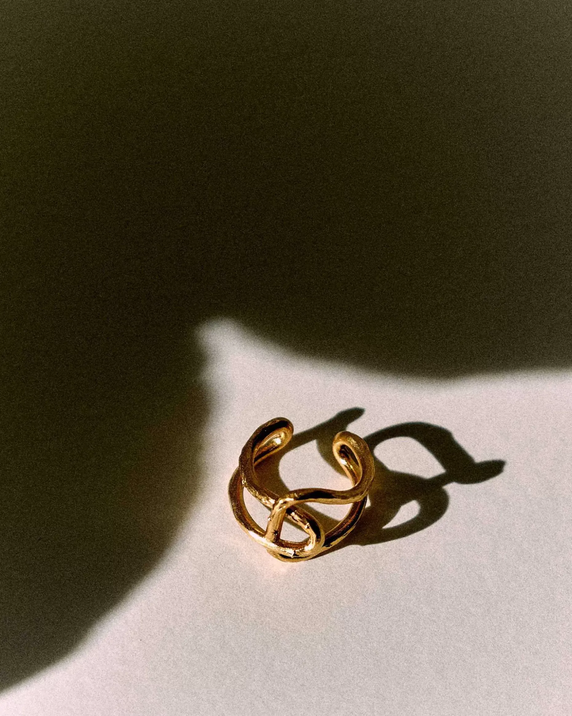Fingerring Aus Ineinander Verknoteten Ringelementen In Strukturierter Goldoptik.