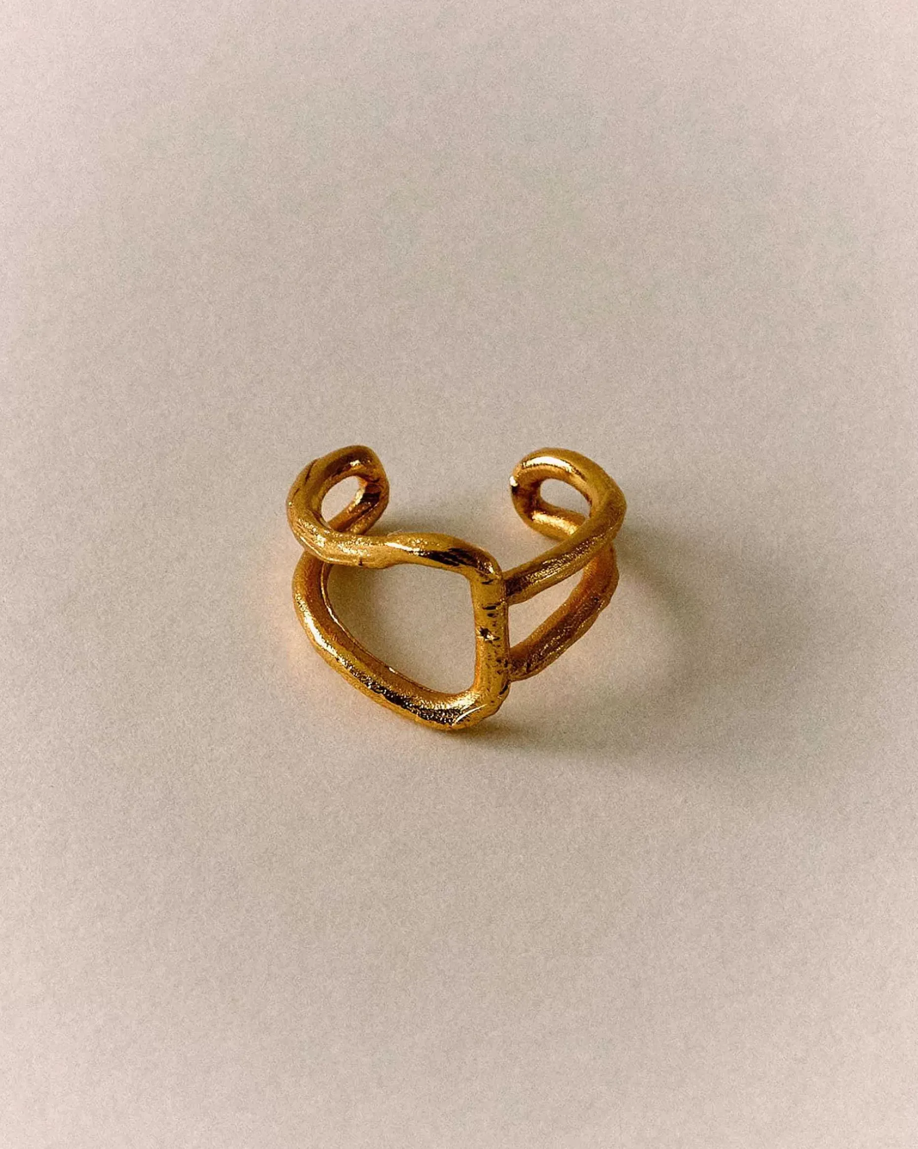 Ear Cuff Aus Ineinander Verknoteten Ringen In Strukturierter Goldoptik.