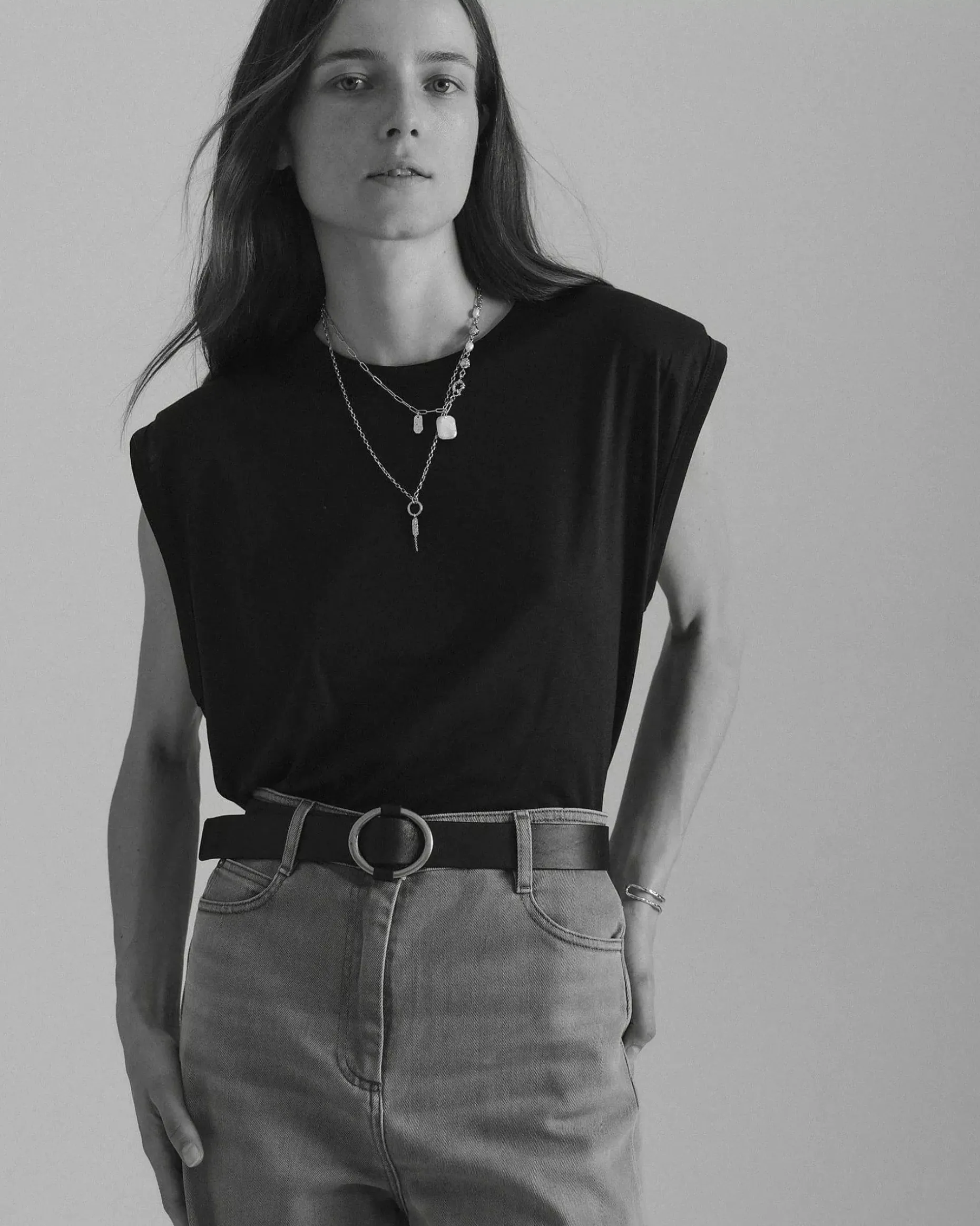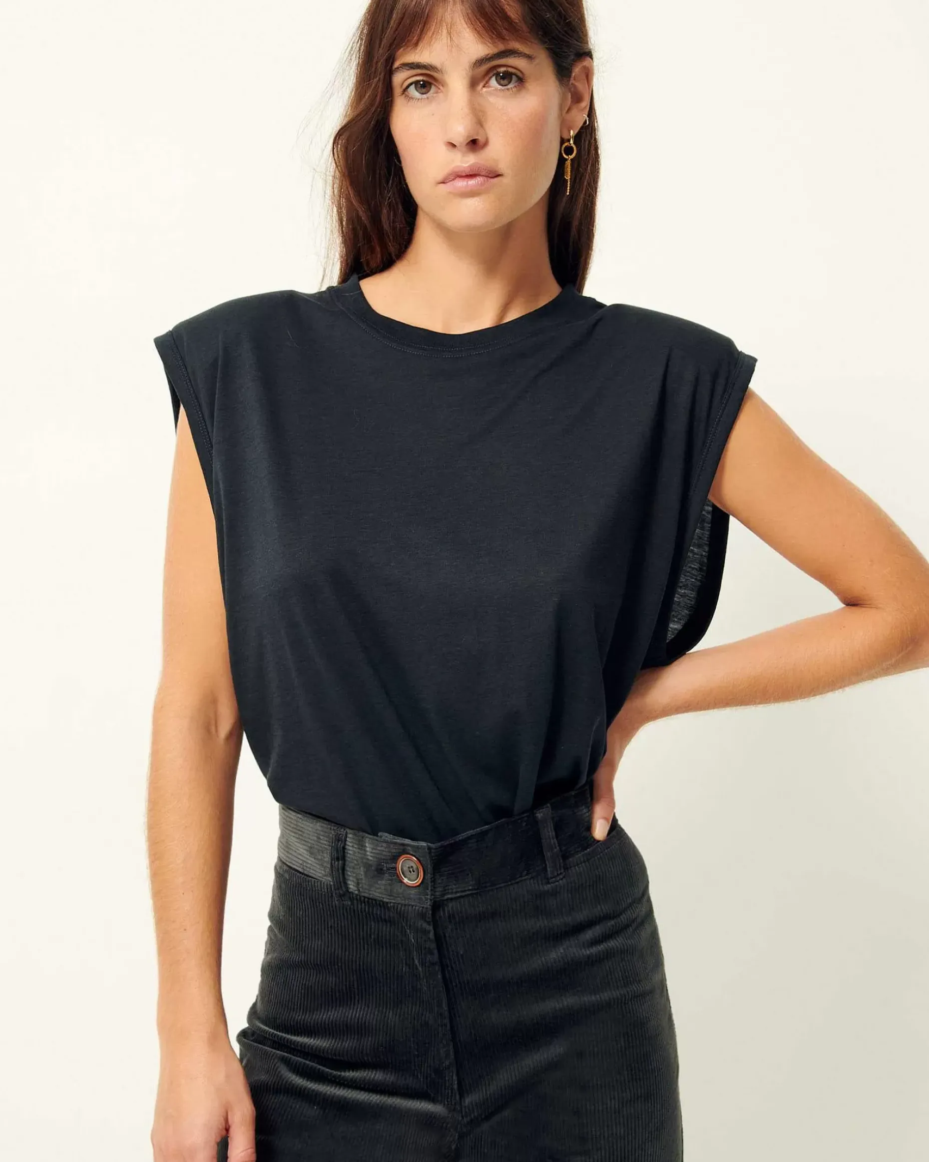 T-Shirt Mit Schulterpolstern Aus Fließendem Jersey, In Portugal Gewirkt Und Angefertigt.