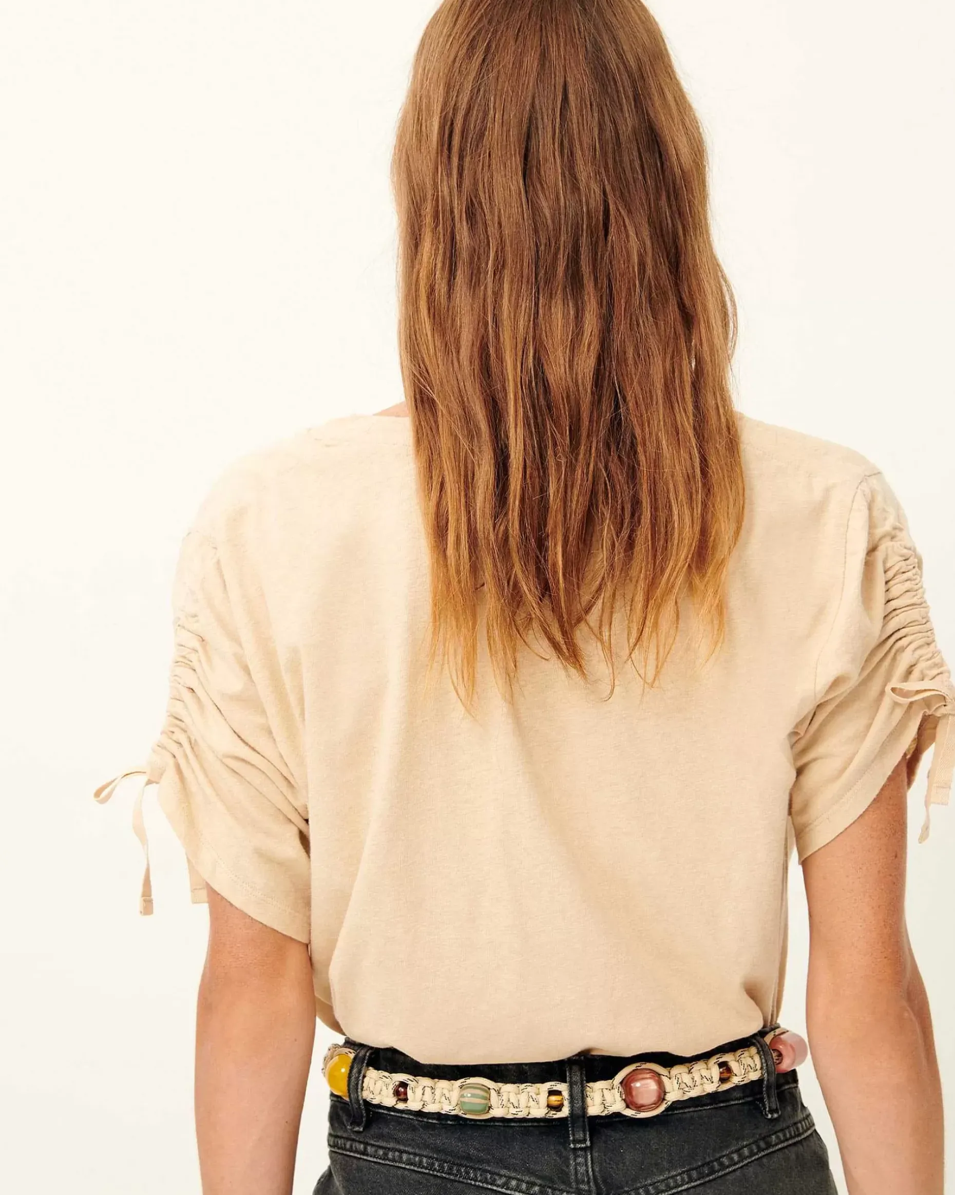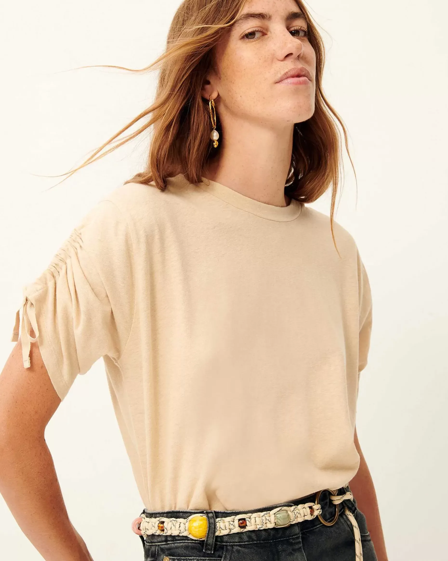 Kurzes T-Shirt Mit Zugbändern Aus Baumwoll-Leinen-Jersey, Hergestellt In Portugal.