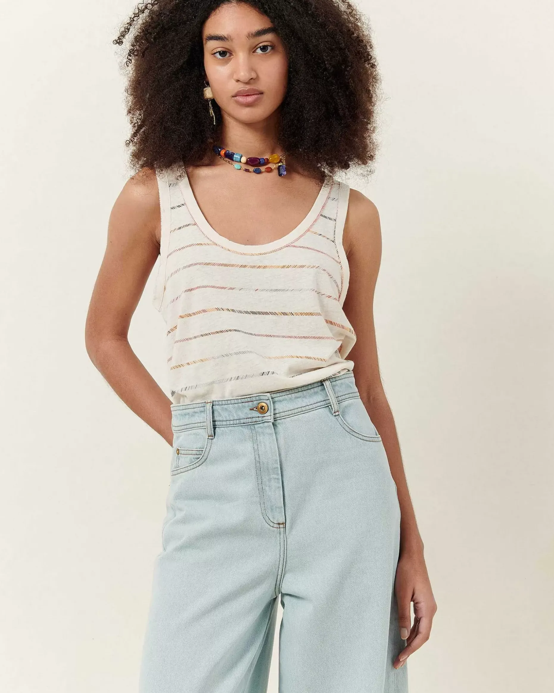 Loose Fit-Tanktop Mit Tiefem Ausschnitt Aus Leinen-Baumwoll-Jersey, In Portugal Angefertigt.