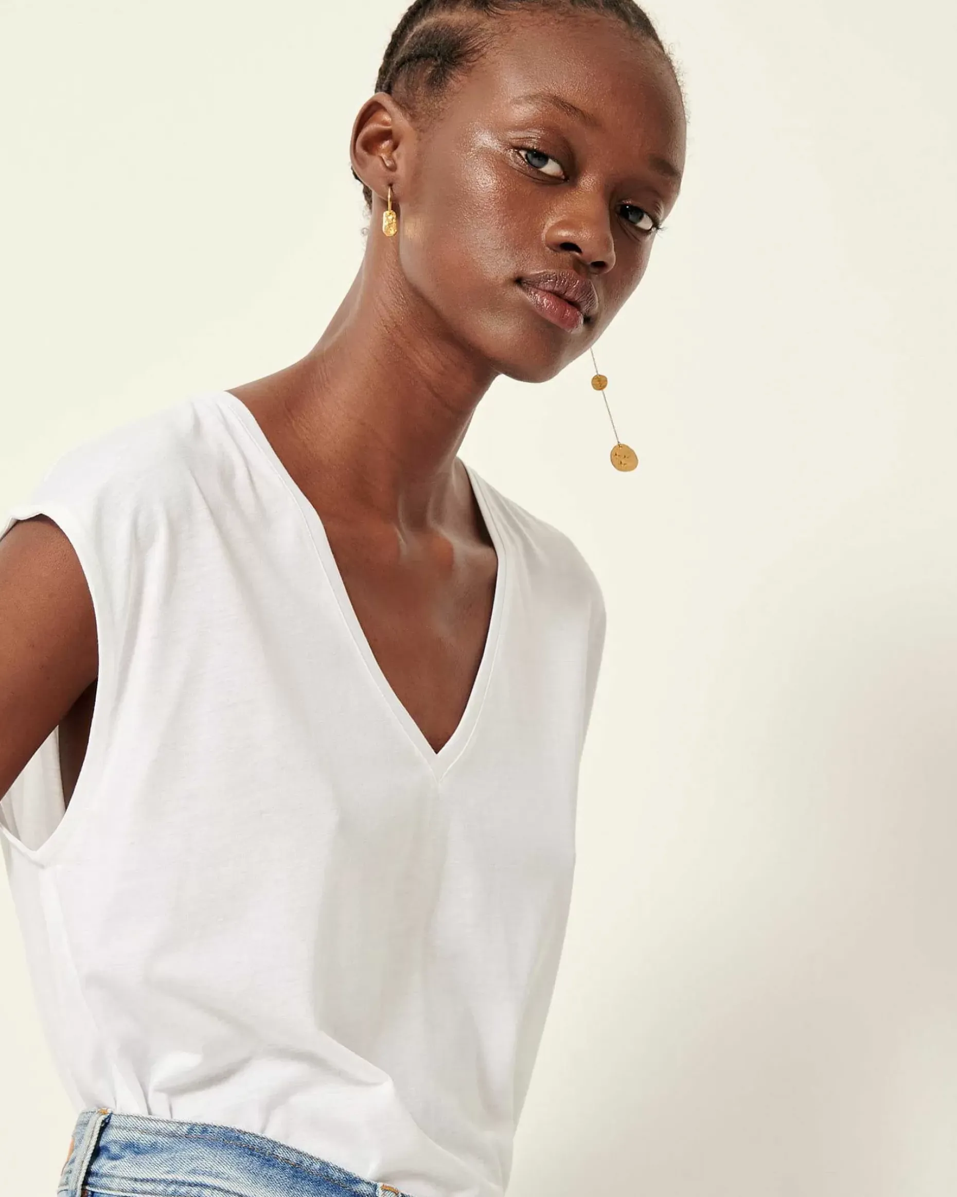 V-Ausschnitt-Ärmelloser T-Shirt Aus Fließendem Jersey, In Portugal Angefertigt.