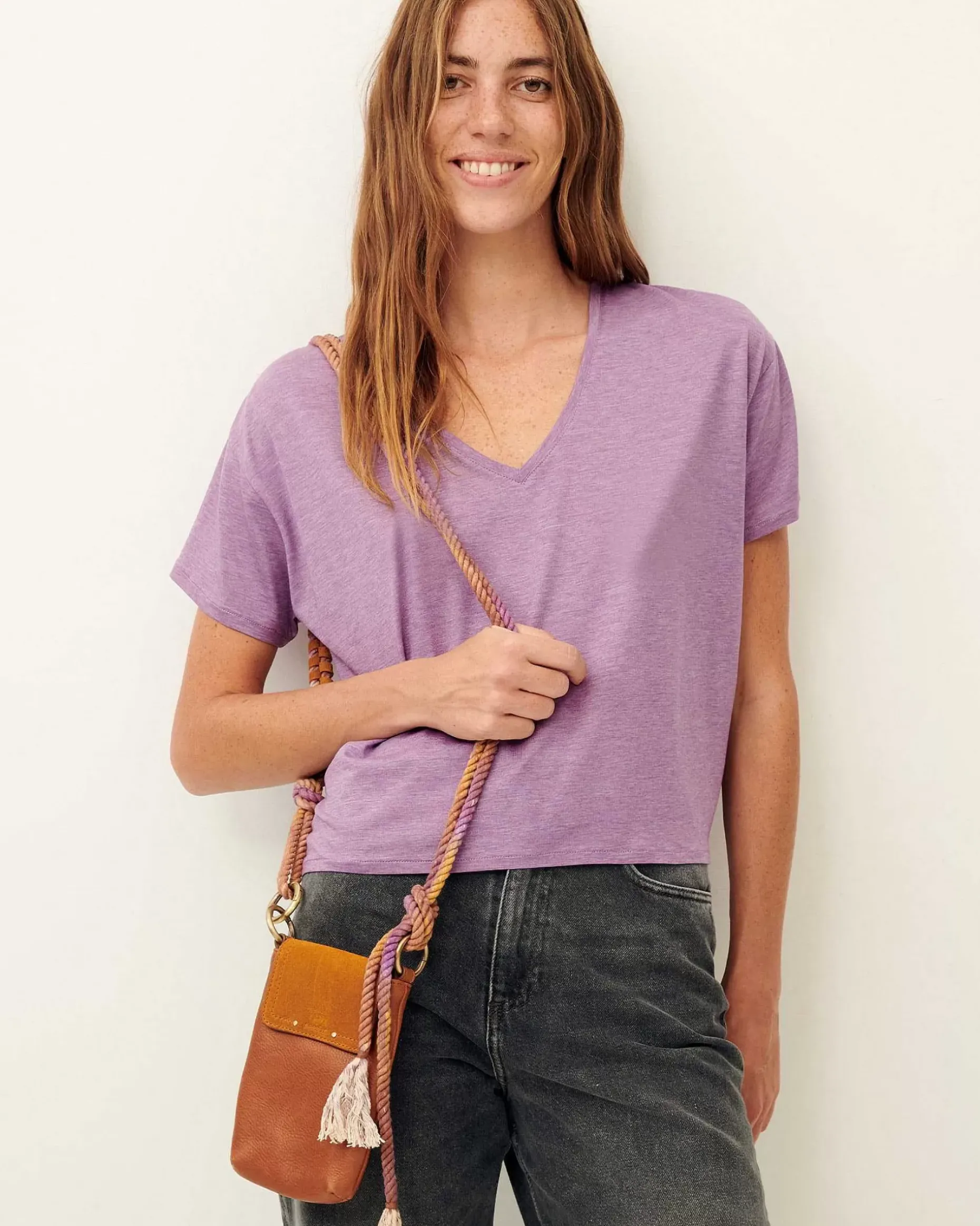 Weites Shirt Mit V-Ausschnitt Und Kurzen Ärmeln Aus Fließendem Jersey, In Portugal Angefertigt.