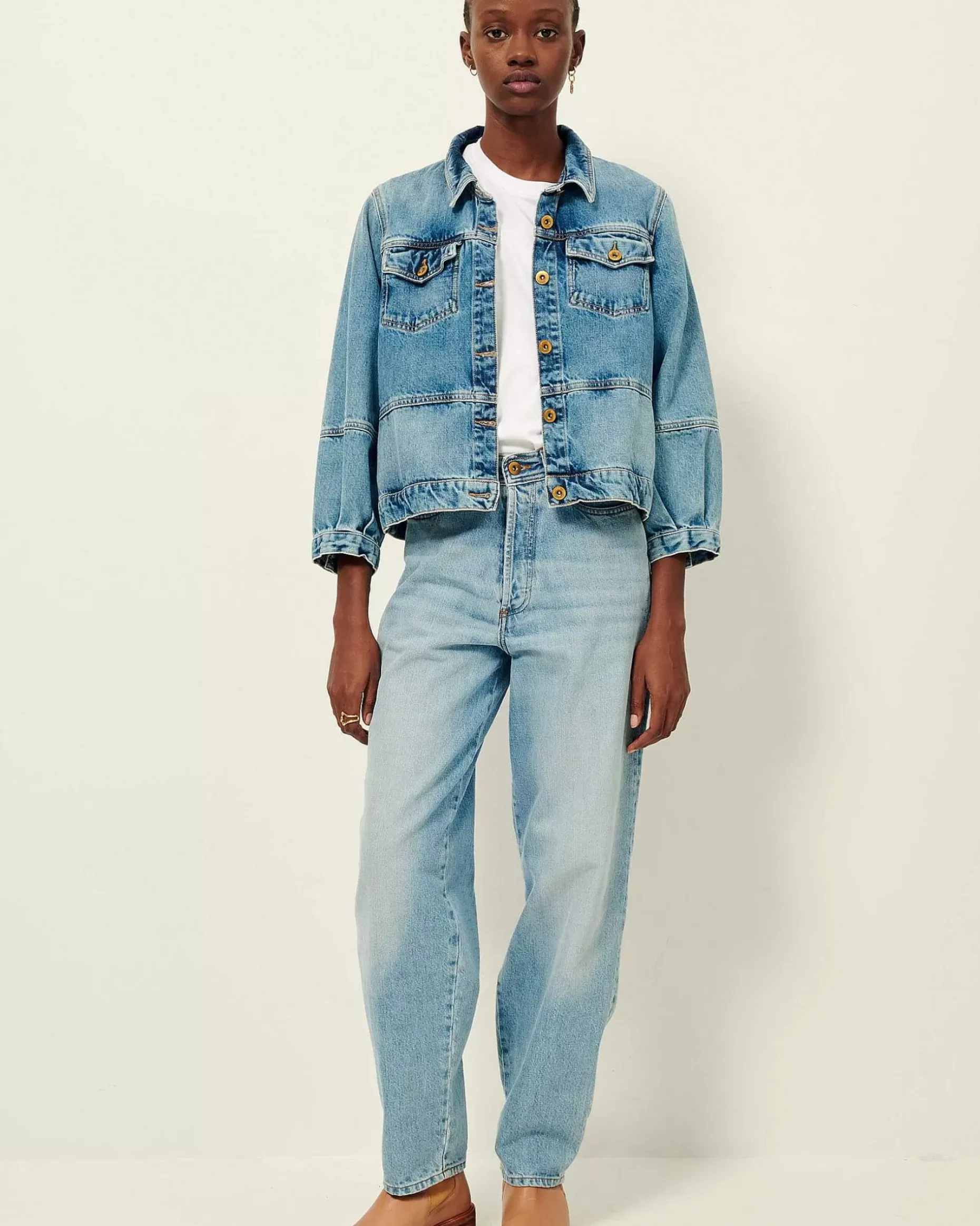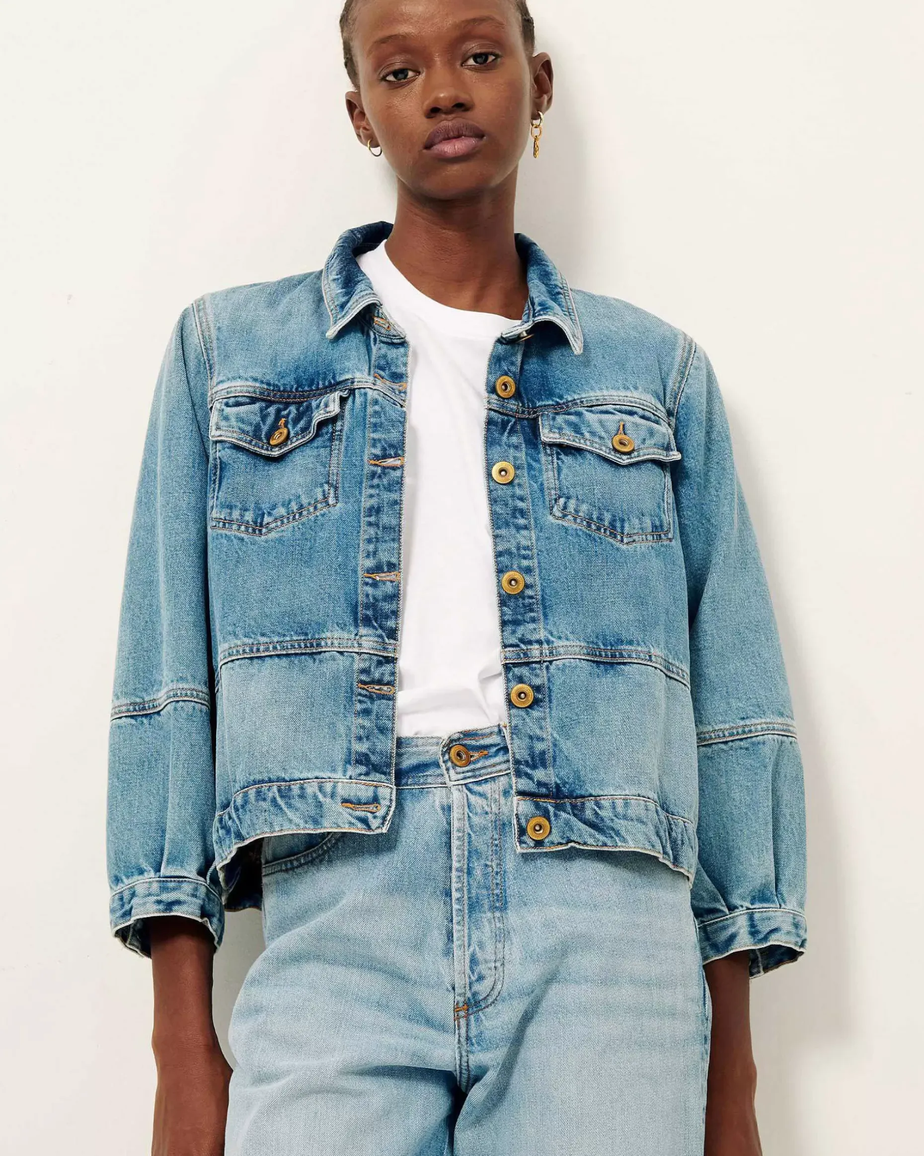 Jacke Mit 3/4-Ärmeln Aus Stonewashed Denim.