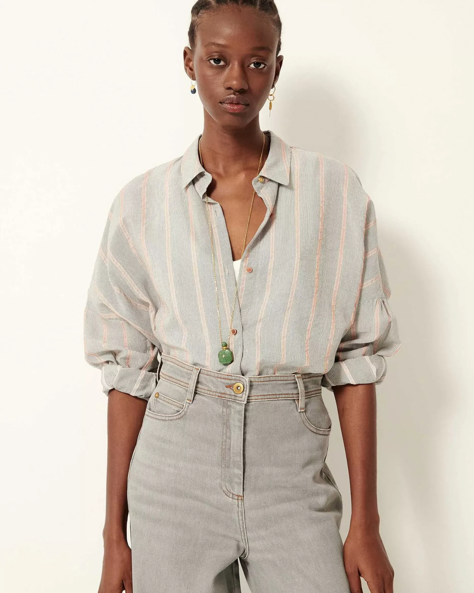 Weit Geschnittenes Hemd Aus In Frankreich Gewebtem Linon Mit Zarten, Kontrastierenden Streifen.
