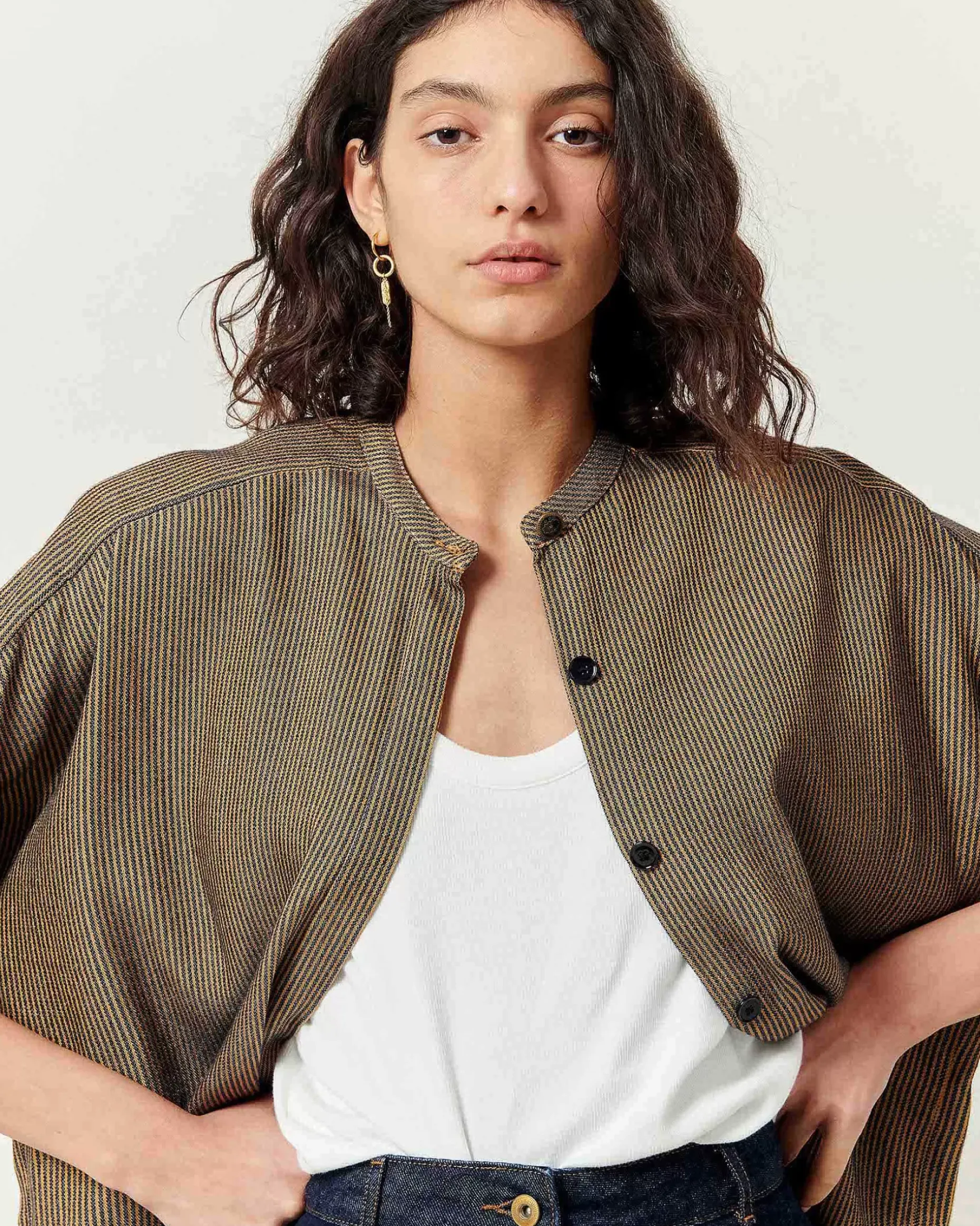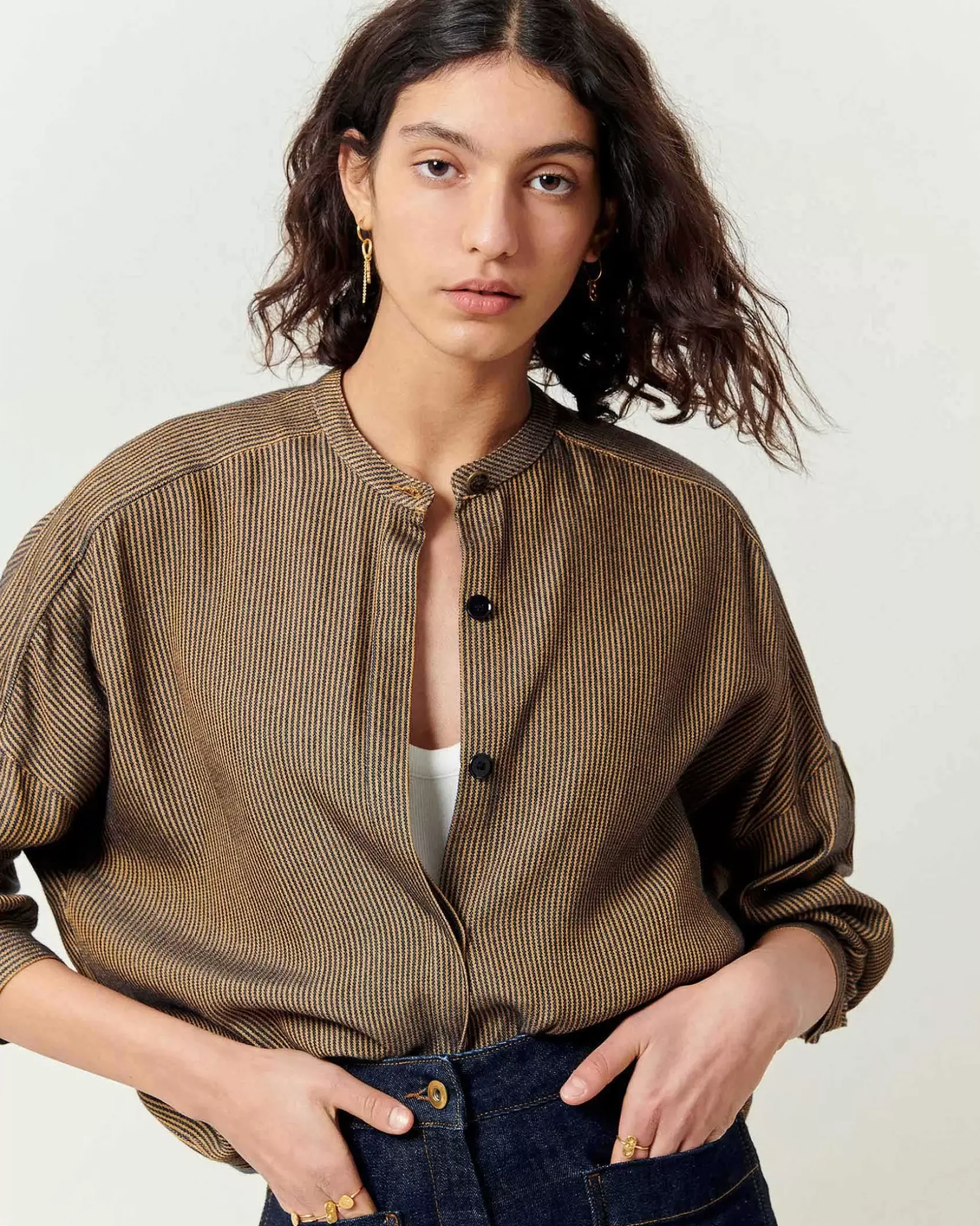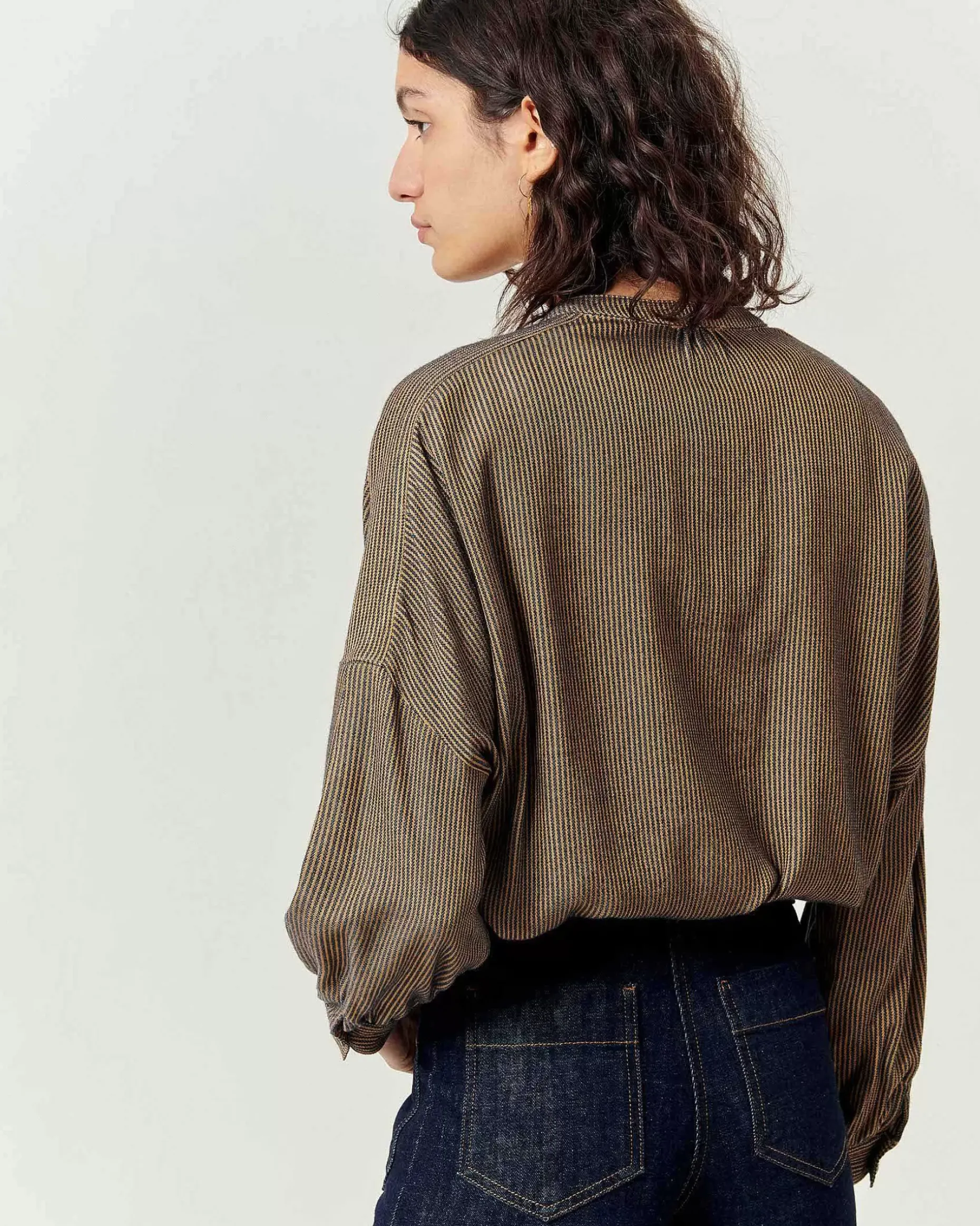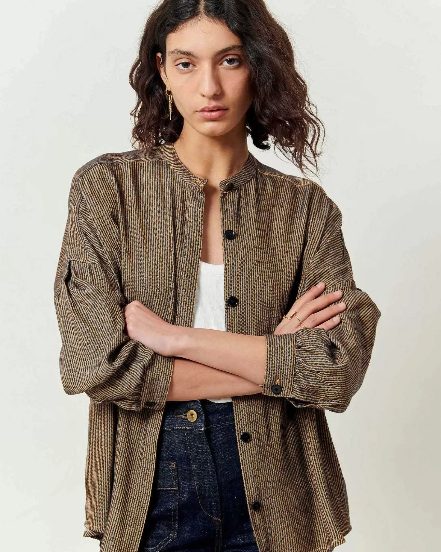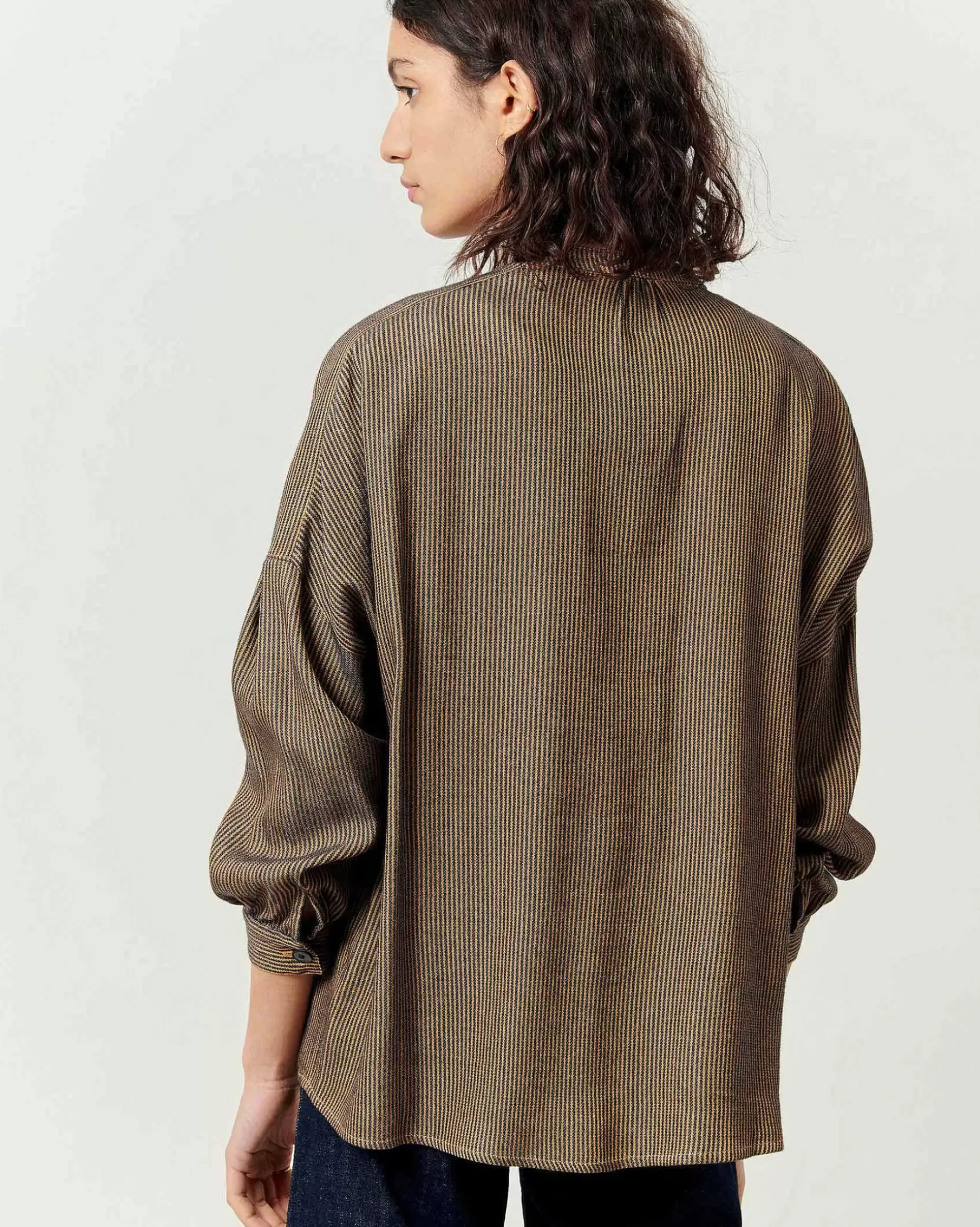 Hemd Aus Fließendem Gewebe Aus Zweifarbig Gestreiftem Merzerisiertem Garn, In Frankreich Gewebt.