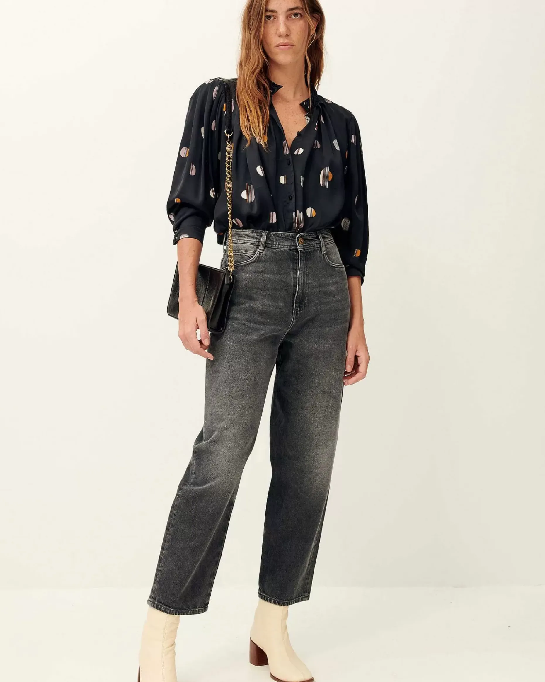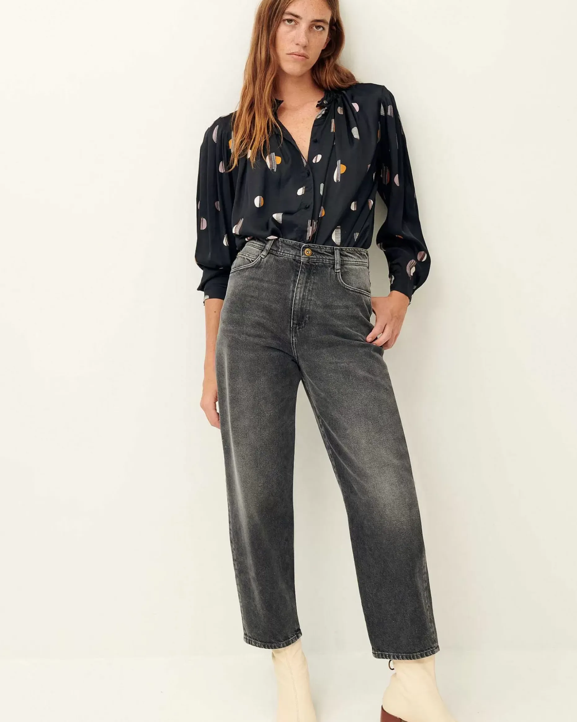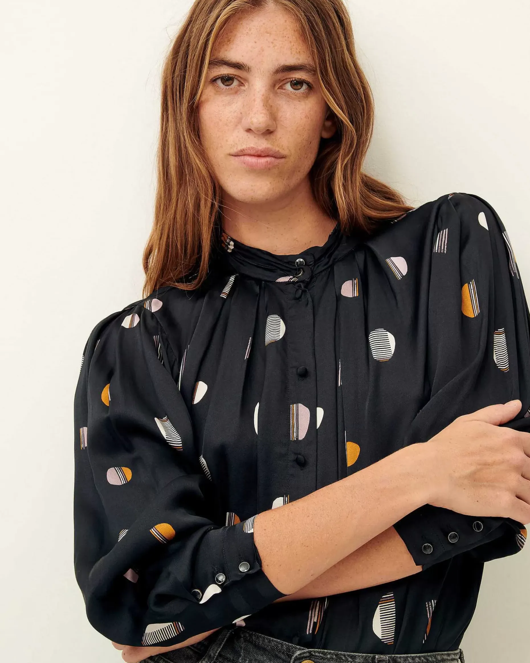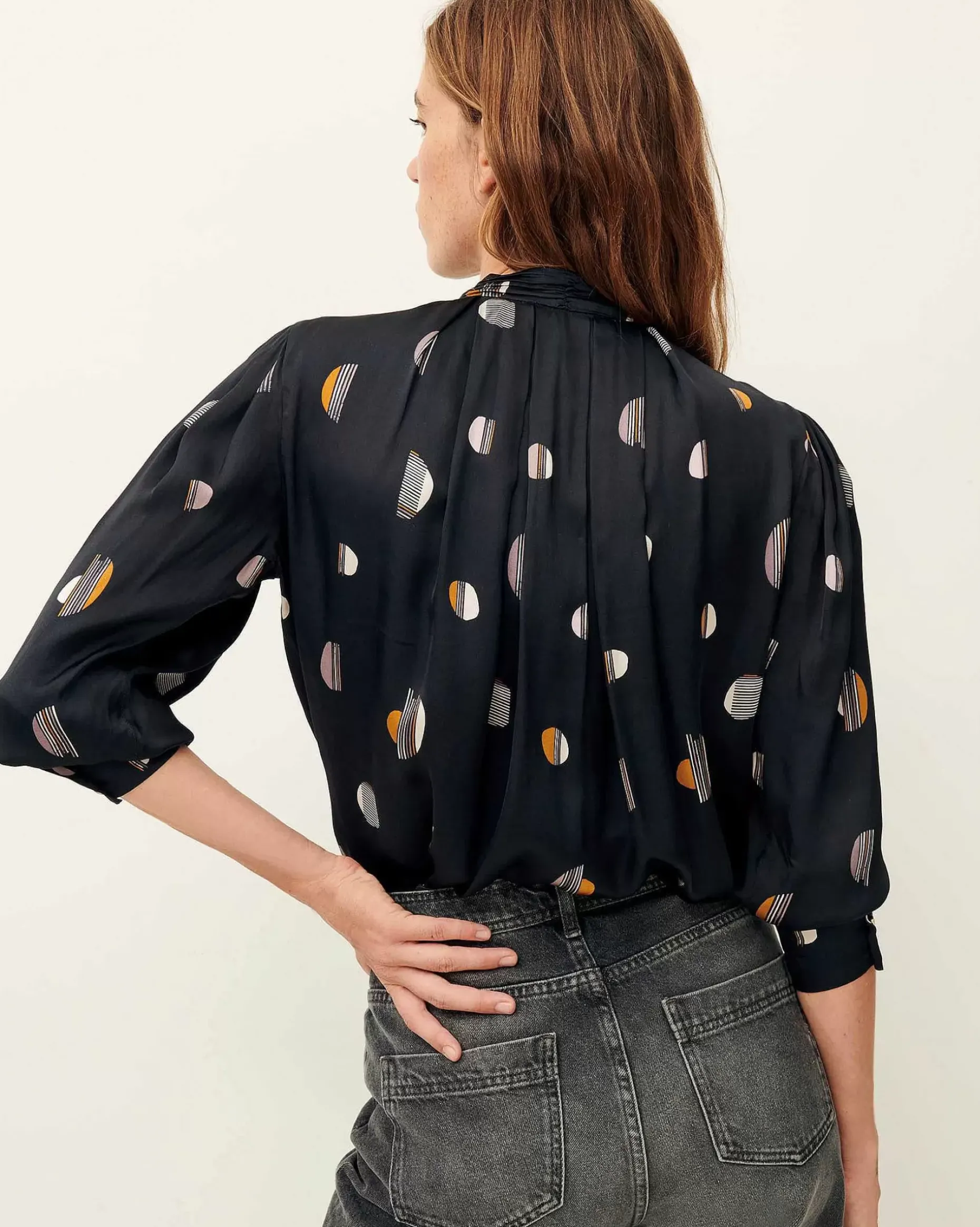 Langarmbluse Mit Kellerfalten Aus Fließendem, Bedrucktem Viskose-Satin, Exklusives Sessùn-Muster.