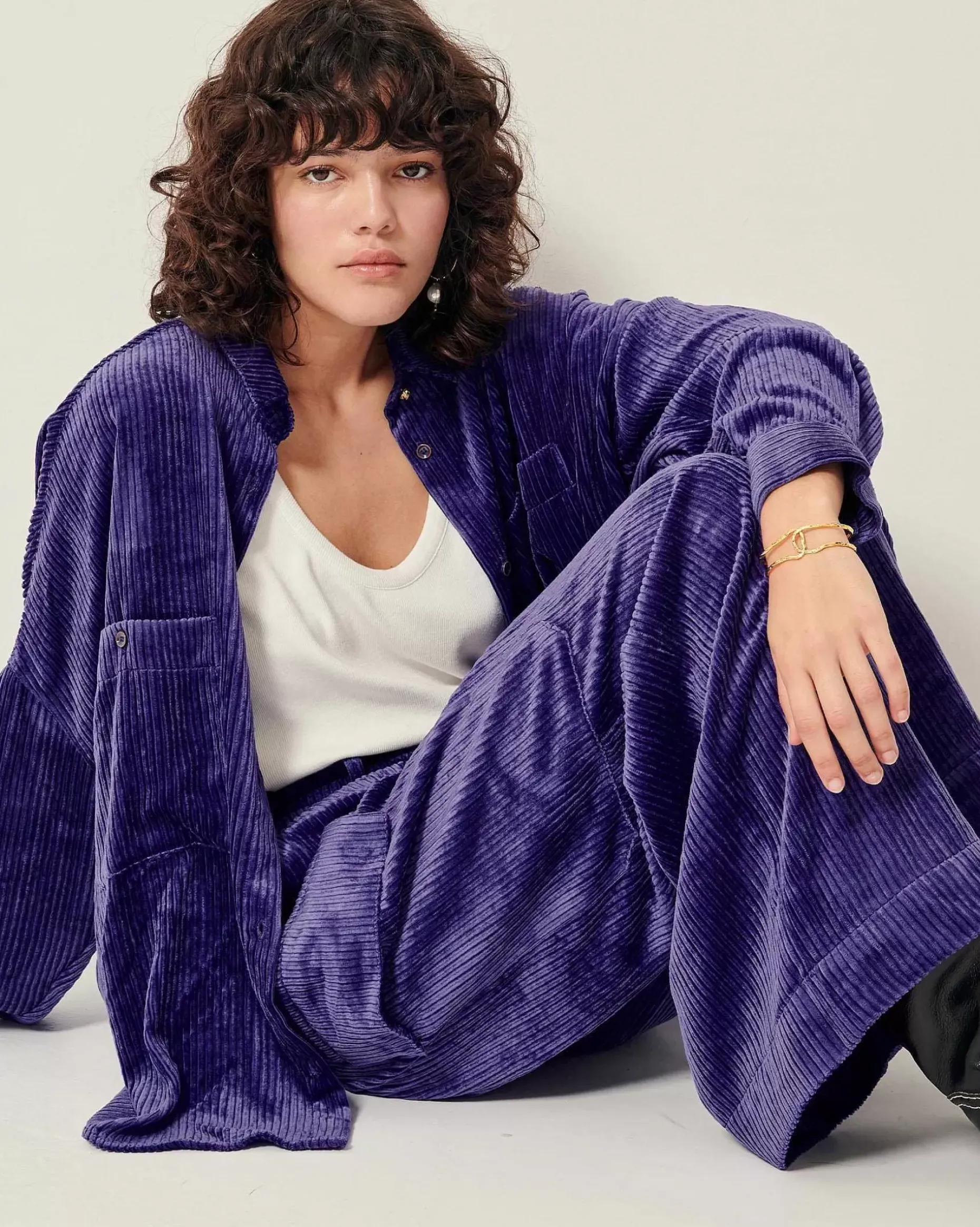 Oversize Hemd Mit Aufgesetzten Taschen Aus Seidigem, Weich Fließendem Cord, Italienische Webarbeit.