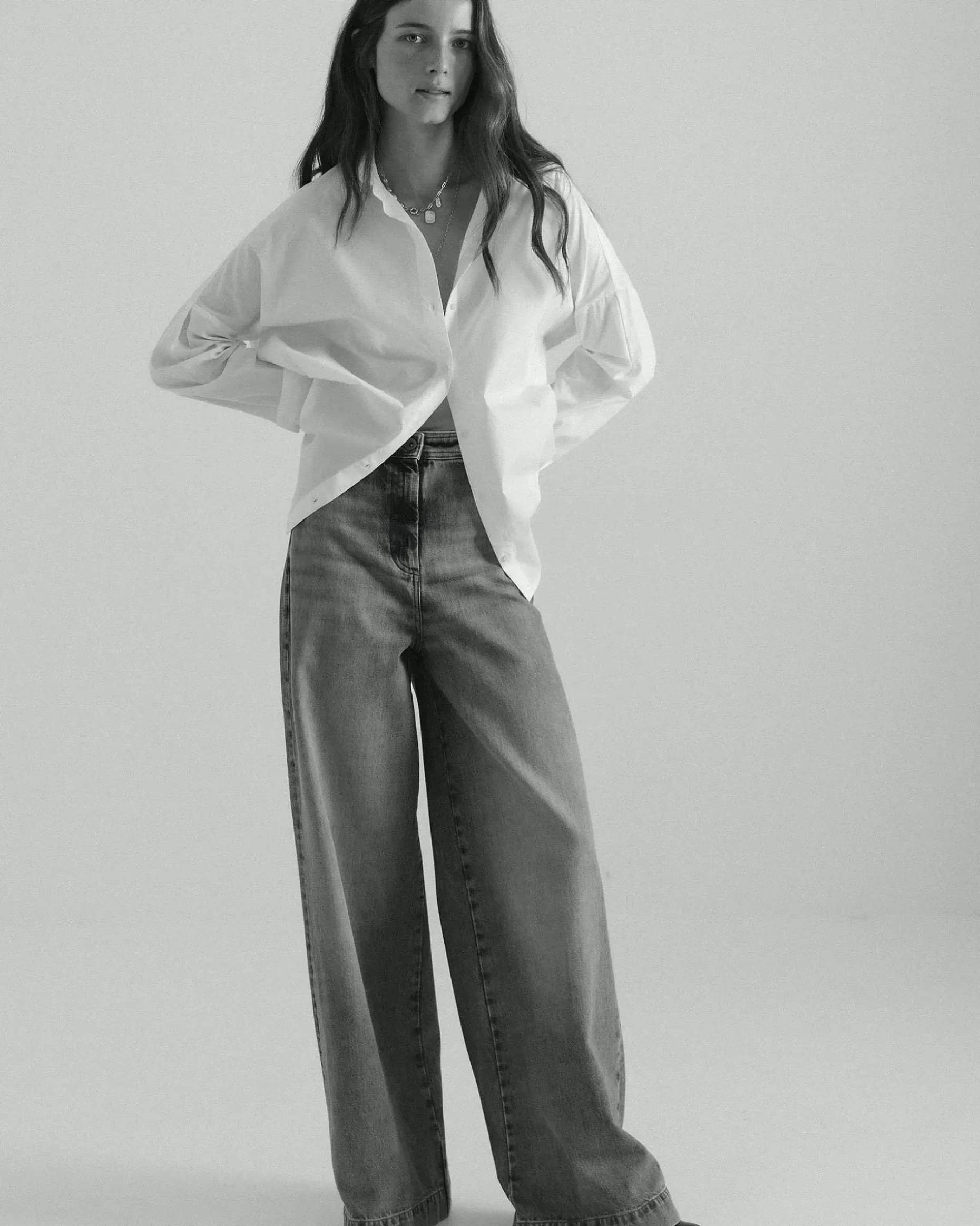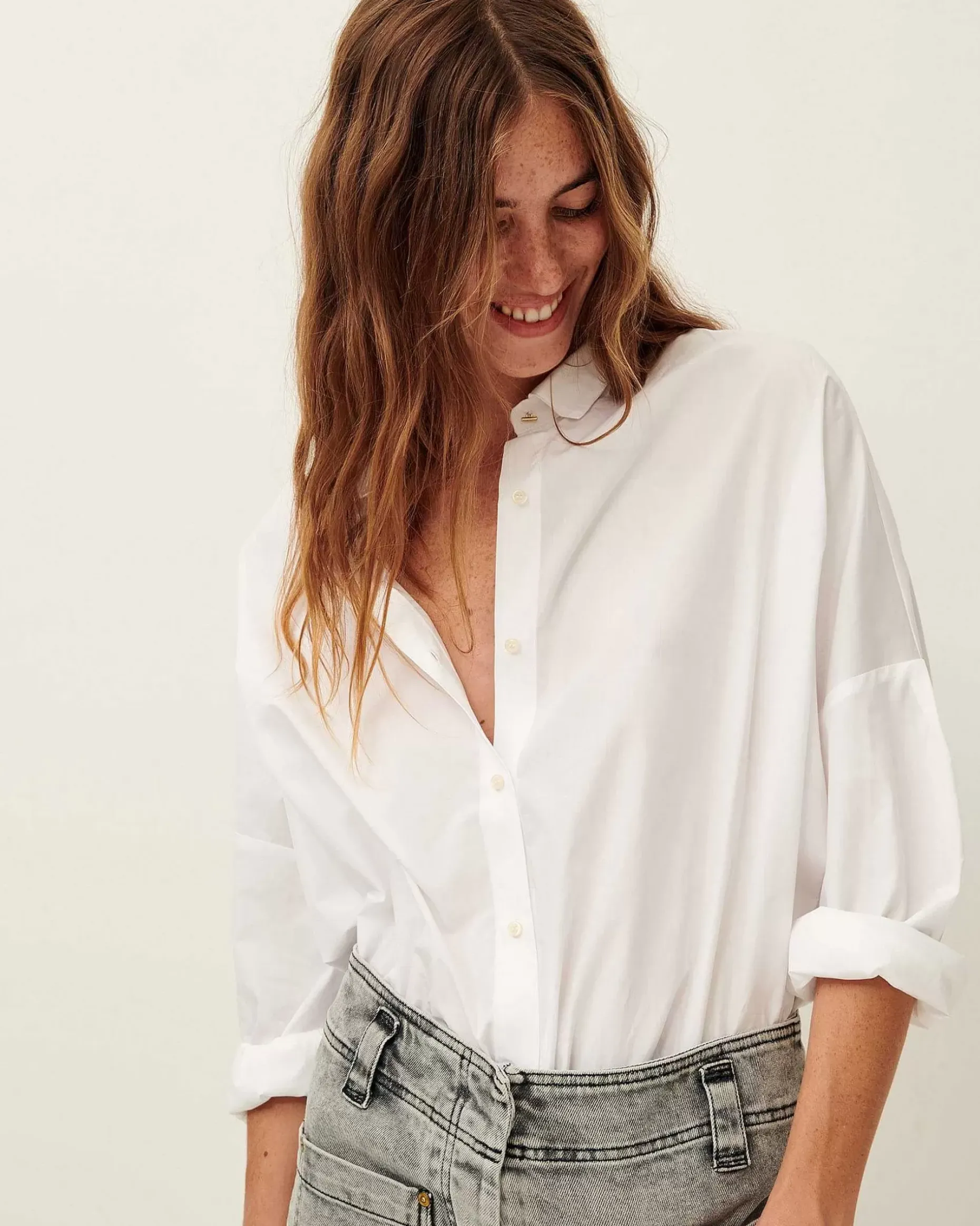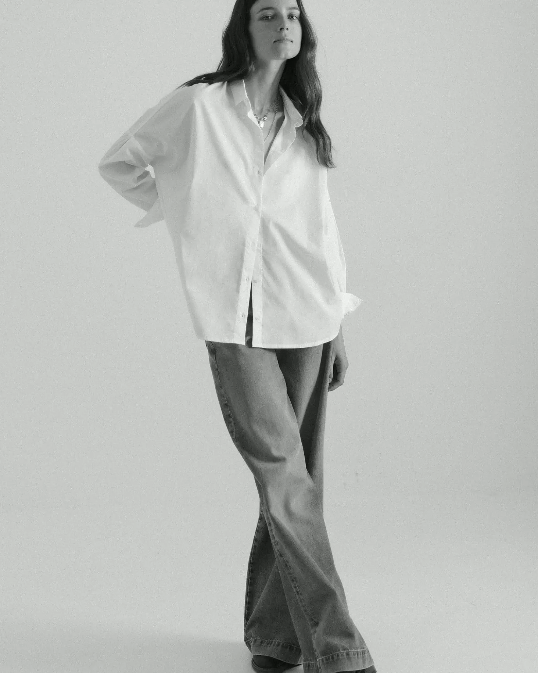 Hemd Im Herrenhemden-Stil Aus Festem, In Italien Gewebtem, Baumwoll-Popeleinene, Aus Baumwolle Aus Biologischem Anbau Angefertigt.